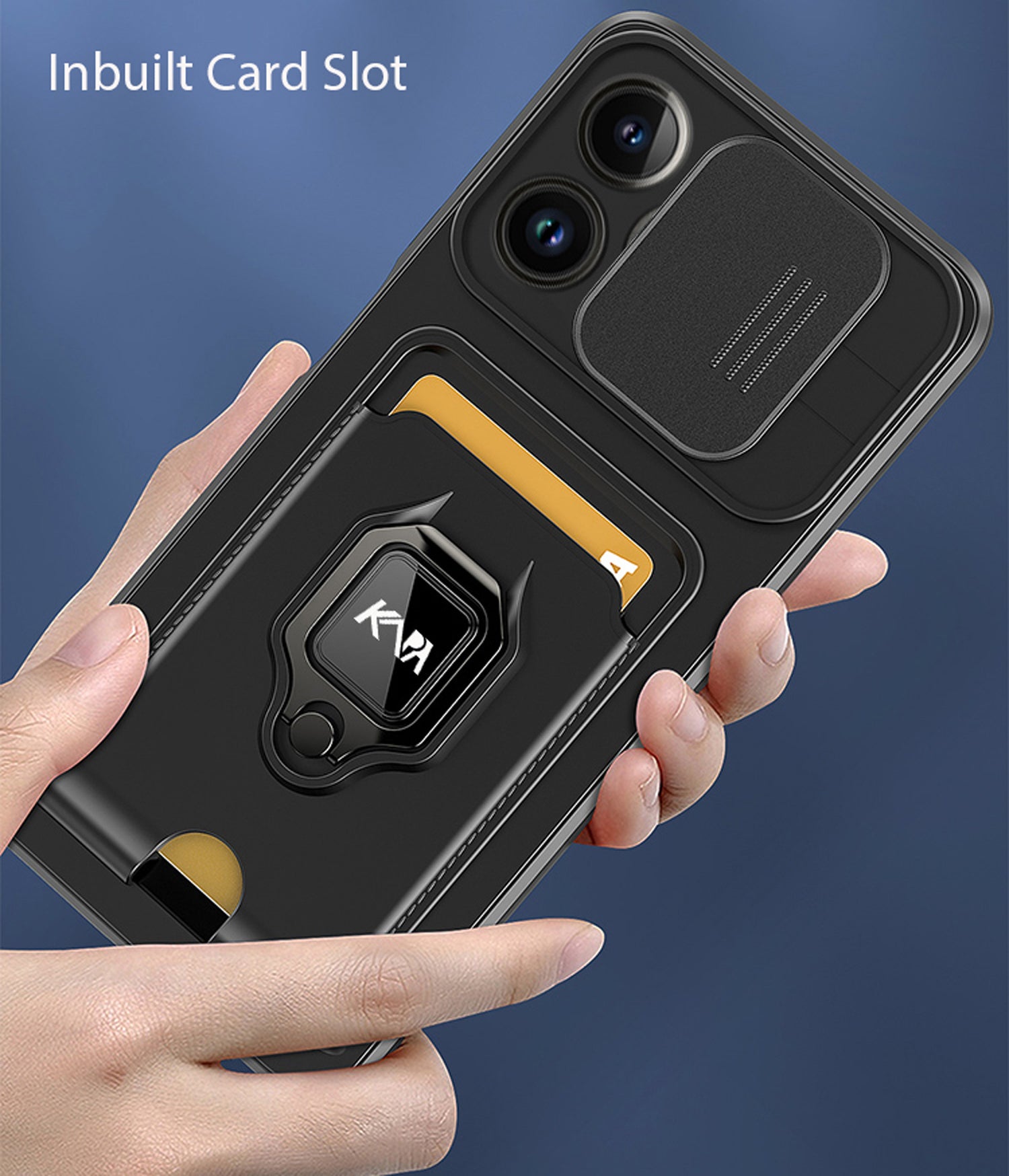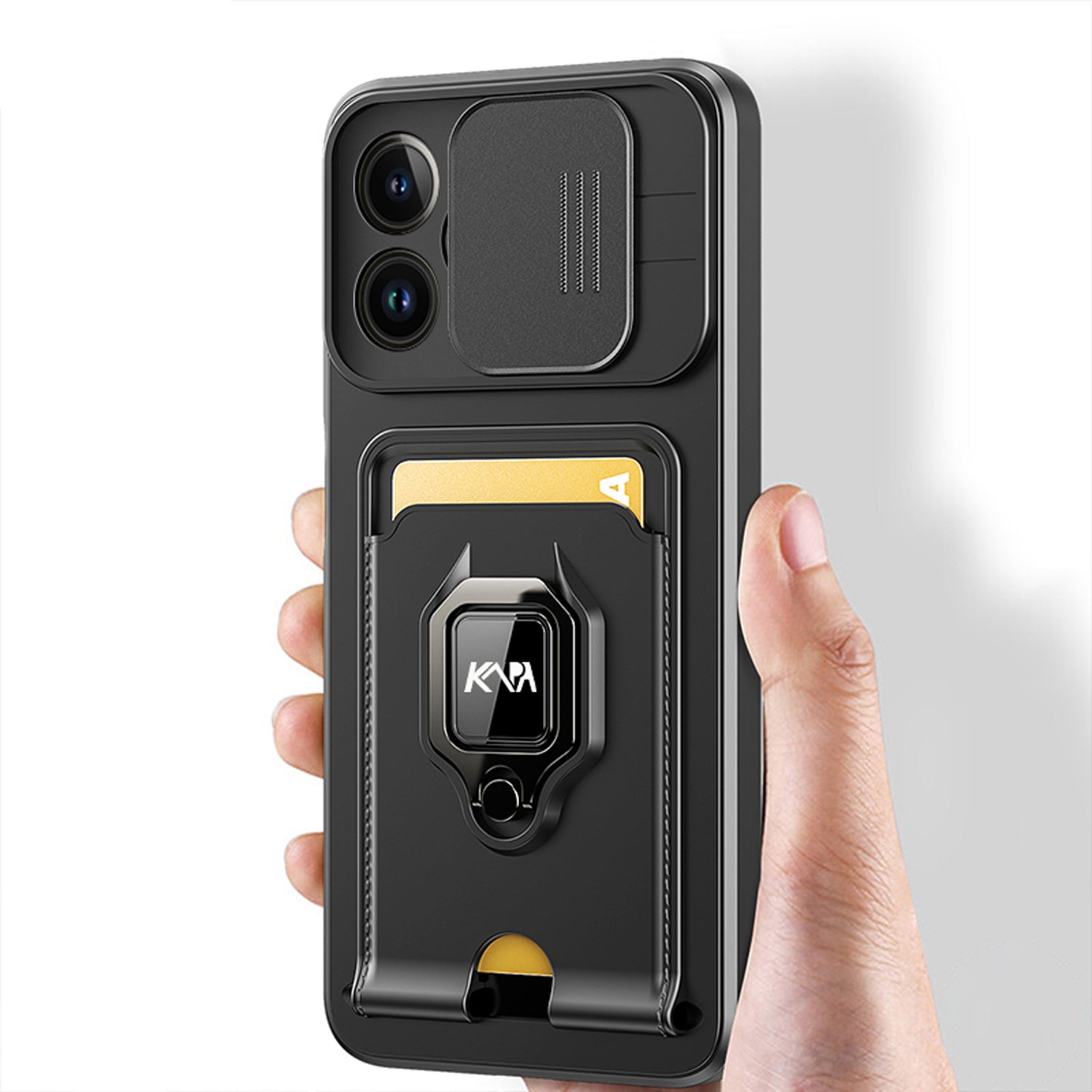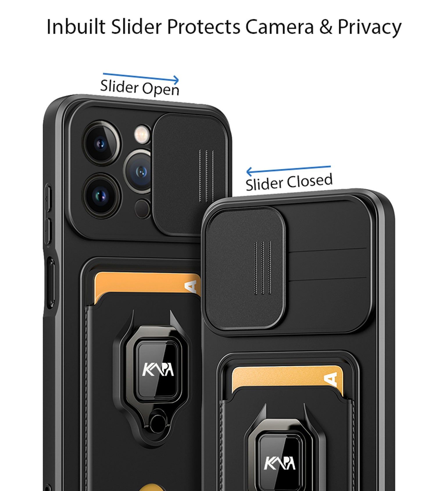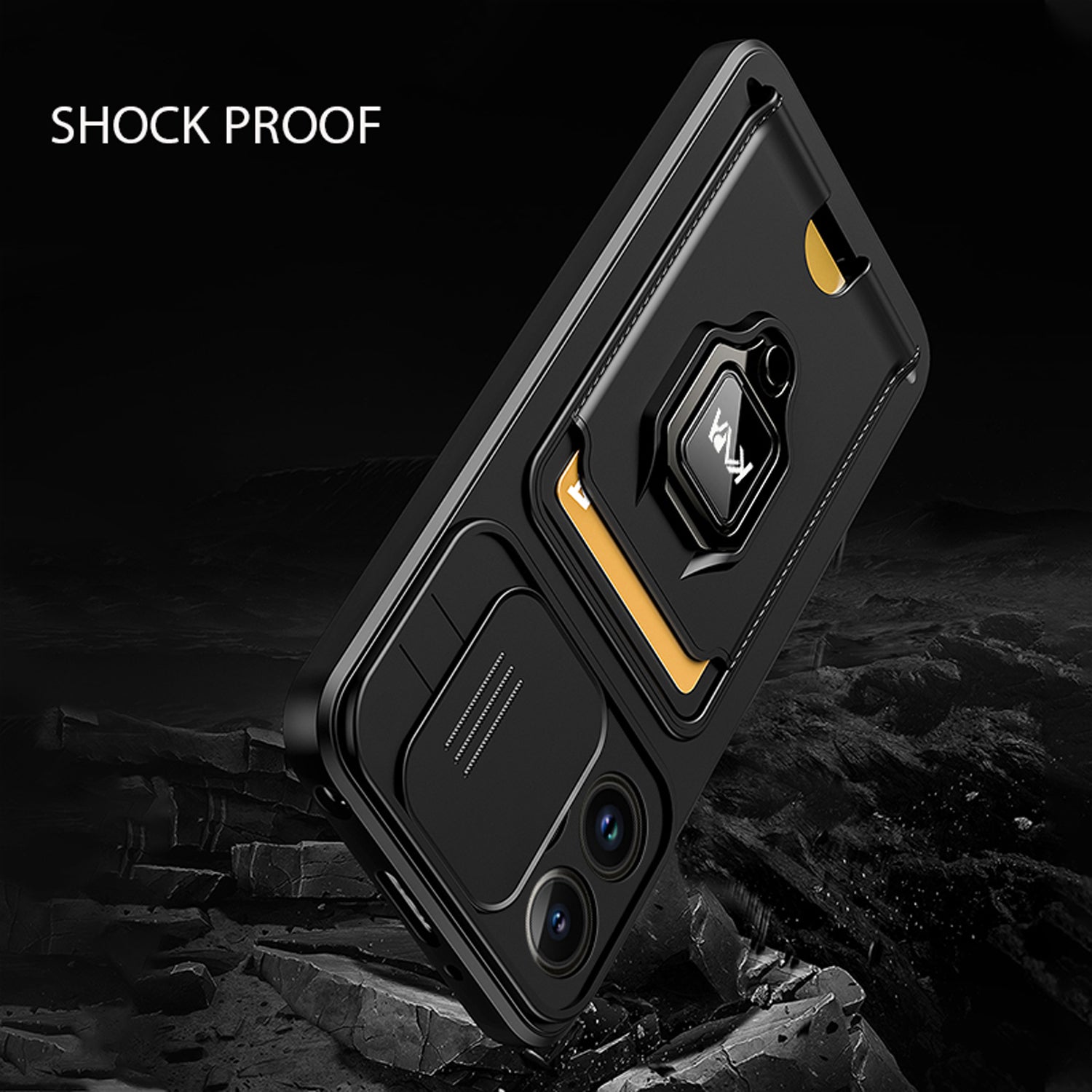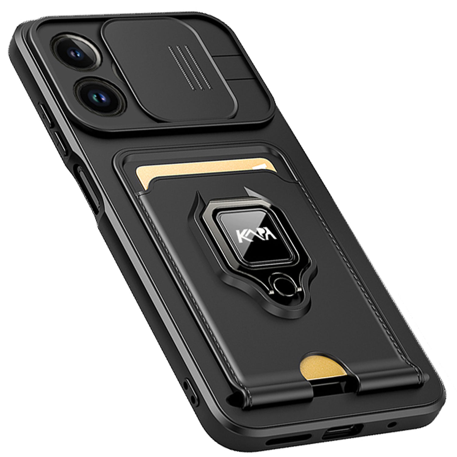 Bisen Back Cover for Apple iPhone 12 PRO MAX ,Inbuilt Camera Slider,Ring Stand and Card Pocket Shockproof Slim Bumper Back Case (Black)