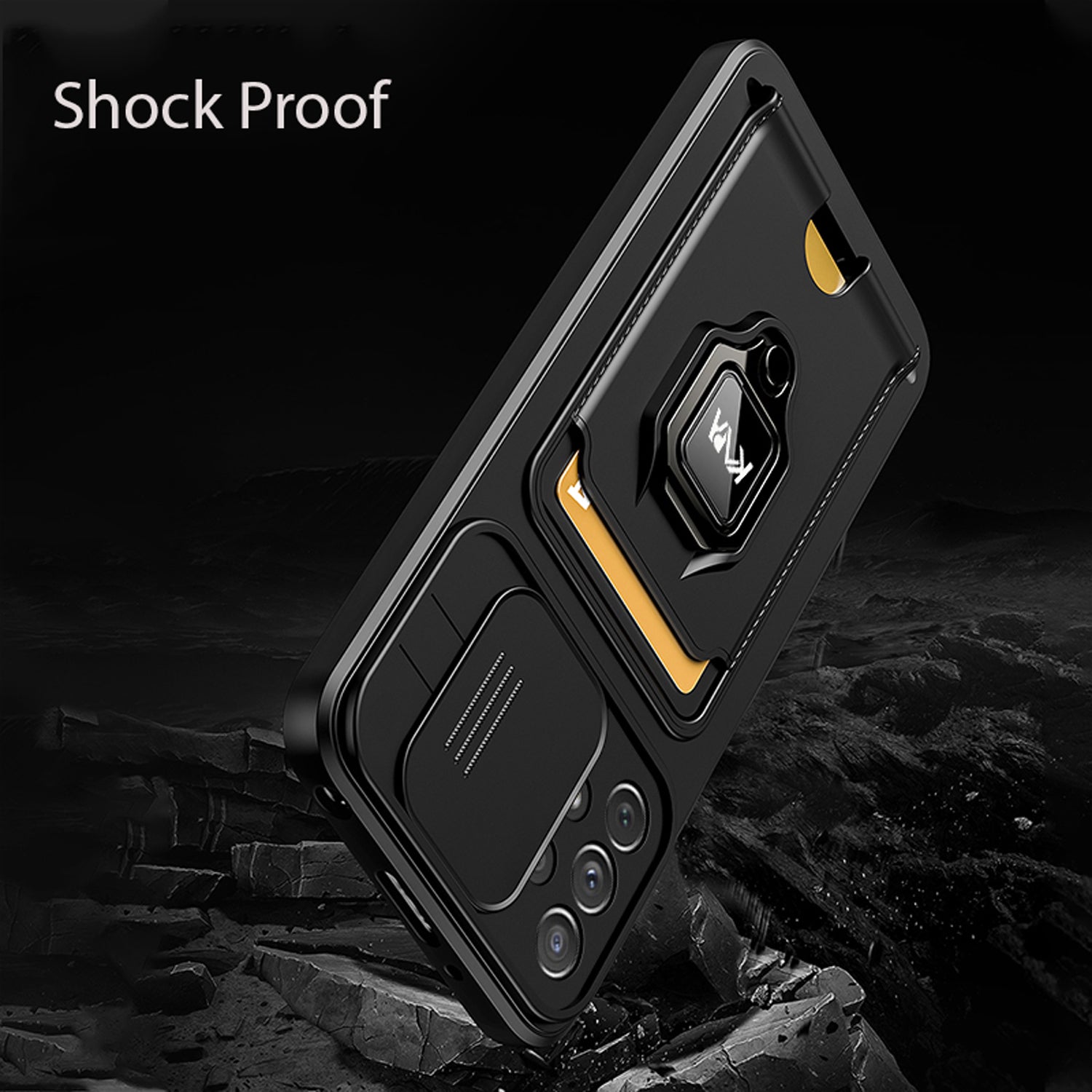 Bisen Back Cover for Samsung Galaxy A53 (5G) , Inbuilt Camera Slider ,Ring Stand and Card Pocket Shockproof Slim Bumper Back Case (Black)
