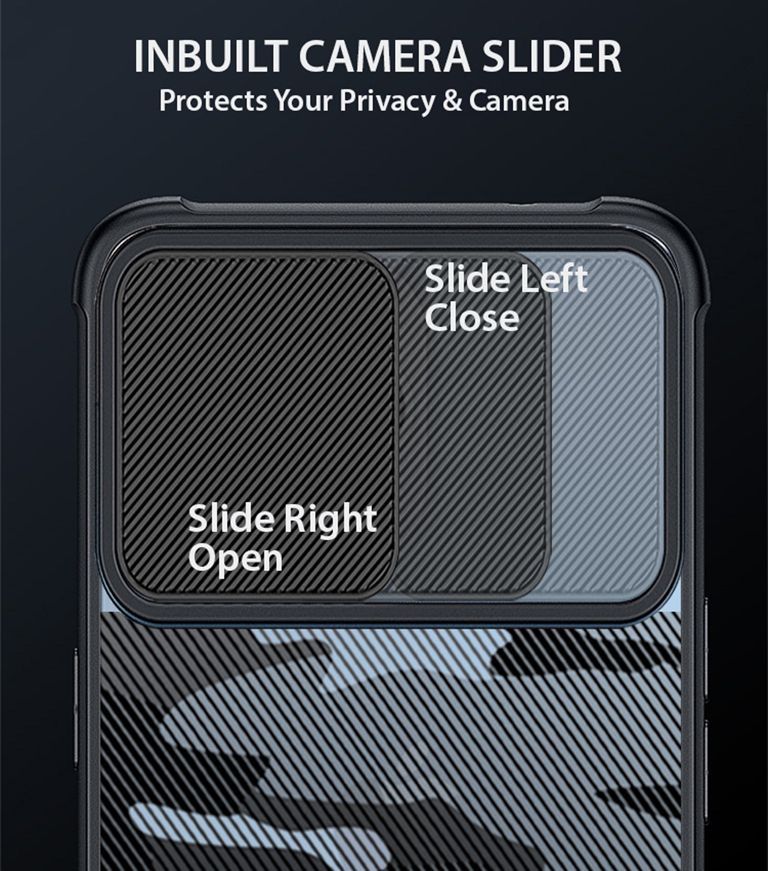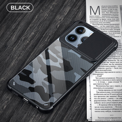Camo Slider Back Cover for Apple iPhone 13 Pro Max , [Military Grade Protection] Shockproof Slim Clear Camera Shield Bumper Back Case (Black)