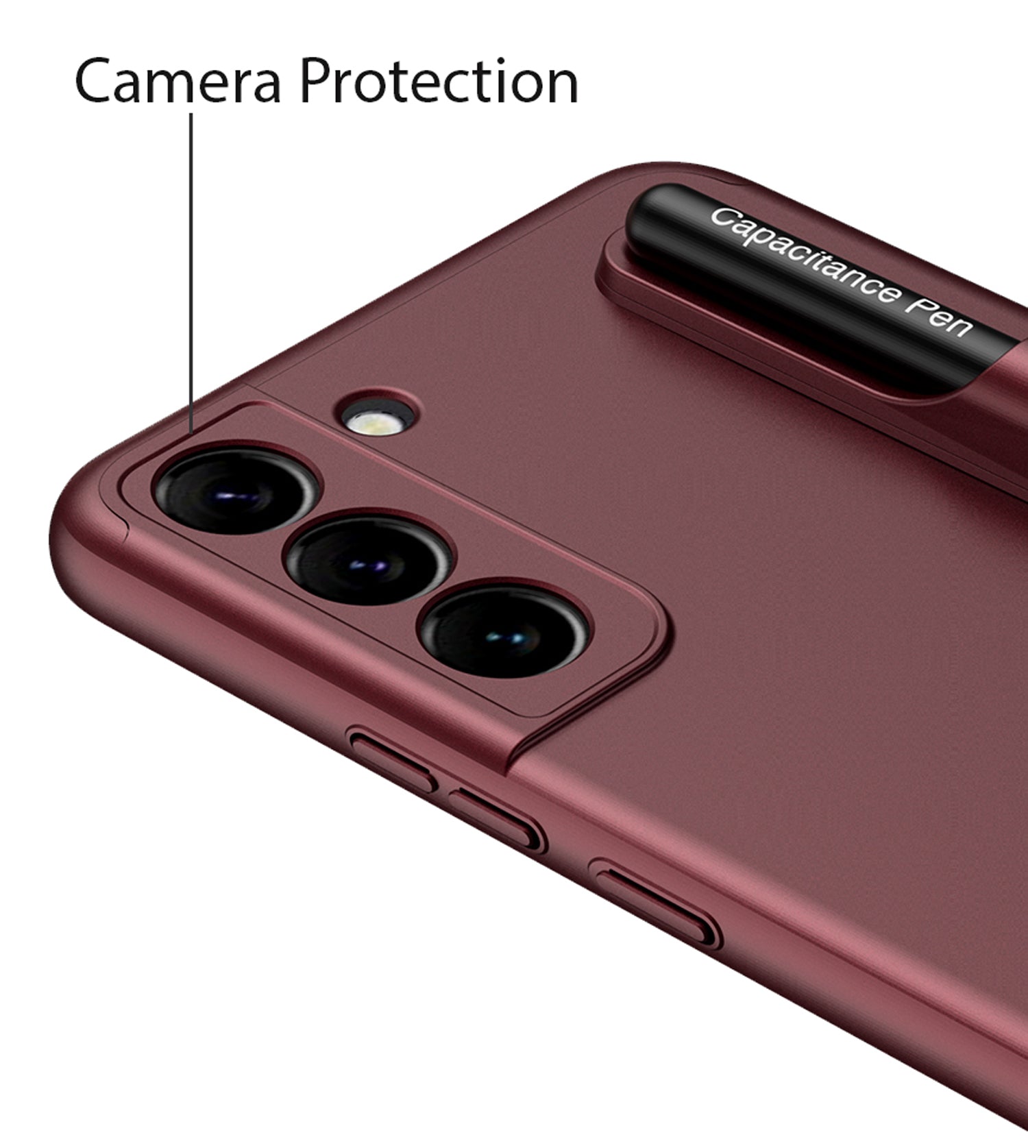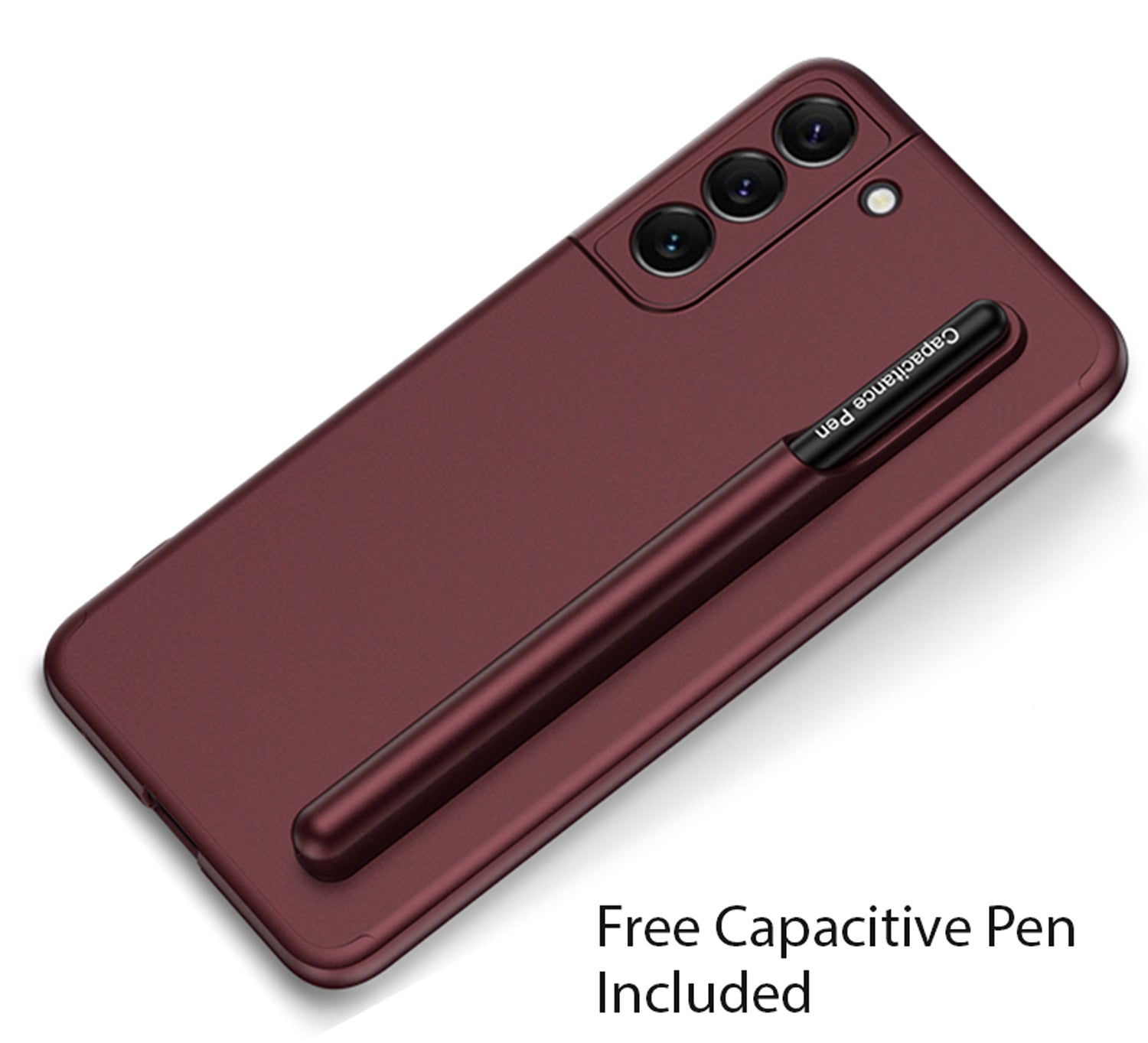 Double Dip Ultra Thin Back Case Cover for Samsung Galaxy S22 Plus , With Inbuilt Removable S Pen Holder (Burgundy)