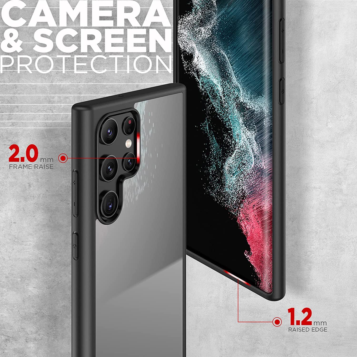 Hawkeye Clear Back Cover for Samsung Galaxy S22 Ultra , Camera Lens Protector Shockproof Slim Clear Case Cover (Black)