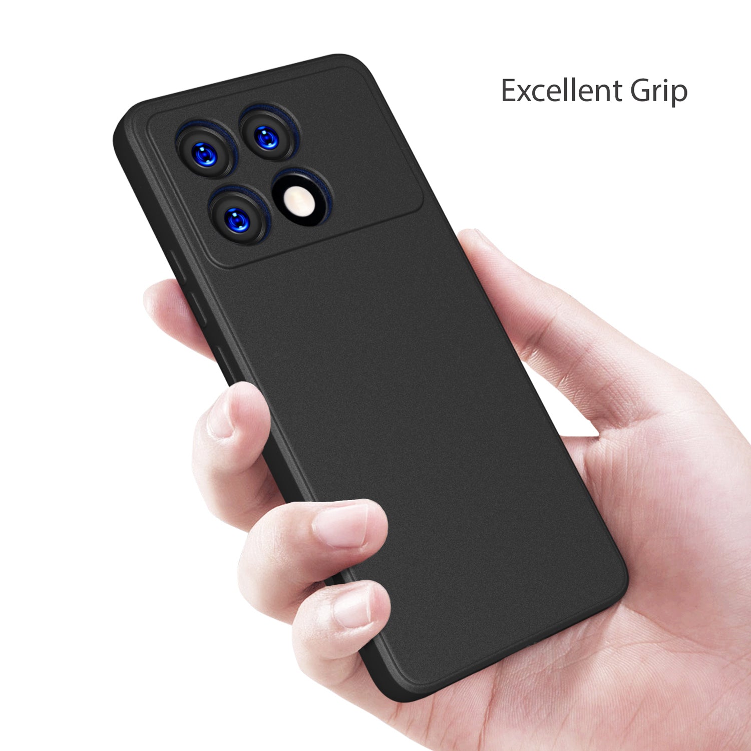 Kapa Matte Protective Lens Flexible Back Cover for Poco X6 PRO | Slim Silicone with Soft Lining Shockproof Full Body Bumper Case (Black)