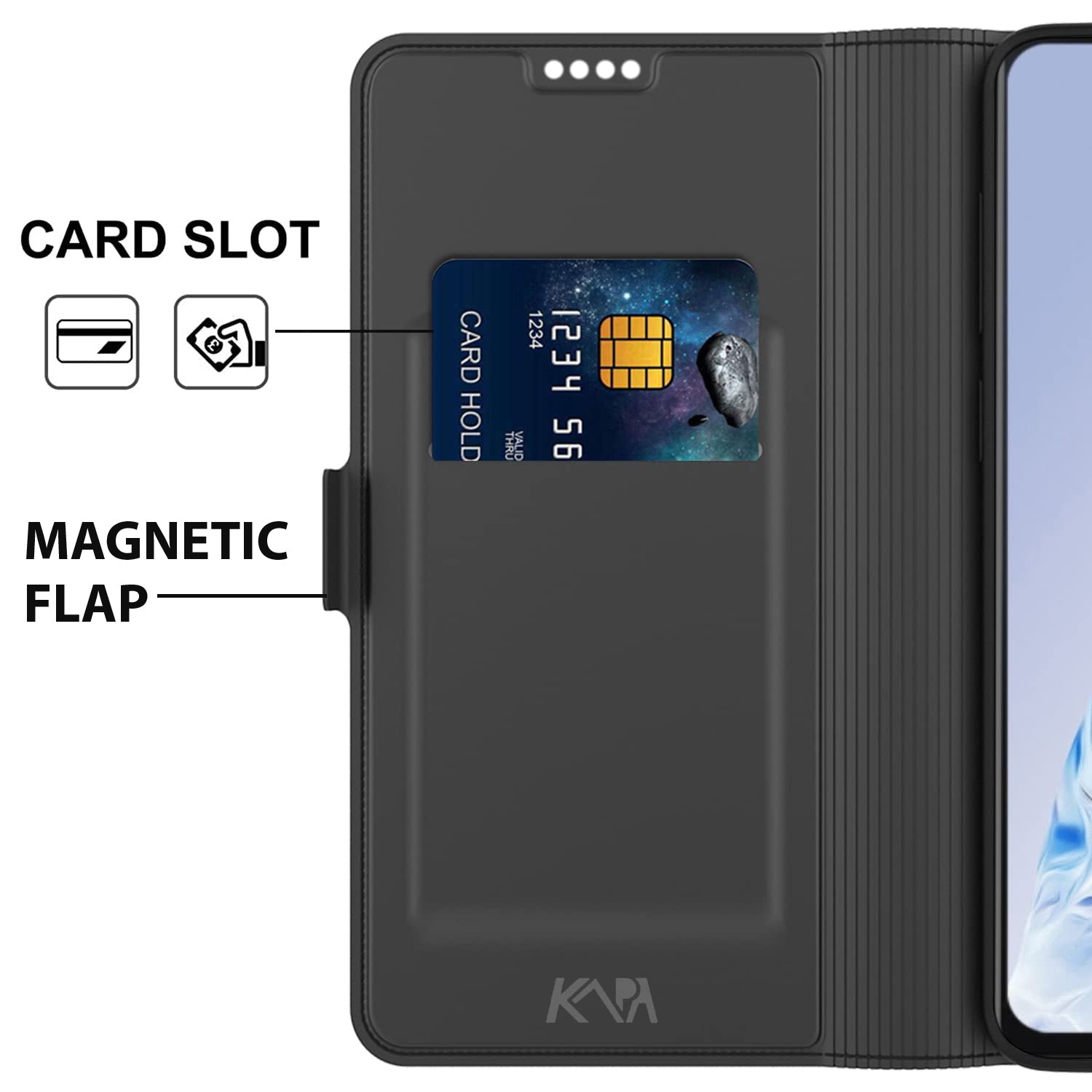 Kapa Noble Slim Magnetic Leather Flip Case Cover for Oppo Reno 11 PRO (5G) | Card Holder Stand Flip Wallet Case (Black)