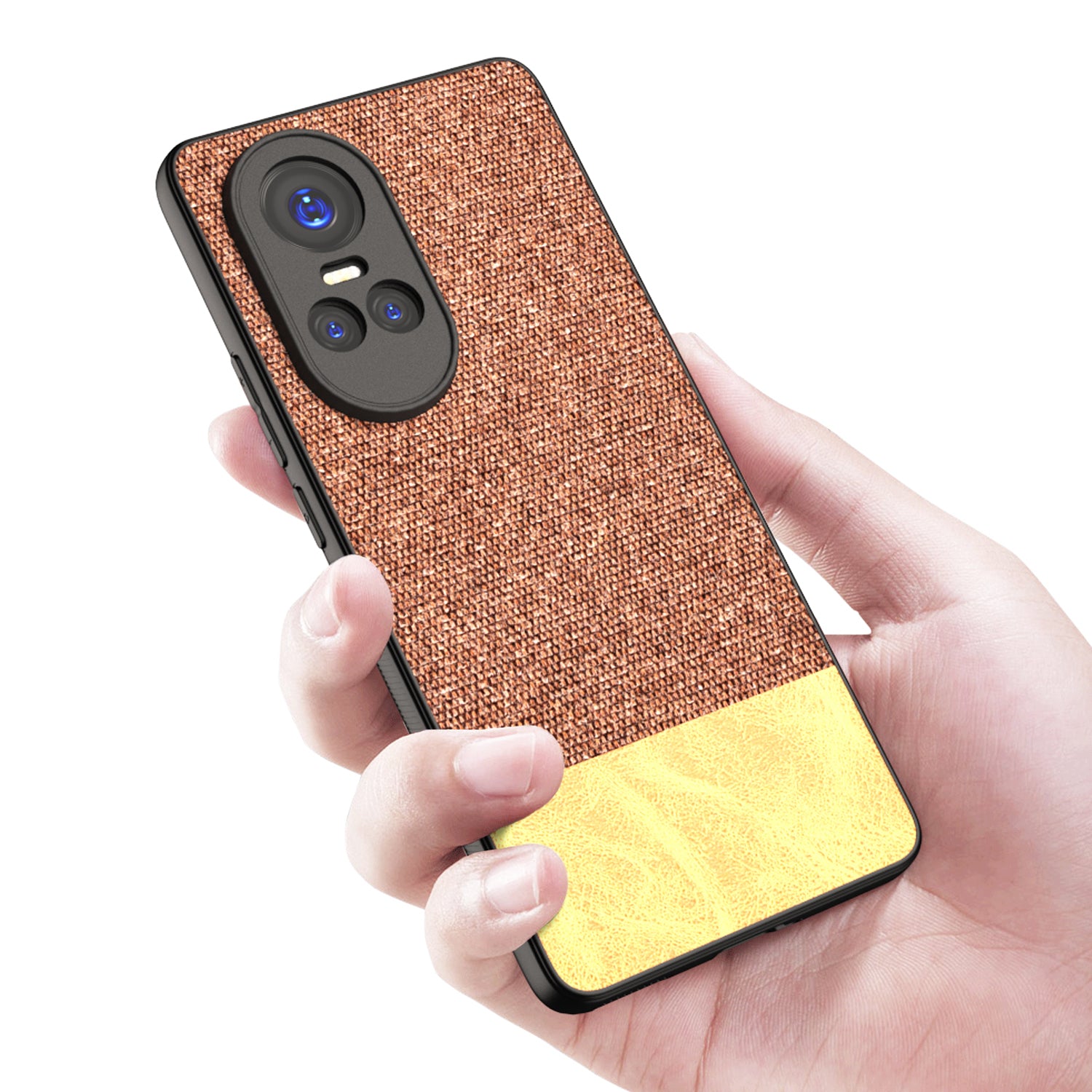 KAPA Soft Fabric & Leather Hybrid Protective Back Cover for Oppo Reno 10 / Reno 10 PRO (5G) | Shockproof Slim Hard Anti Slip Back Case (Brown)