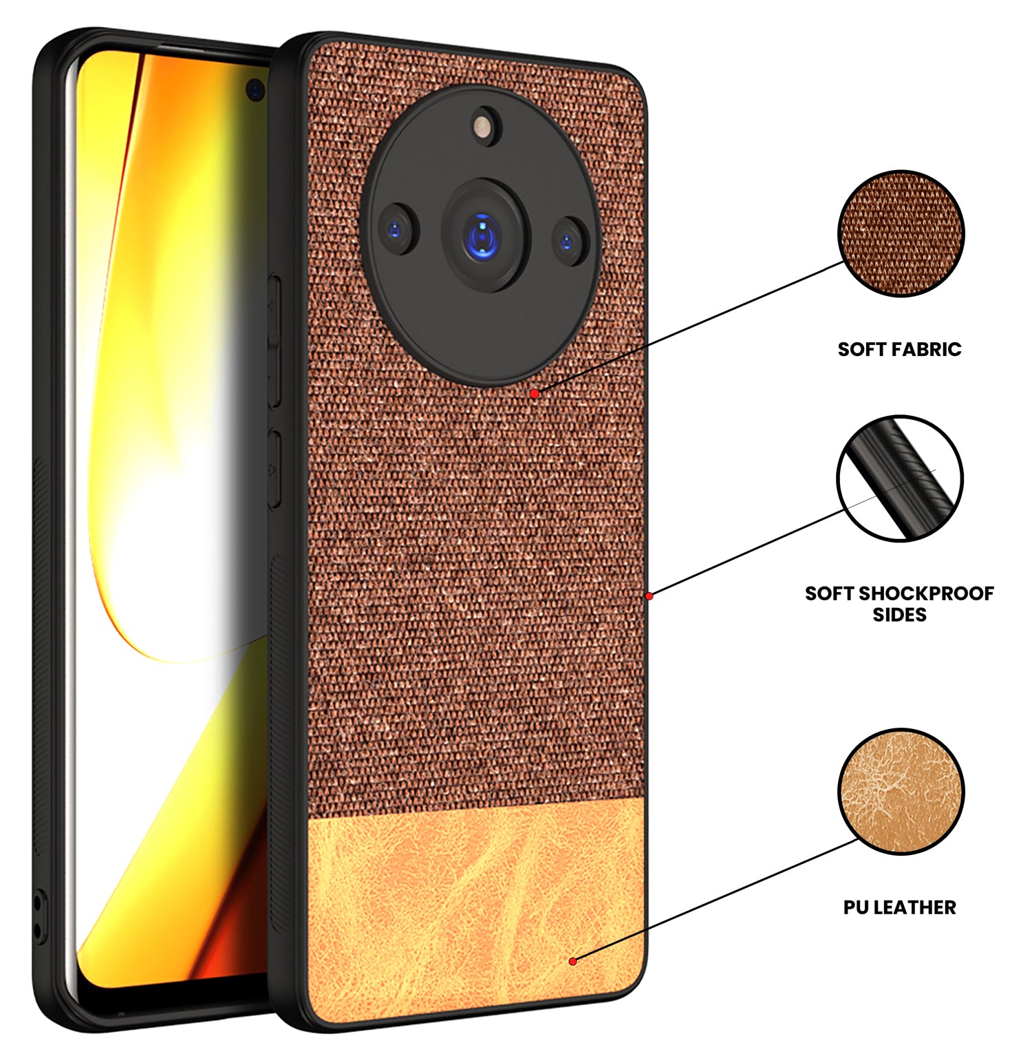 KAPA Soft Fabric & Leather Hybrid Protective Back Cover for Realme 11 PRO / 11 PRO + (PLUS) | Shockproof Slim Hard Anti Slip Back Case (Brown)