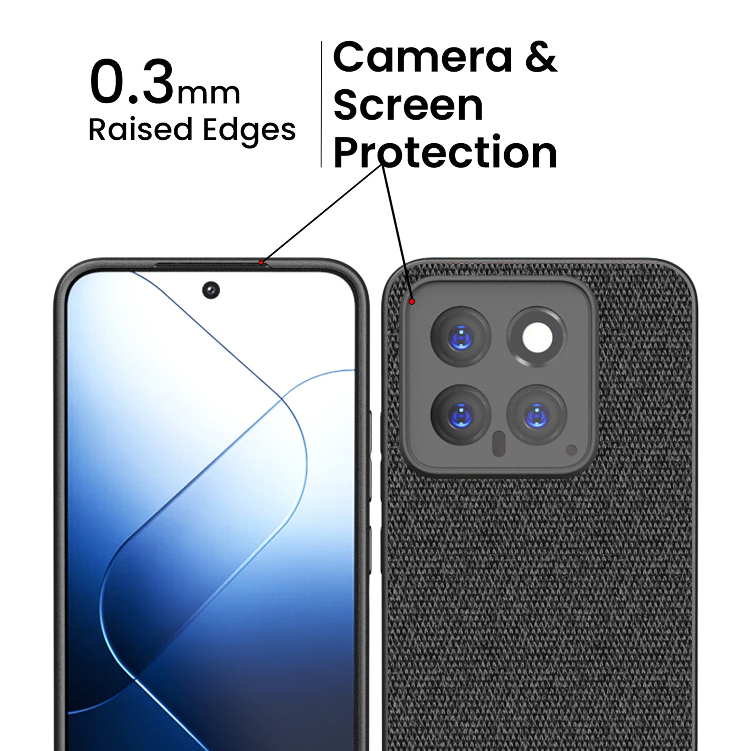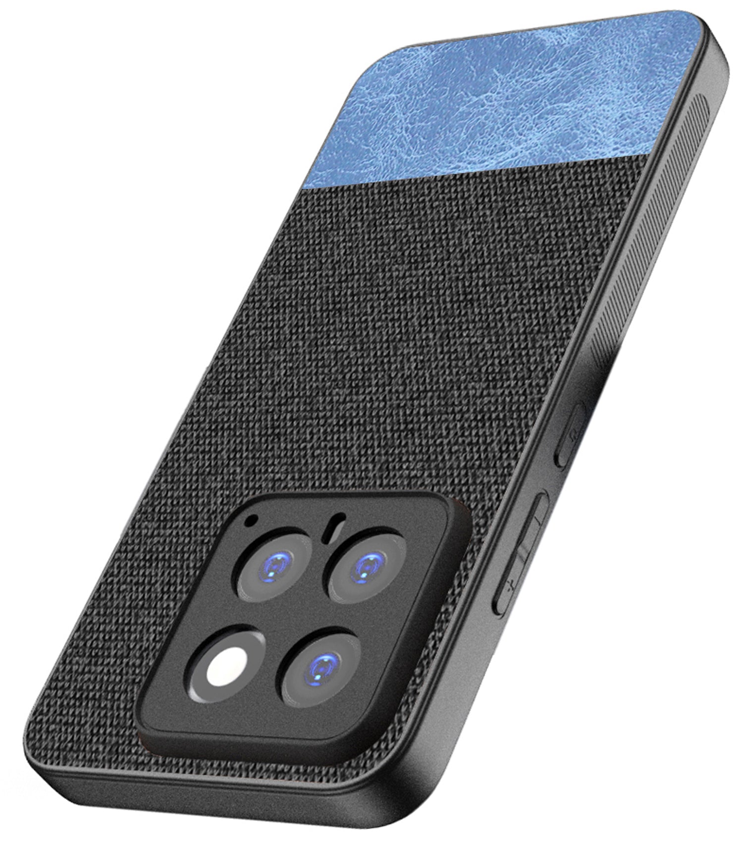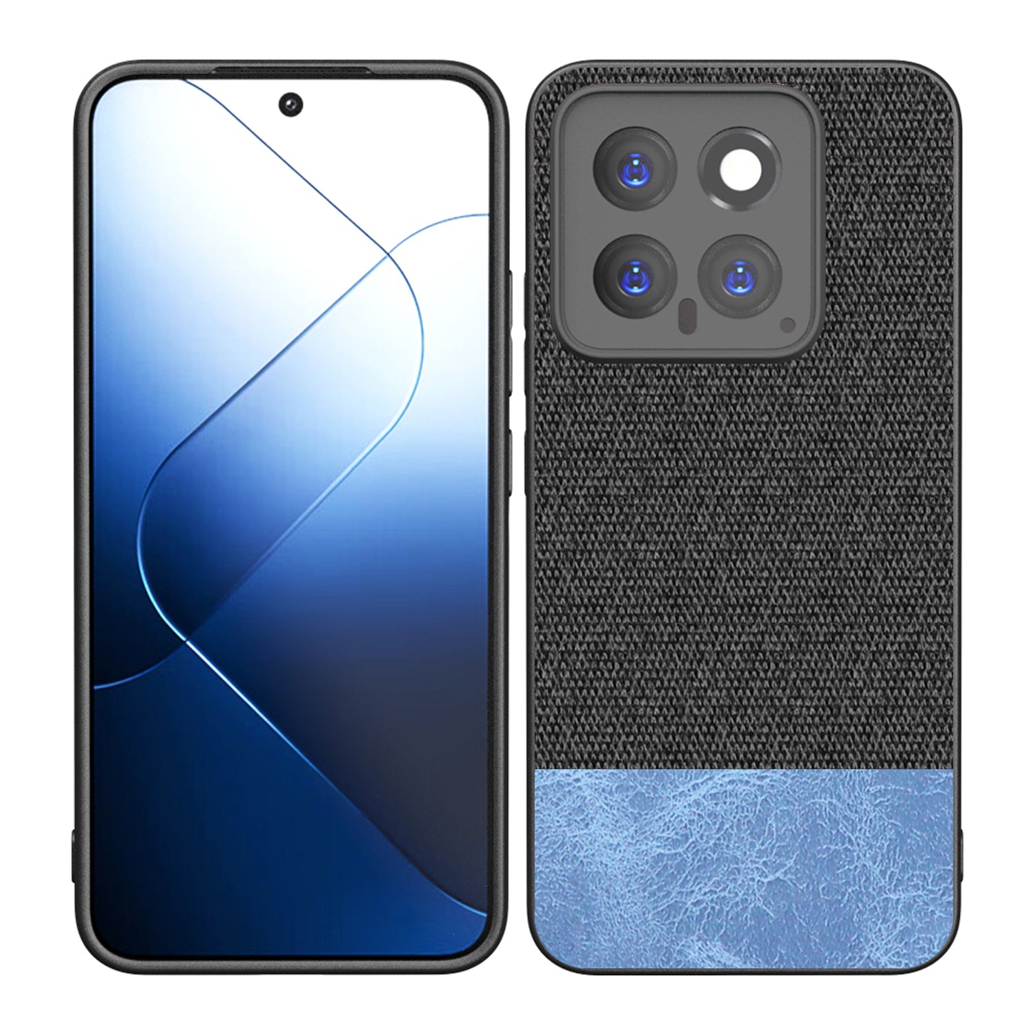 Mobizang Soft Fabric & Leather Hybrid Protective Back Cover for Xiaomi 14 (5G) | Shockproof Slim Hard Anti Slip Back Case (Black,Blue)