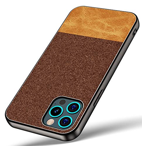 Soft Fabric & Leather Hybrid Protective Case Cover for Apple iPhone 12 PRO MAX (6.7) (Brown)
