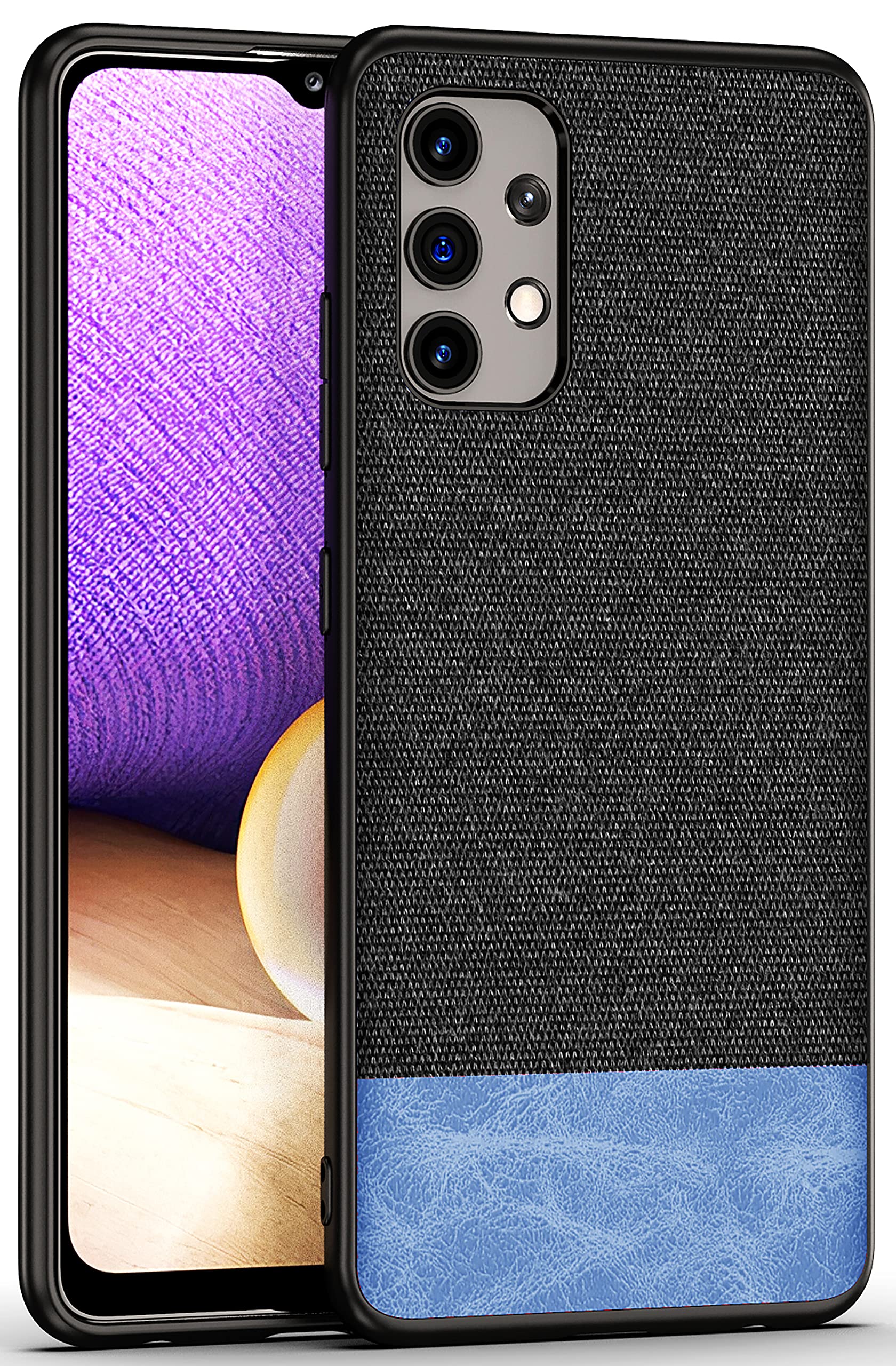 Soft Fabric & Leather Hybrid Protective Case Cover for Samsung Galaxy A32 (Black,Blue)