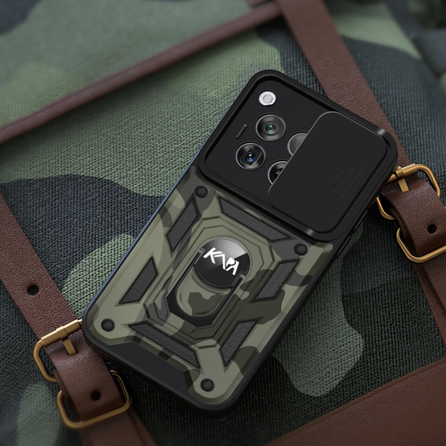 Kapa Tank Back Cover for Oneplus 12 | Inbuilt Ring + Slider Shockproof Lens Protection Bumper Back Case (Black)