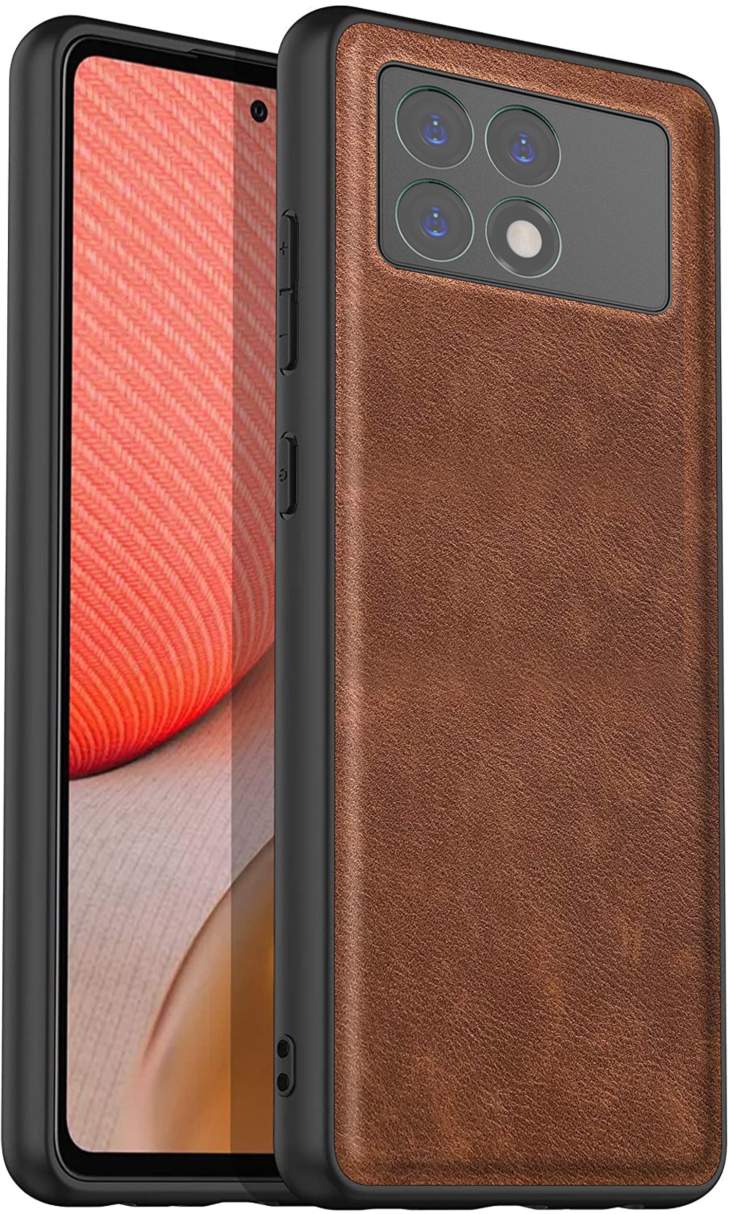 Kapa Tux Leather Back Cover for Poco X6 PRO | Slim Shockproof Camera Protection Bumper Case (Brown)