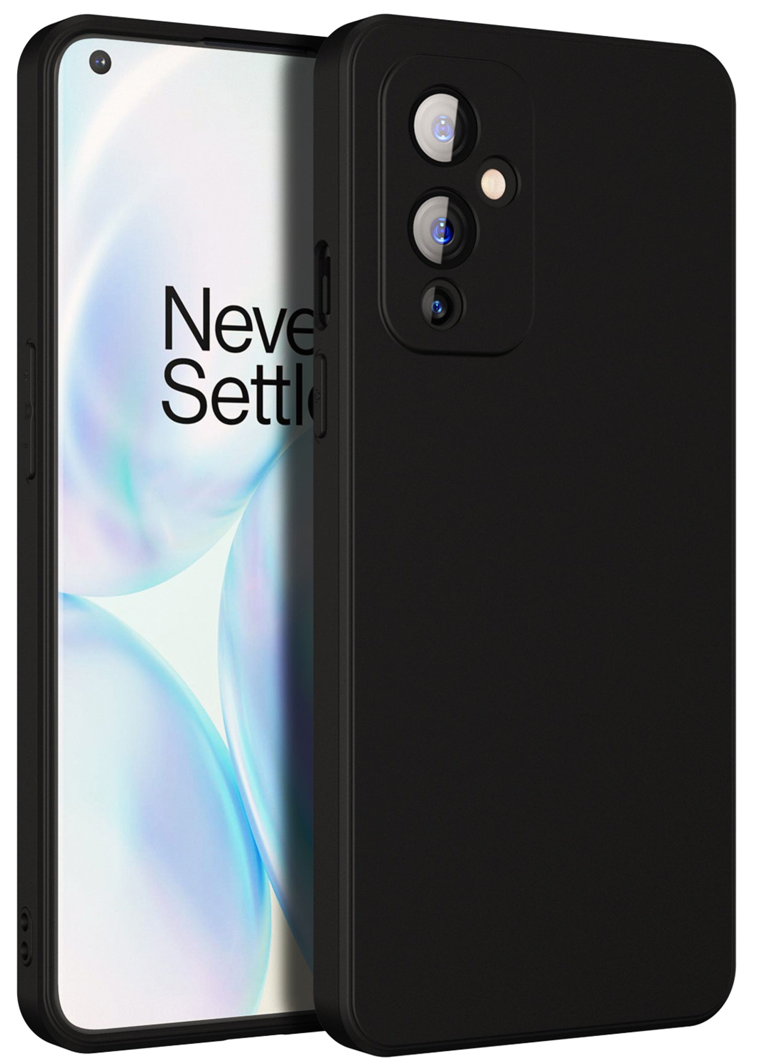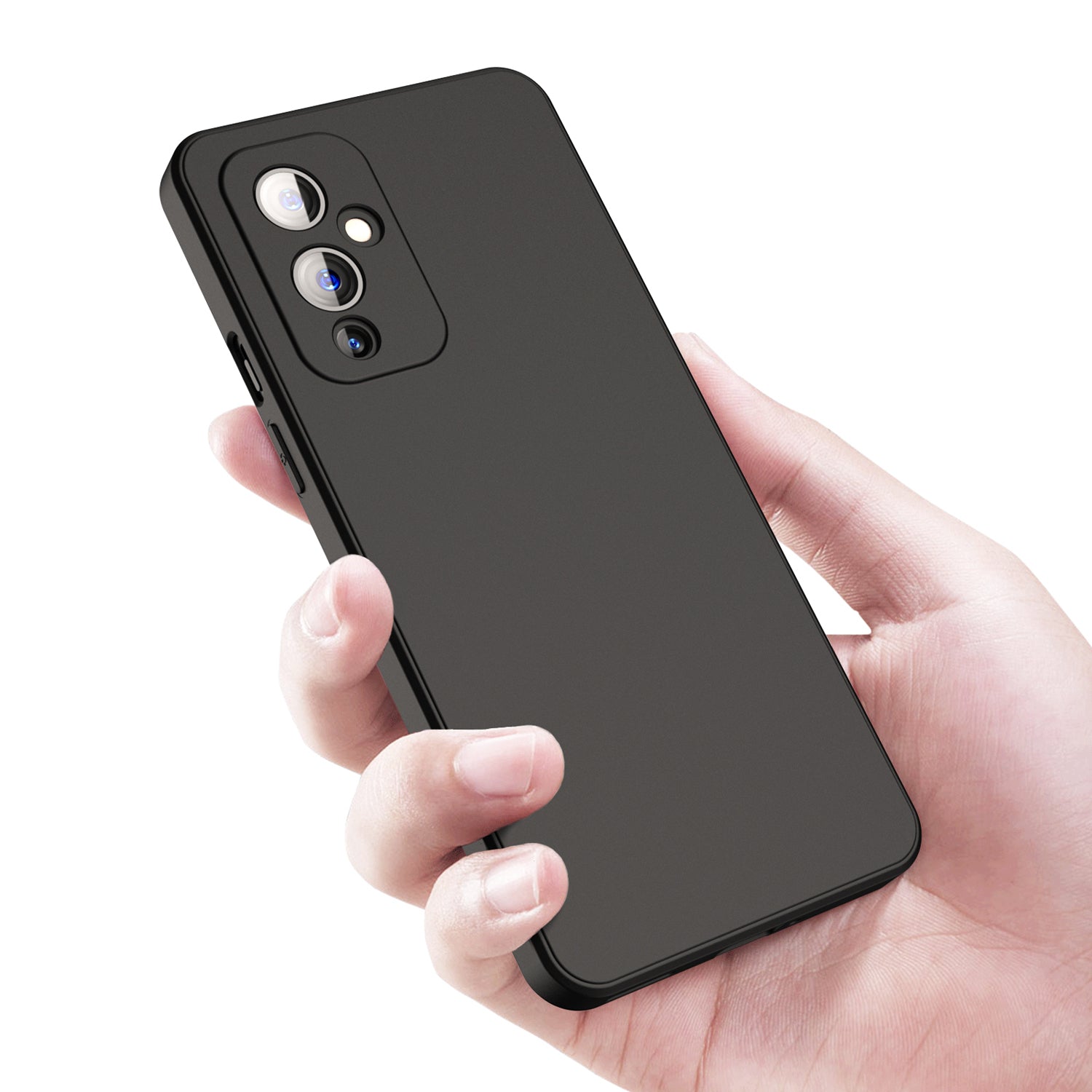 Matte Lens Protective Back Cover for OnePlus 9 / One Plus 9 , Slim Silicone with Soft Lining Shockproof Flexible Full Body Bumper Case (Black)
