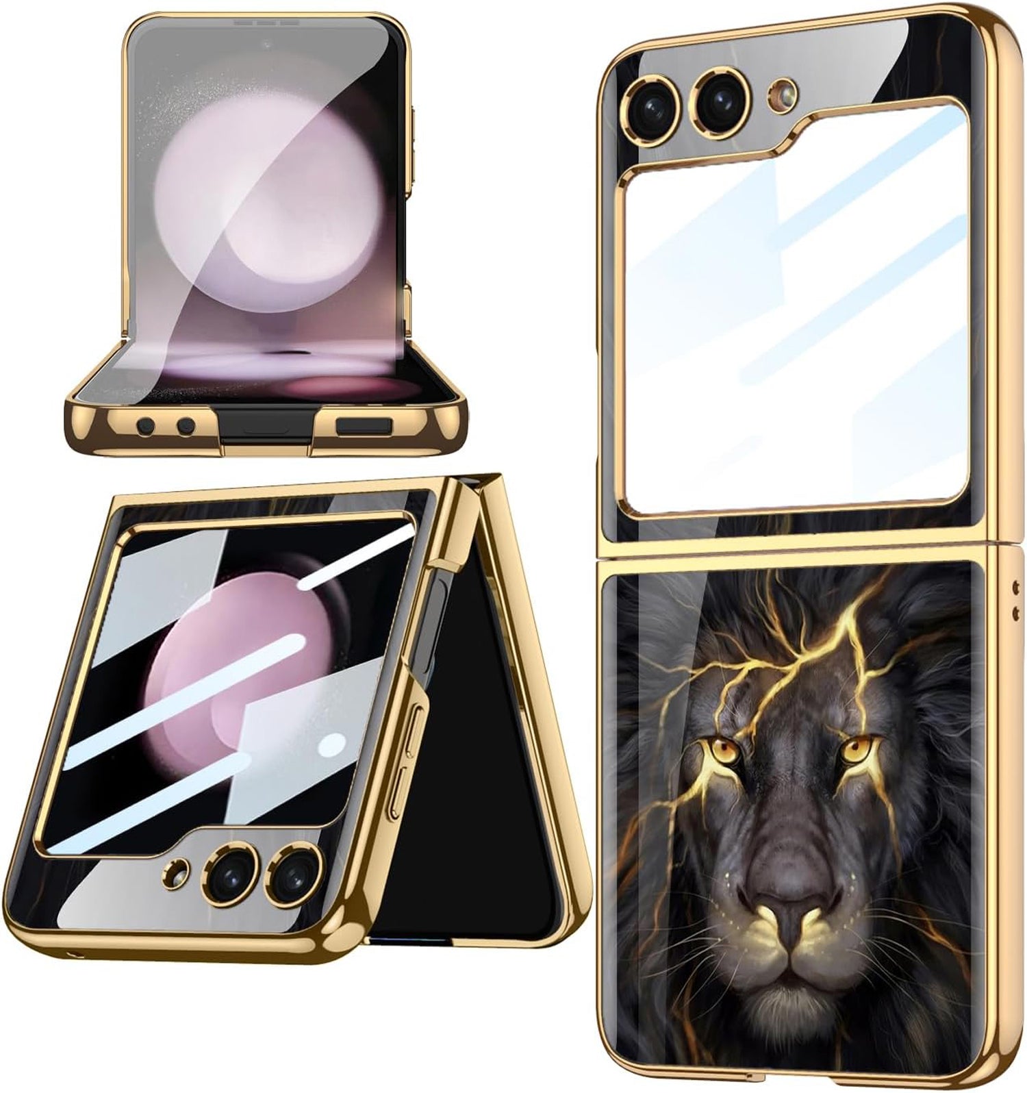 Mobizang 9H Glass Back Case for Samsung Galaxy Z Flip6 / Z Flip 6,Ultra Thin Full Body Protection Folding Hard Back Cover, Design Lion