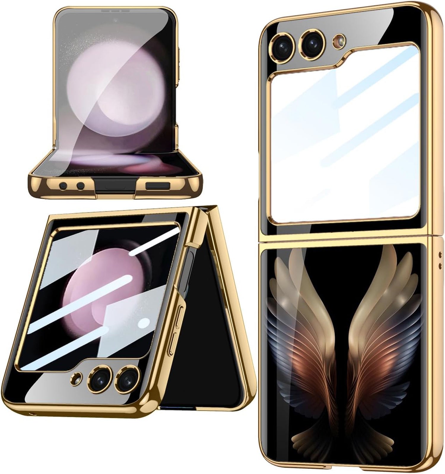 Mobizang 9H Glass Back Case for Samsung Galaxy Z Flip6 / Z Flip 6,Ultra Thin Full Body Protection Folding Hard Back Cover, Design Wings