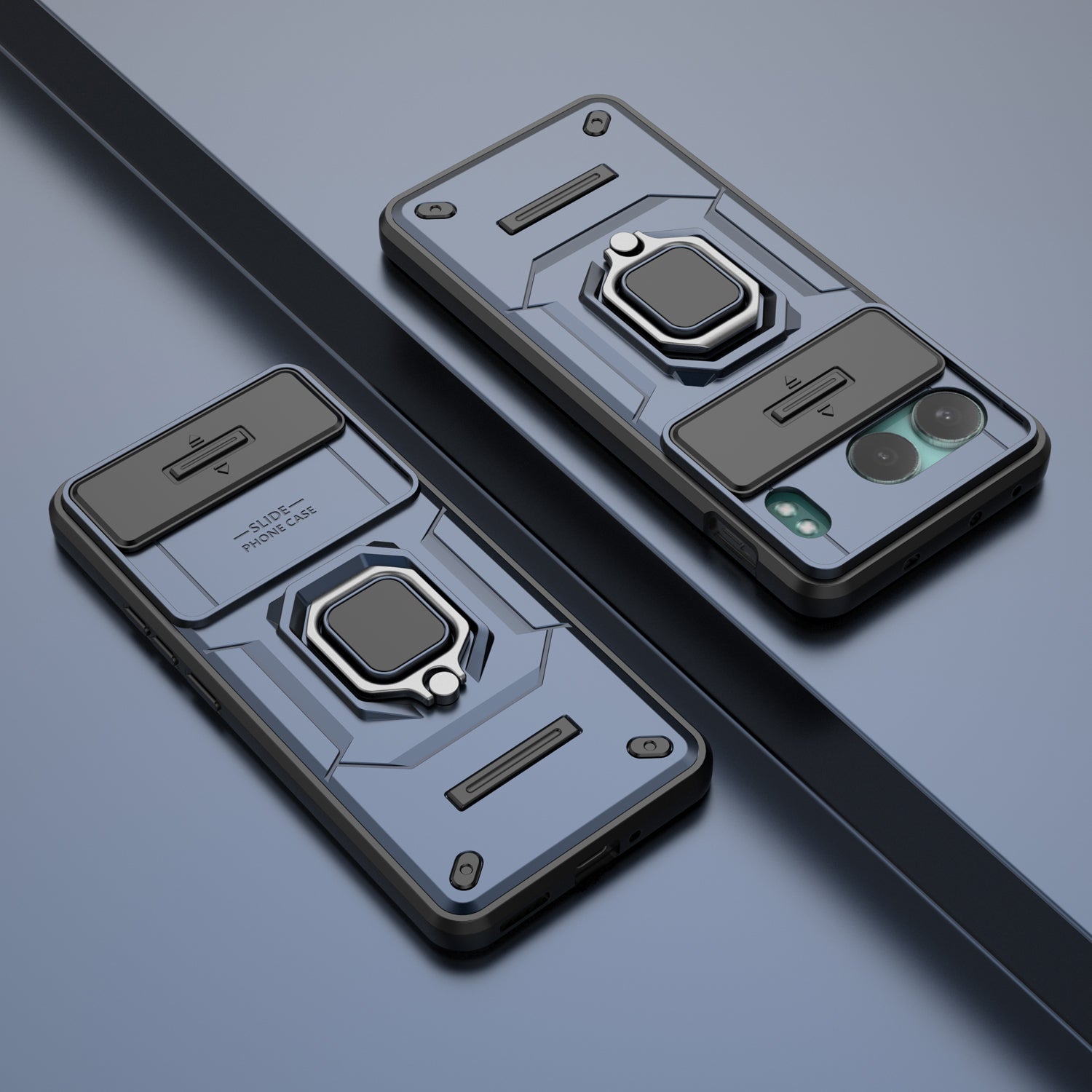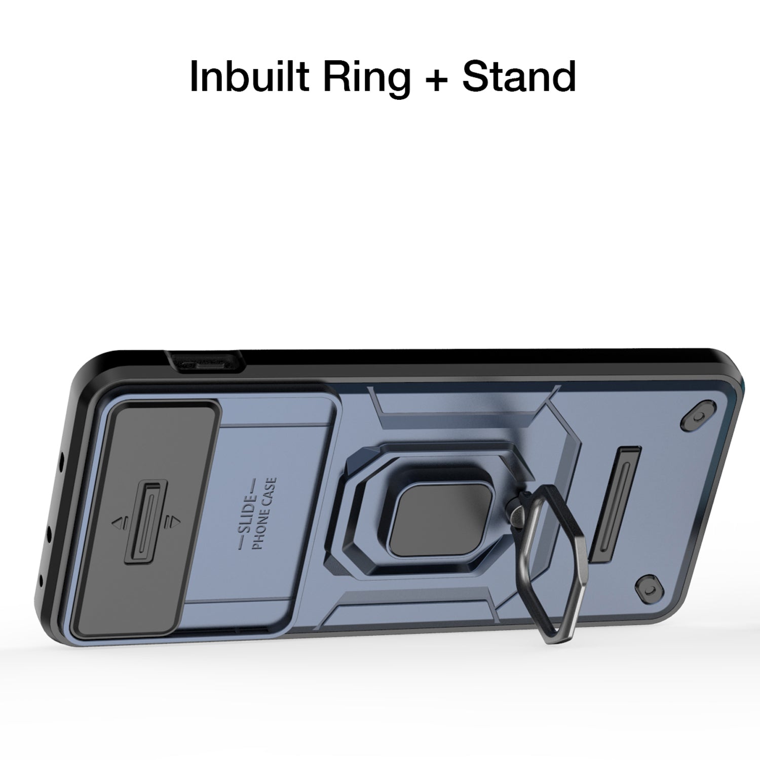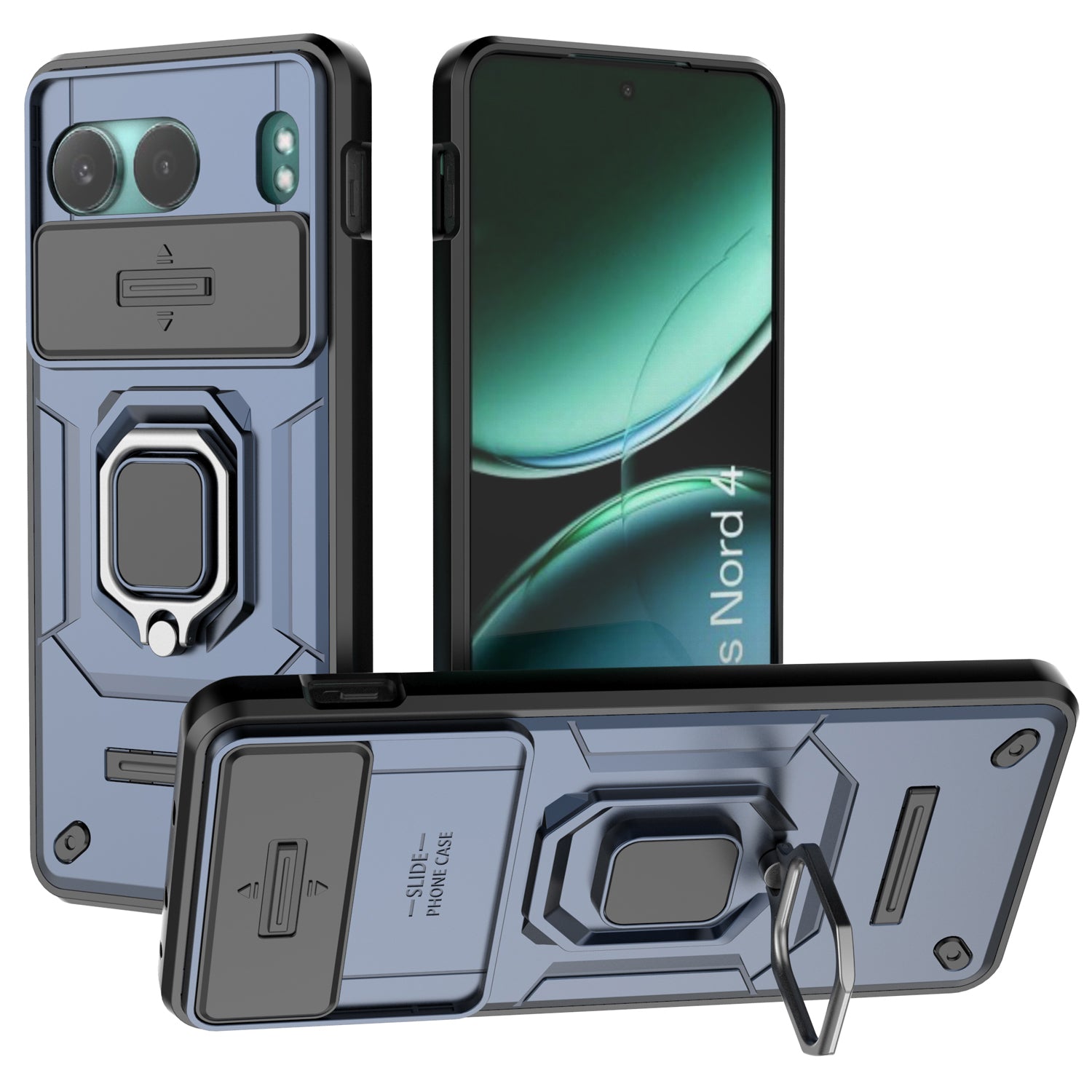 Mobizang Armor Slider Back Cover for OnePlus Nord 4 | Inbuilt Ring + Camera Slider Shockproof Lens Protection Bumper Back Case (Blue)