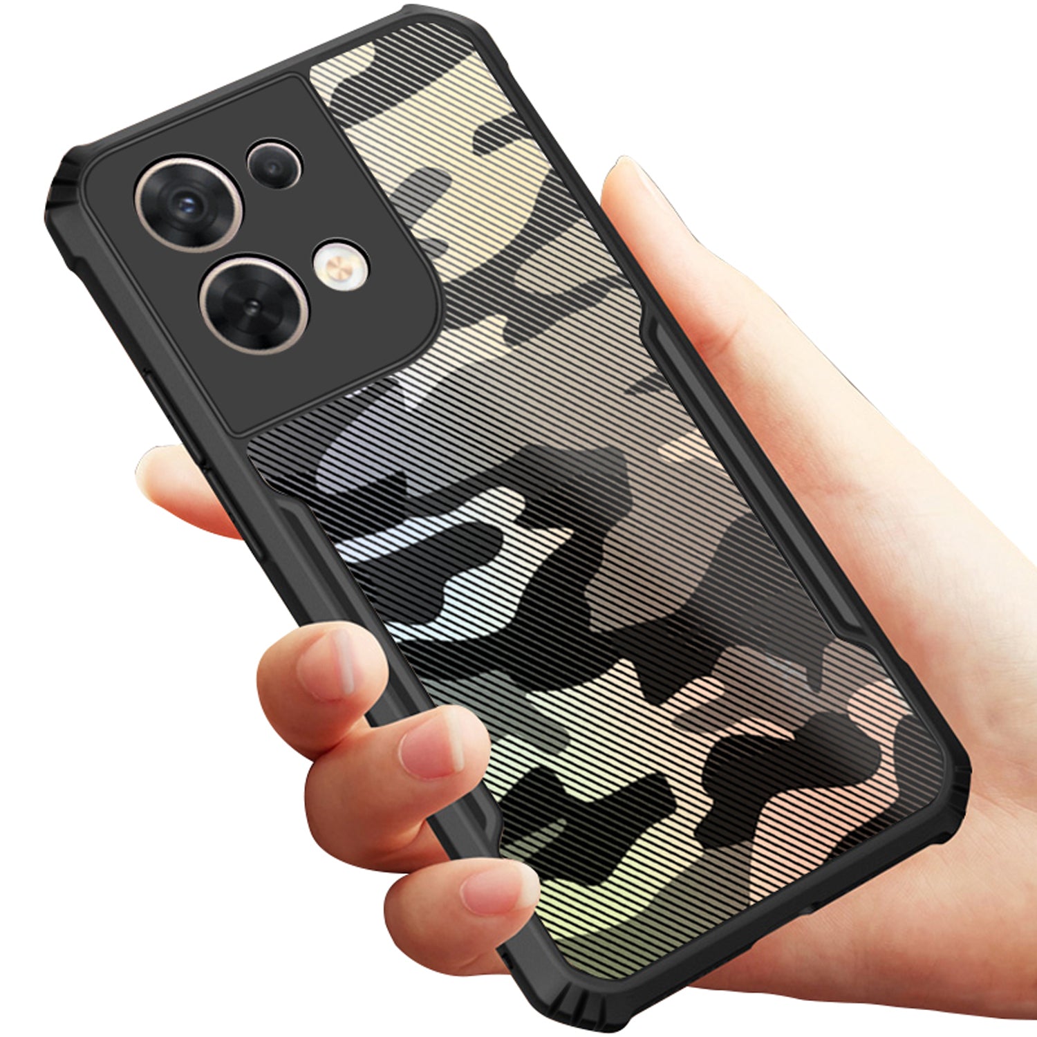 Mobizang Beetle Camouflage for Oppo Reno 8 Pro (5G) Back Case, [Military Grade Protection] Shock Proof Slim Hybrid Bumper Cover (Black)