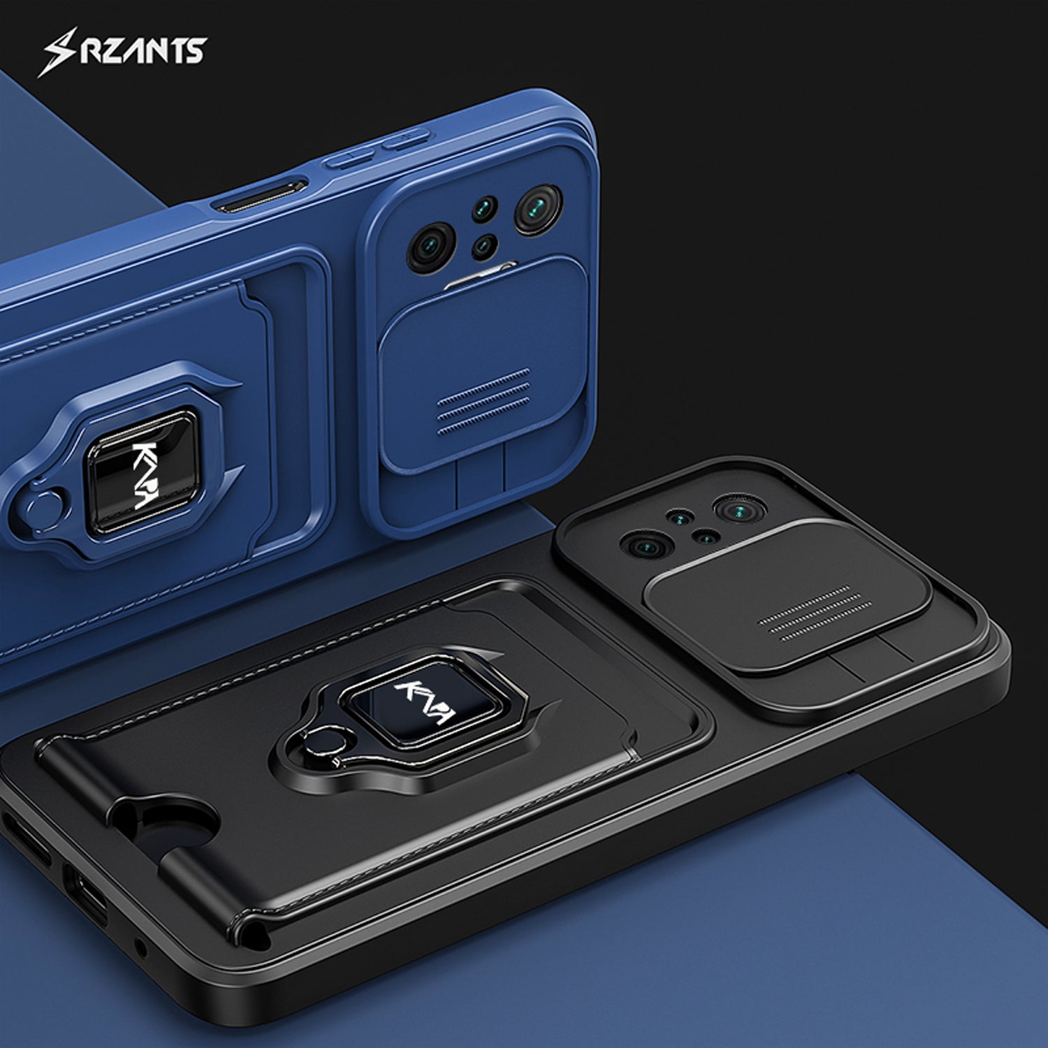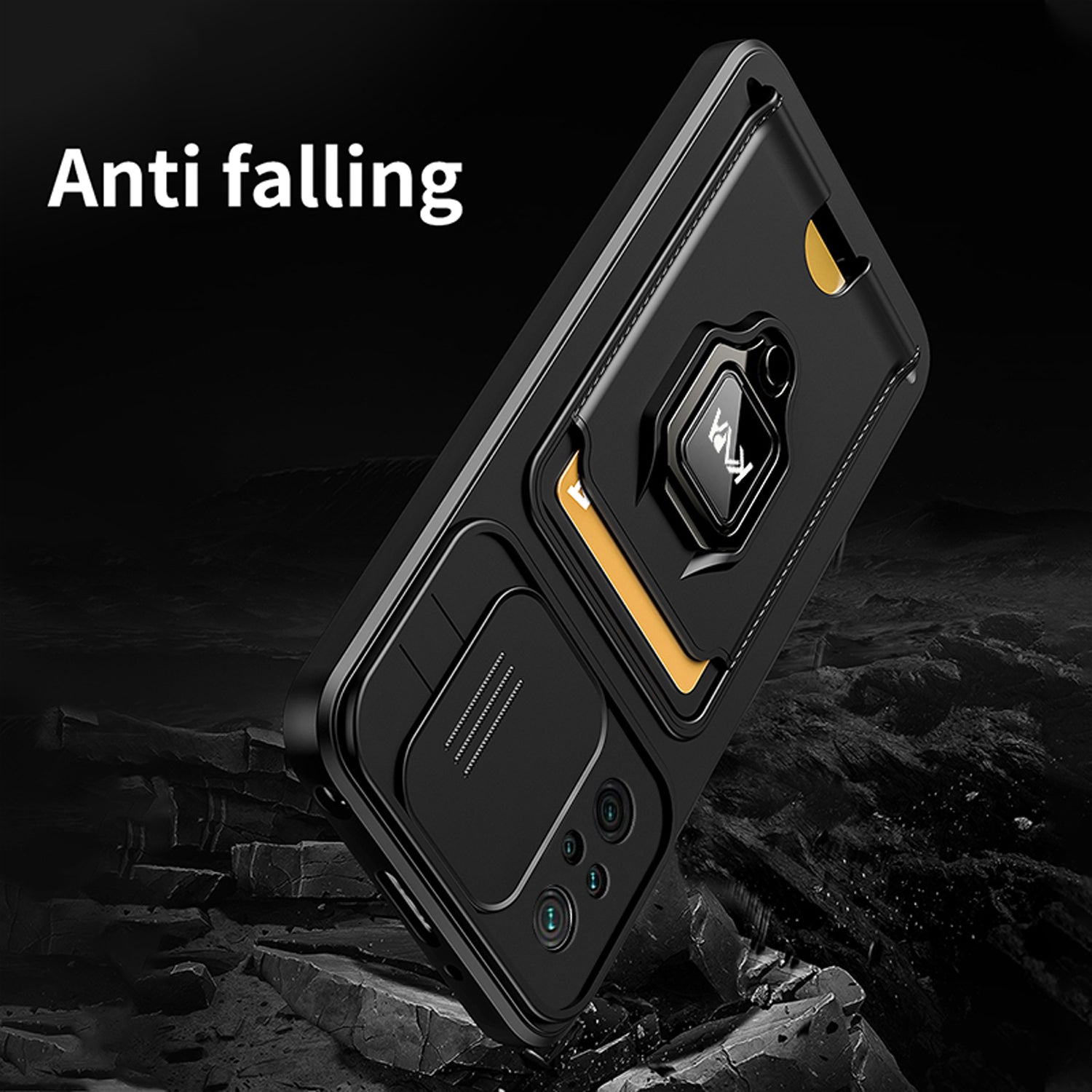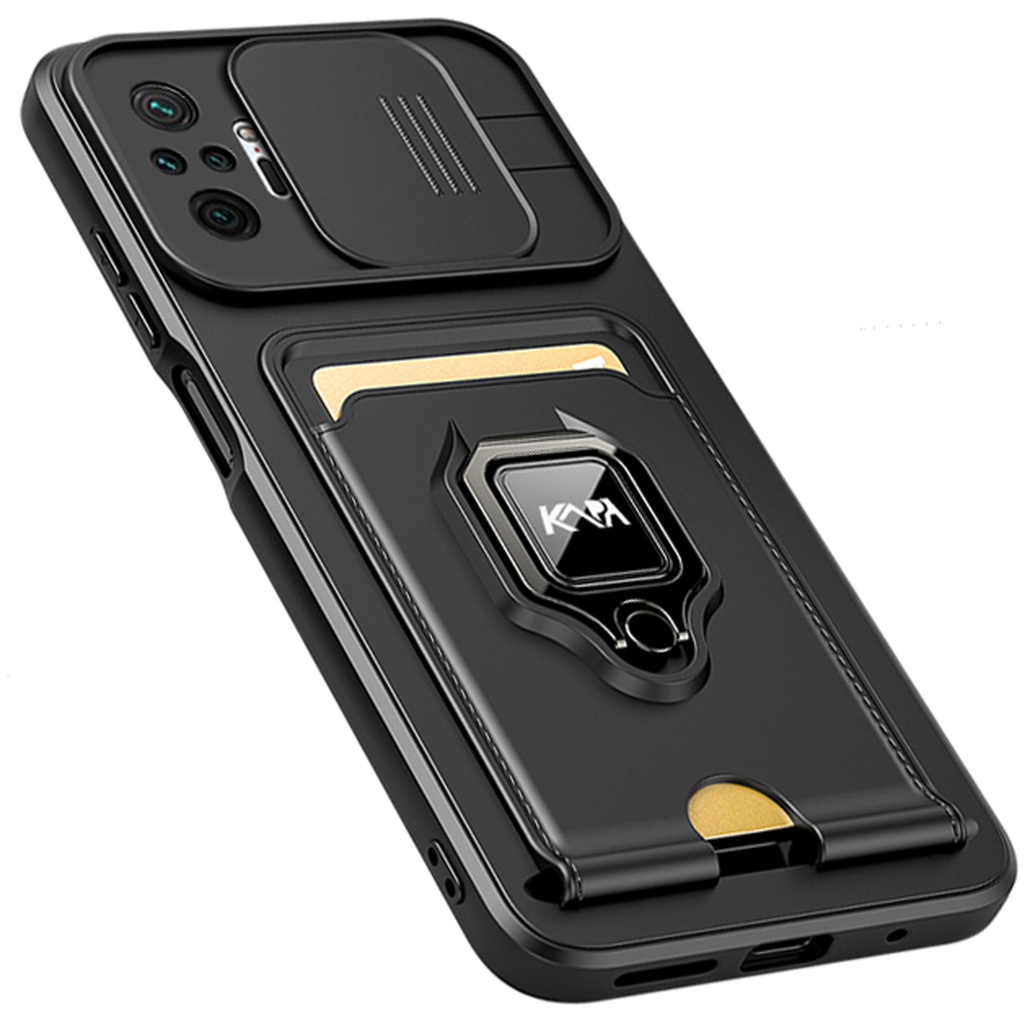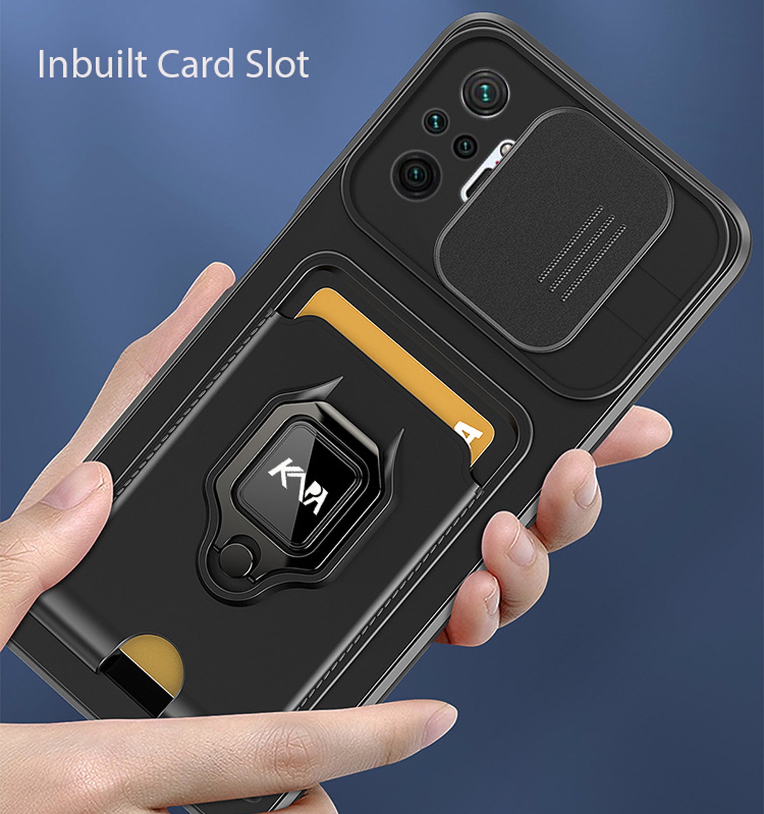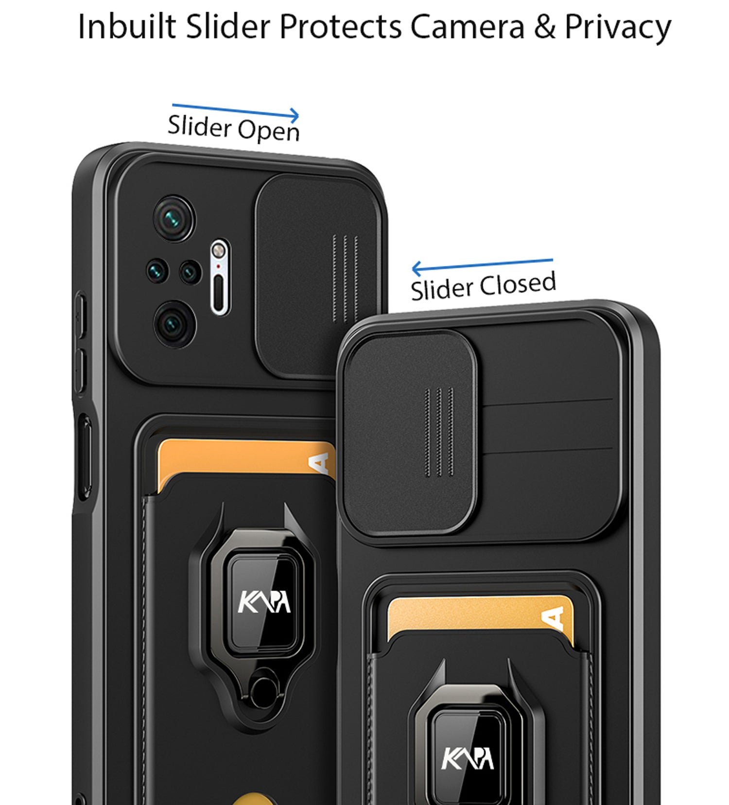 Mobizang Bisen Back Cover for Redmi Note 10 Pro / Note 10 Pro Max , Inbuilt Camera Slider Ring Stand and Card Pocket Shockproof Slim Bumper Back Case (Black)