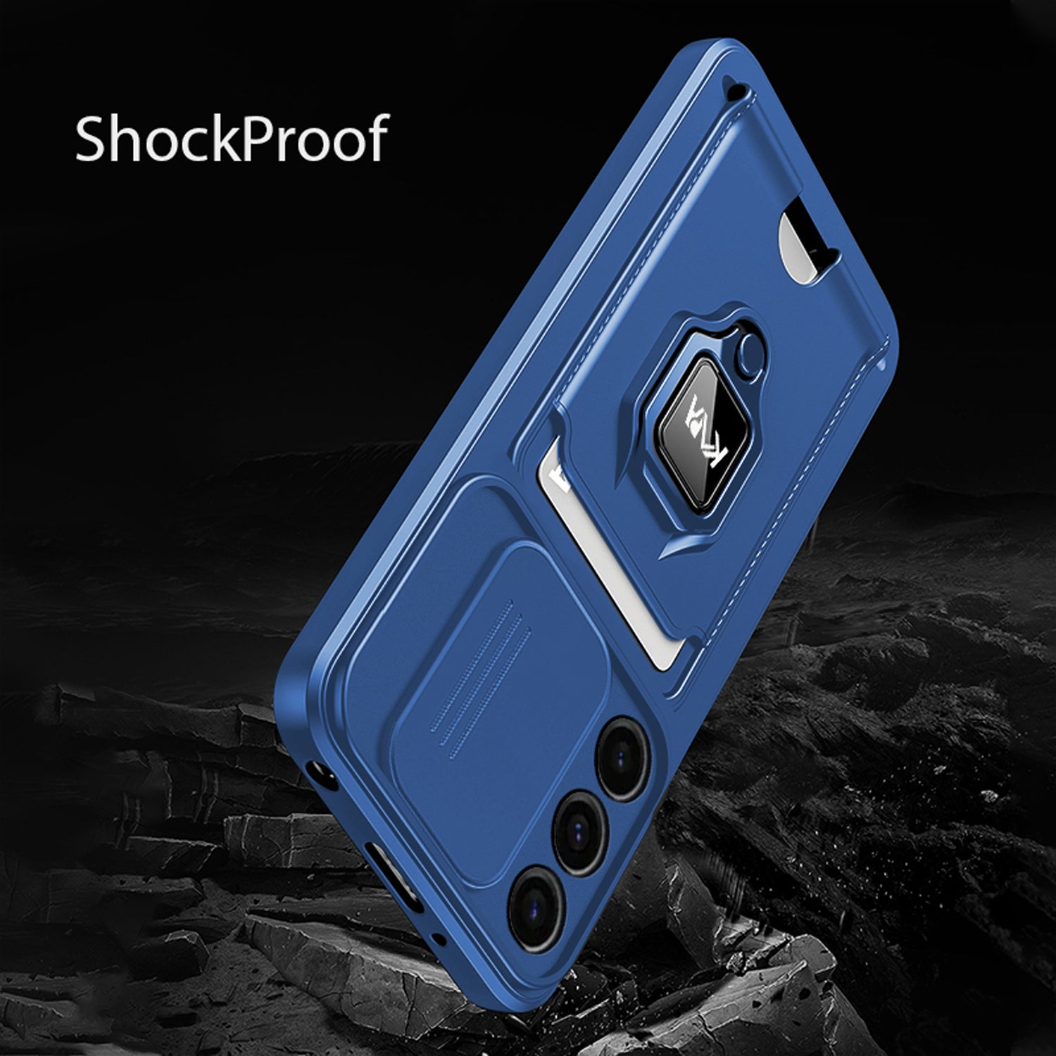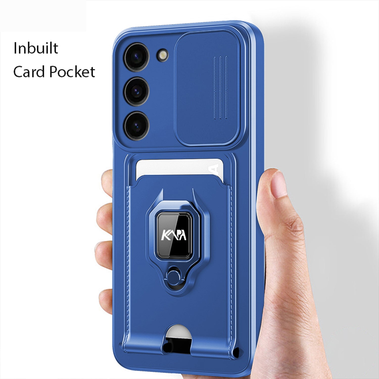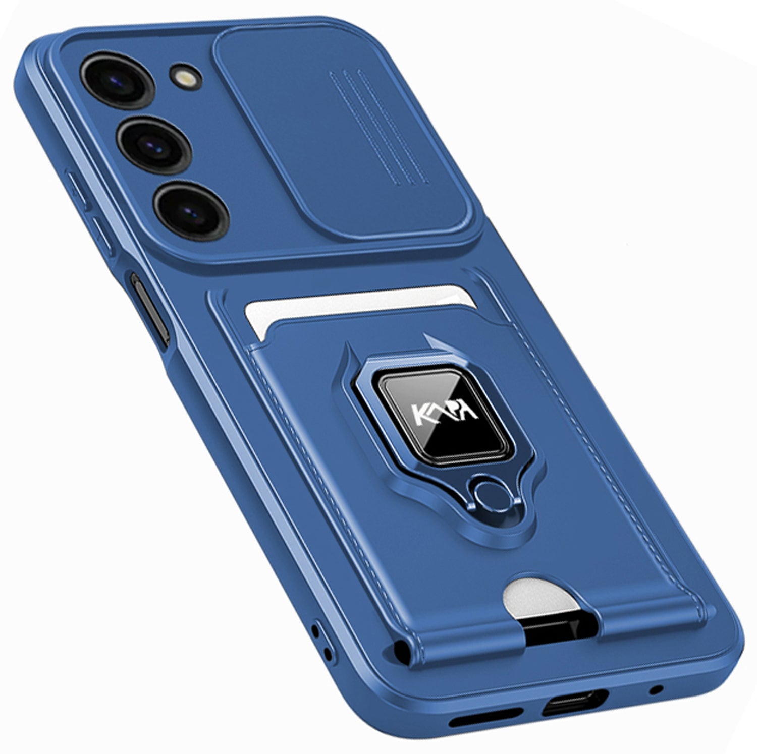 Mobizang Bisen Back Cover for Samsung Galaxy S23 Plus | Inbuilt Camera Slider Ring Stand and Card Pocket Shockproof Slim Bumper Back Case (Blue)