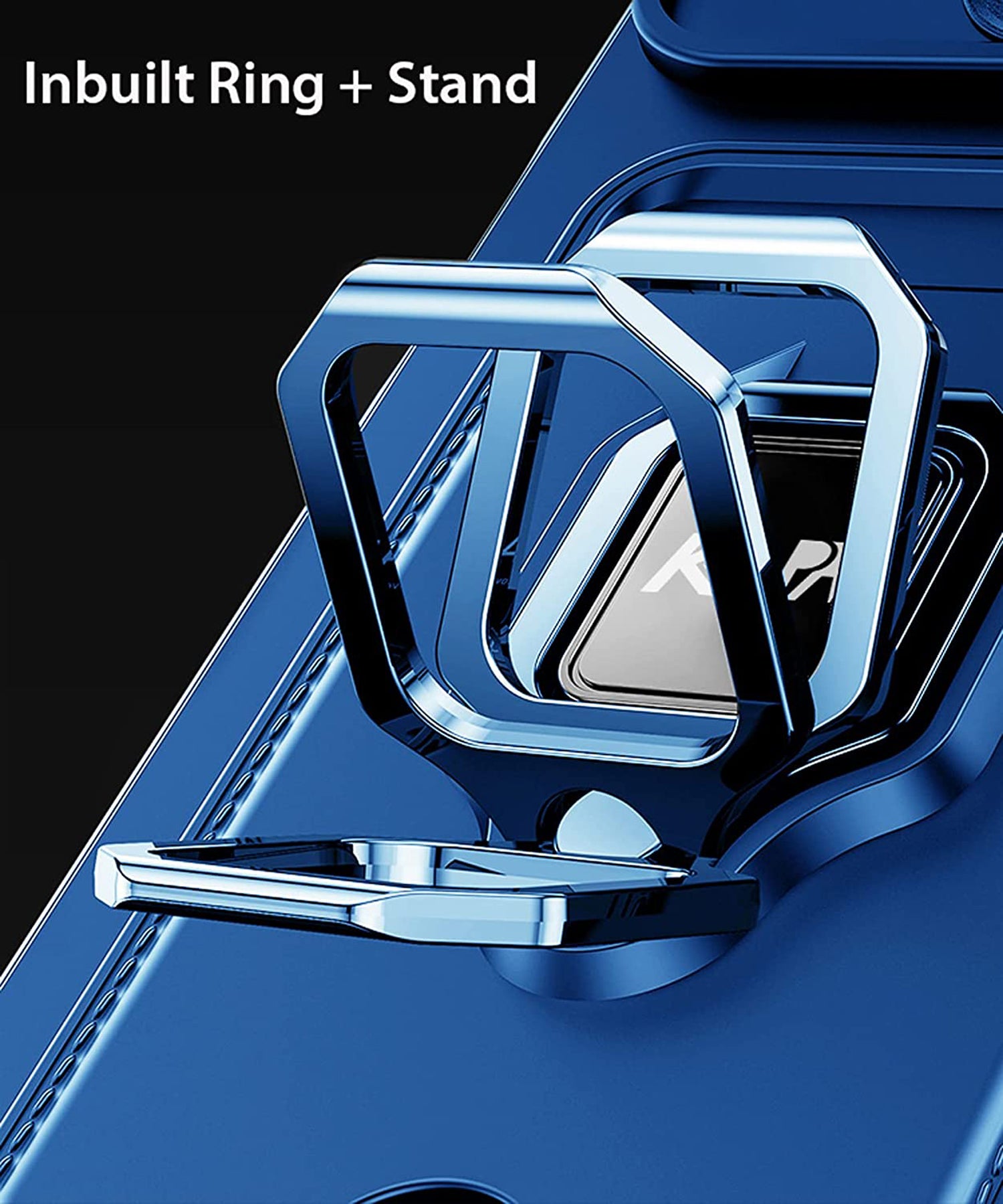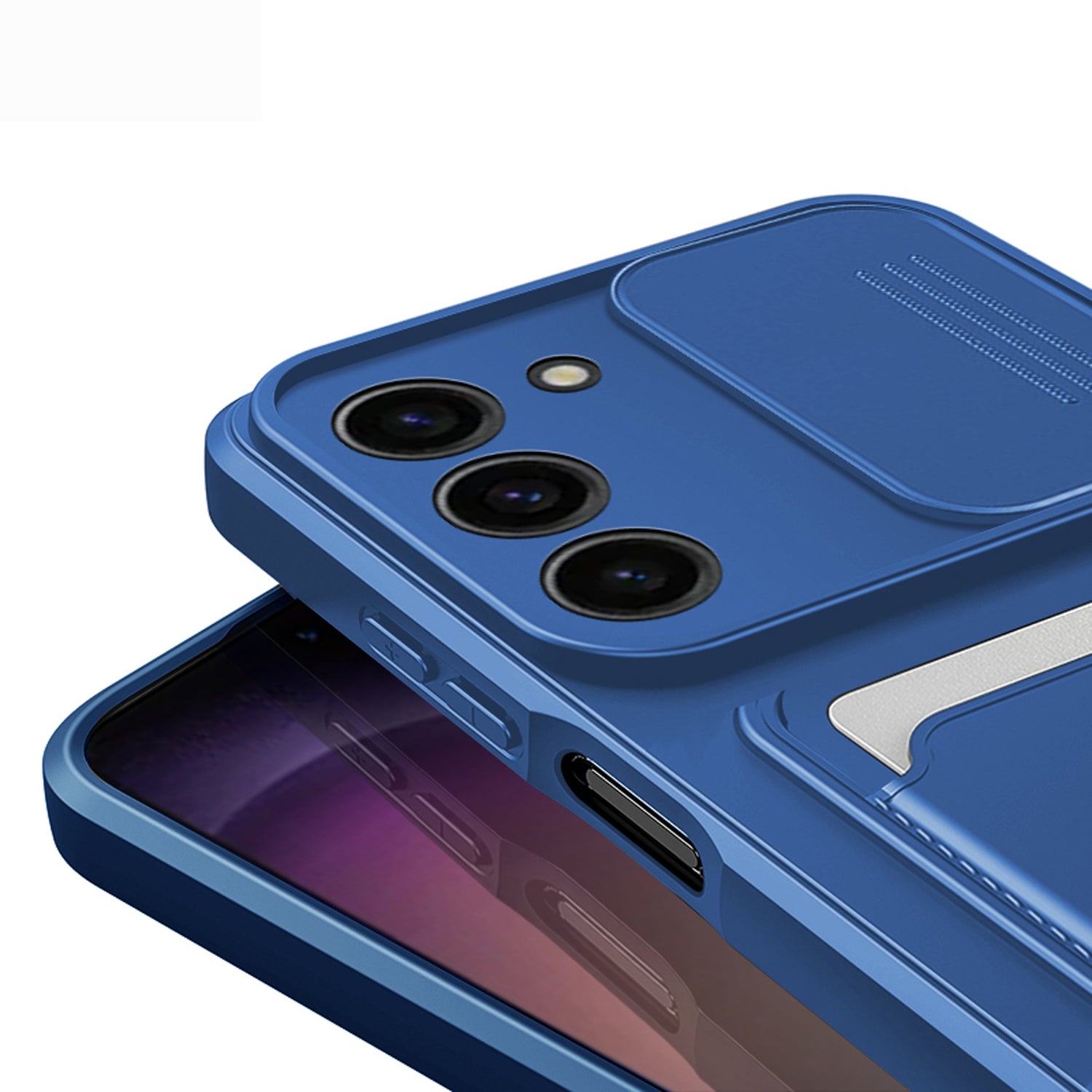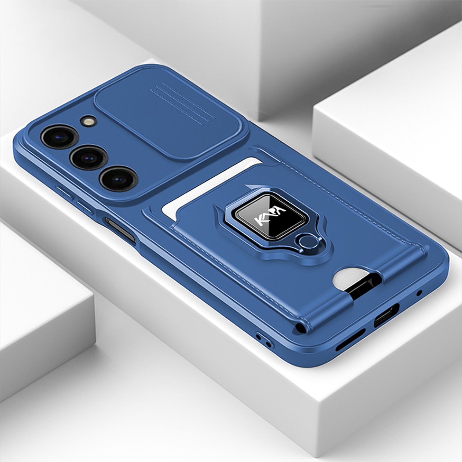 Mobizang Bisen Back Cover for Samsung Galaxy S23 Plus | Inbuilt Camera Slider Ring Stand and Card Pocket Shockproof Slim Bumper Back Case (Blue)