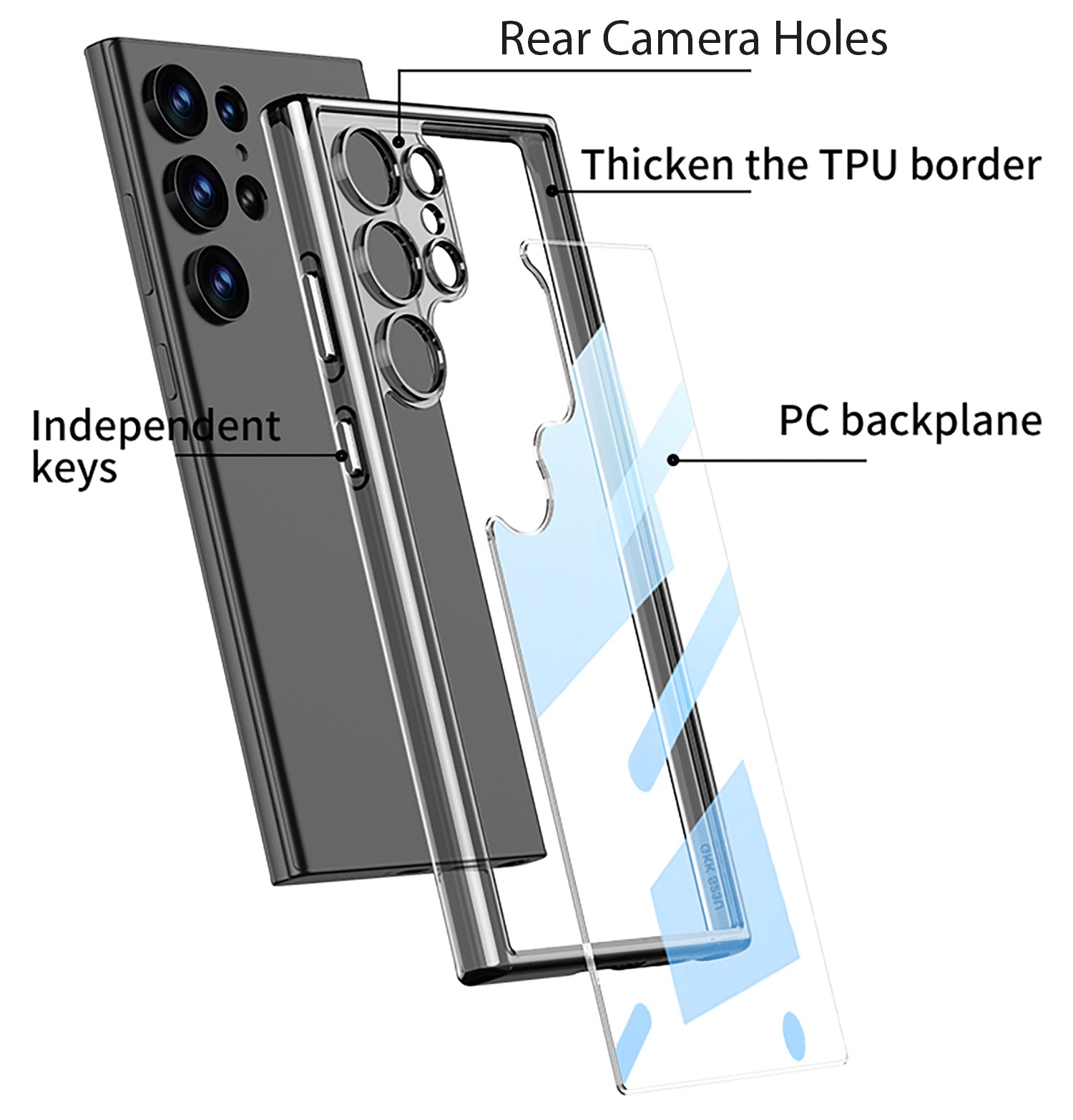 Mobizang Clear Airbag Back Case for Samsung Galaxy S25 Ultra | Transparent Shockproof Slim Hard PC Shell Protective Cover (Black)