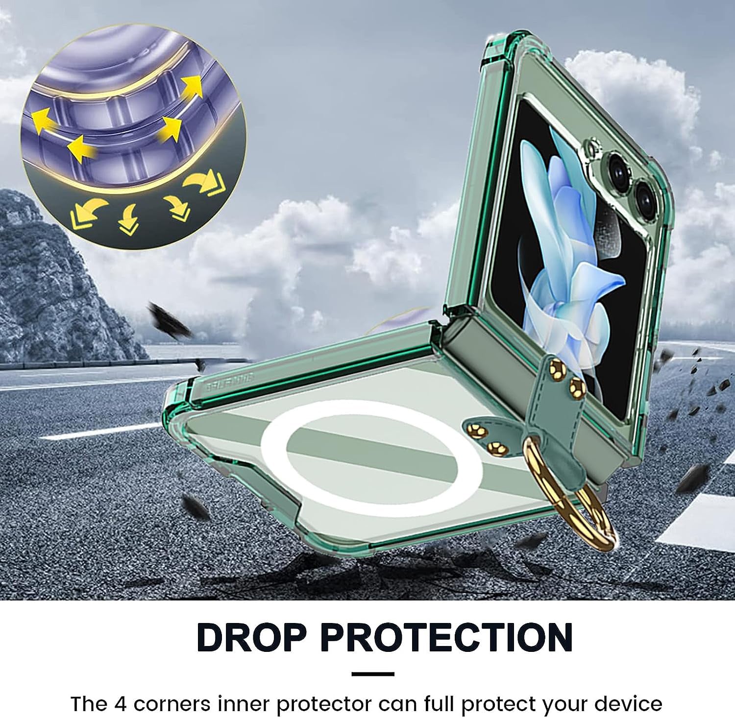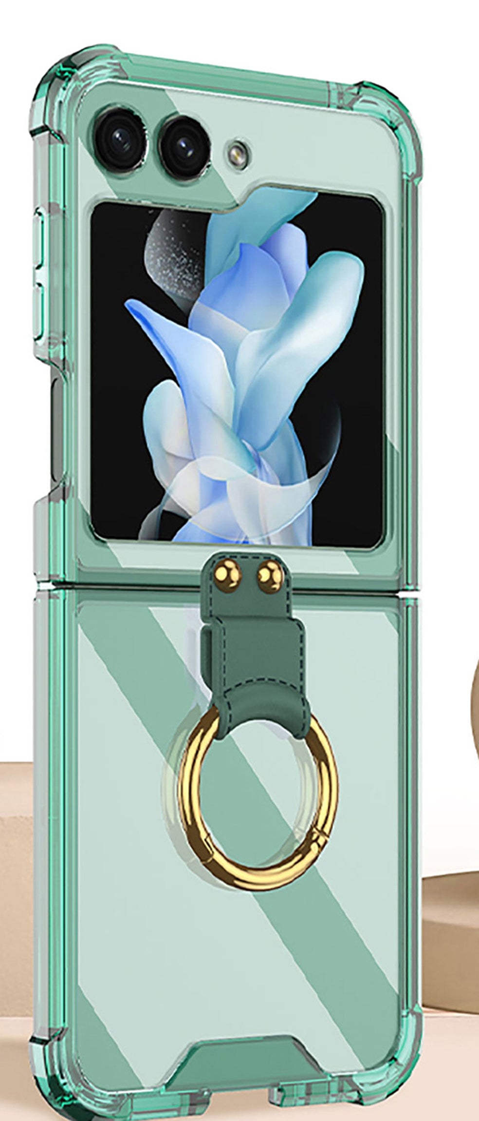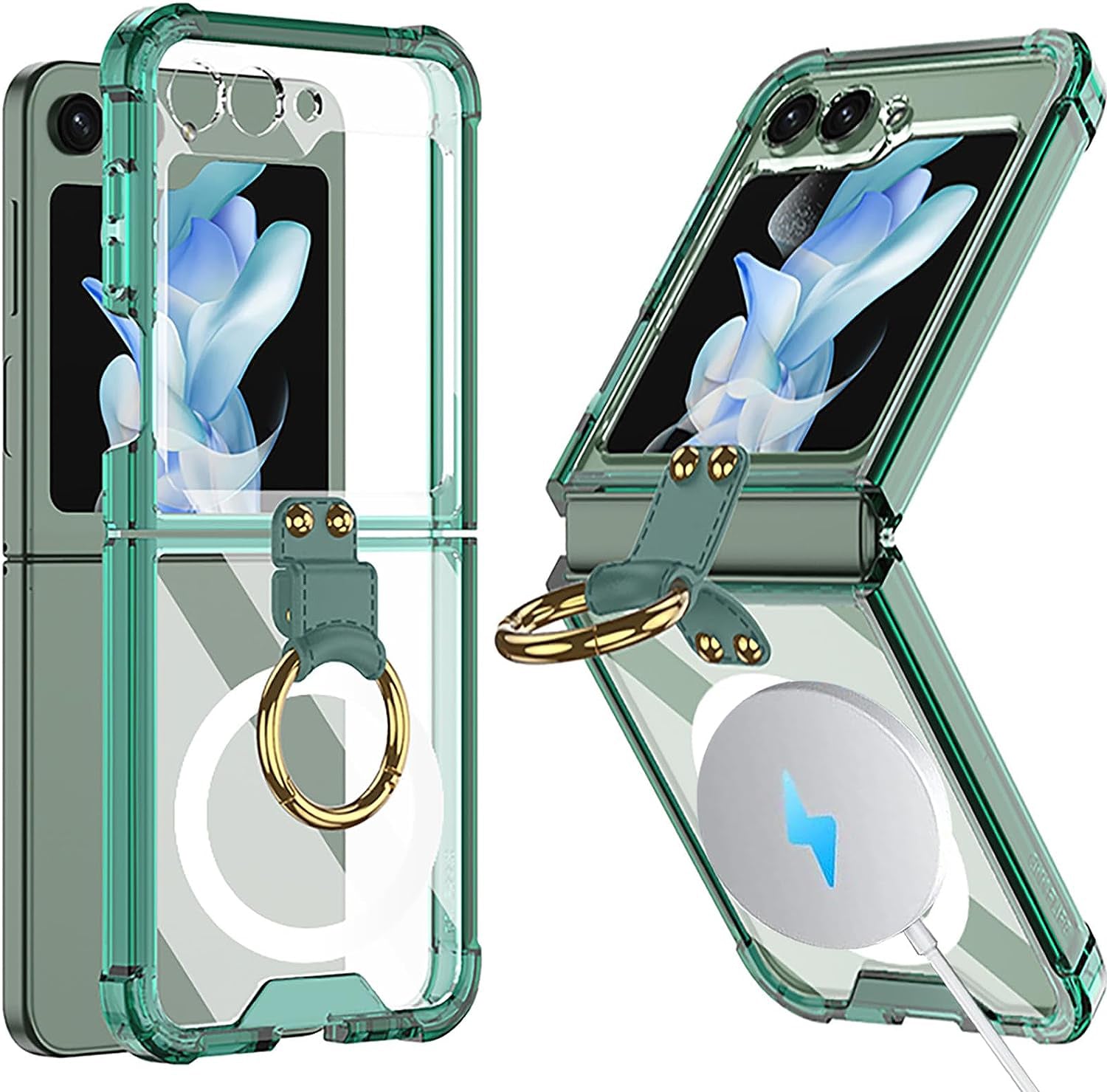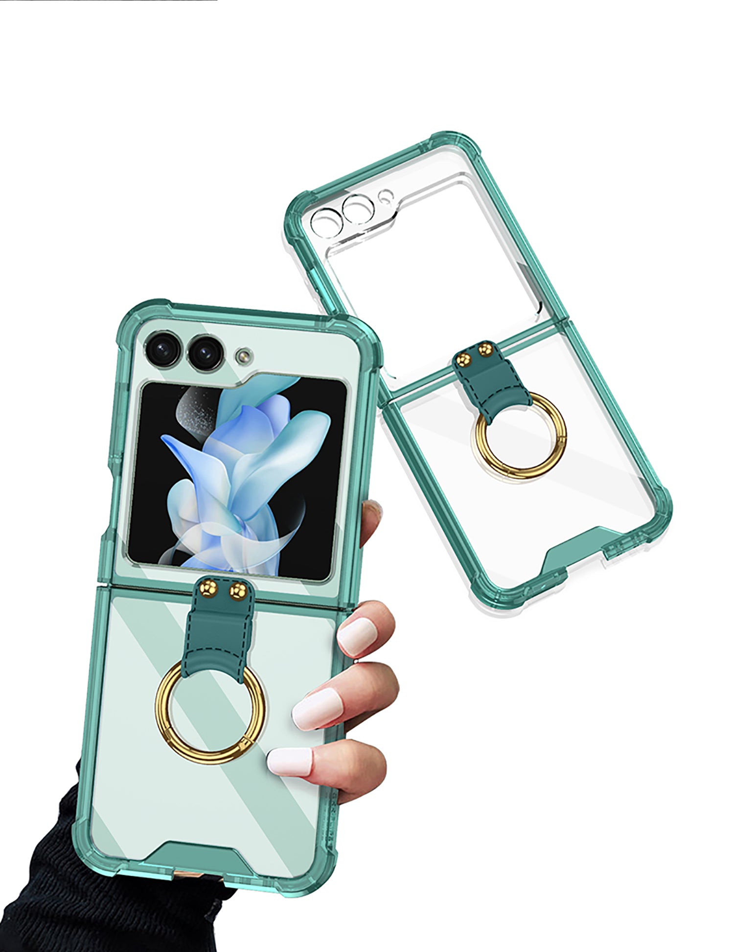 Mobizang Clear Airbag Ring Back Case for Samsung Galaxy Flip5 / Z Flip 5 ,Transparent Shockproof Slim Hard Protective Cover (Green)