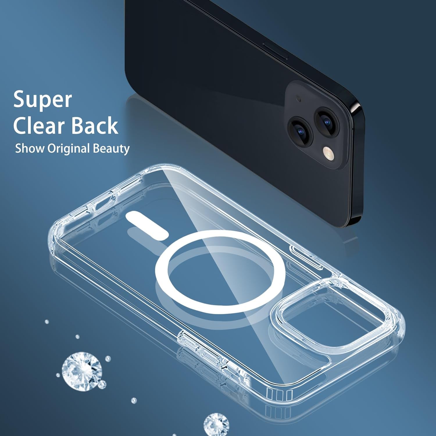 Mobizang Clear Magnetic Back Cover for Apple iPhone 15 , Compatible with MagSafe | [Military Grade Protection] Shock Proof Slim Hybrid Bumper Case