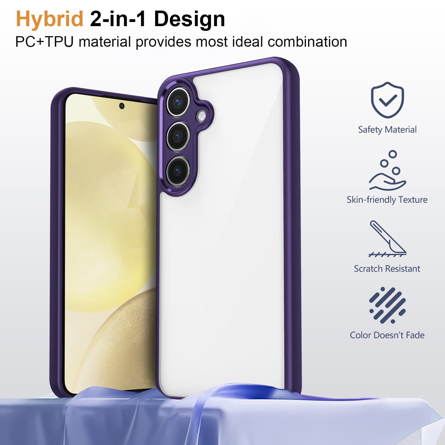 Mobizang Hawkeye Clear Back Cover for Samsung Galaxy A36 | Camera Lens Protector Shockproof Slim Clear Case Cover (Purple Sides)