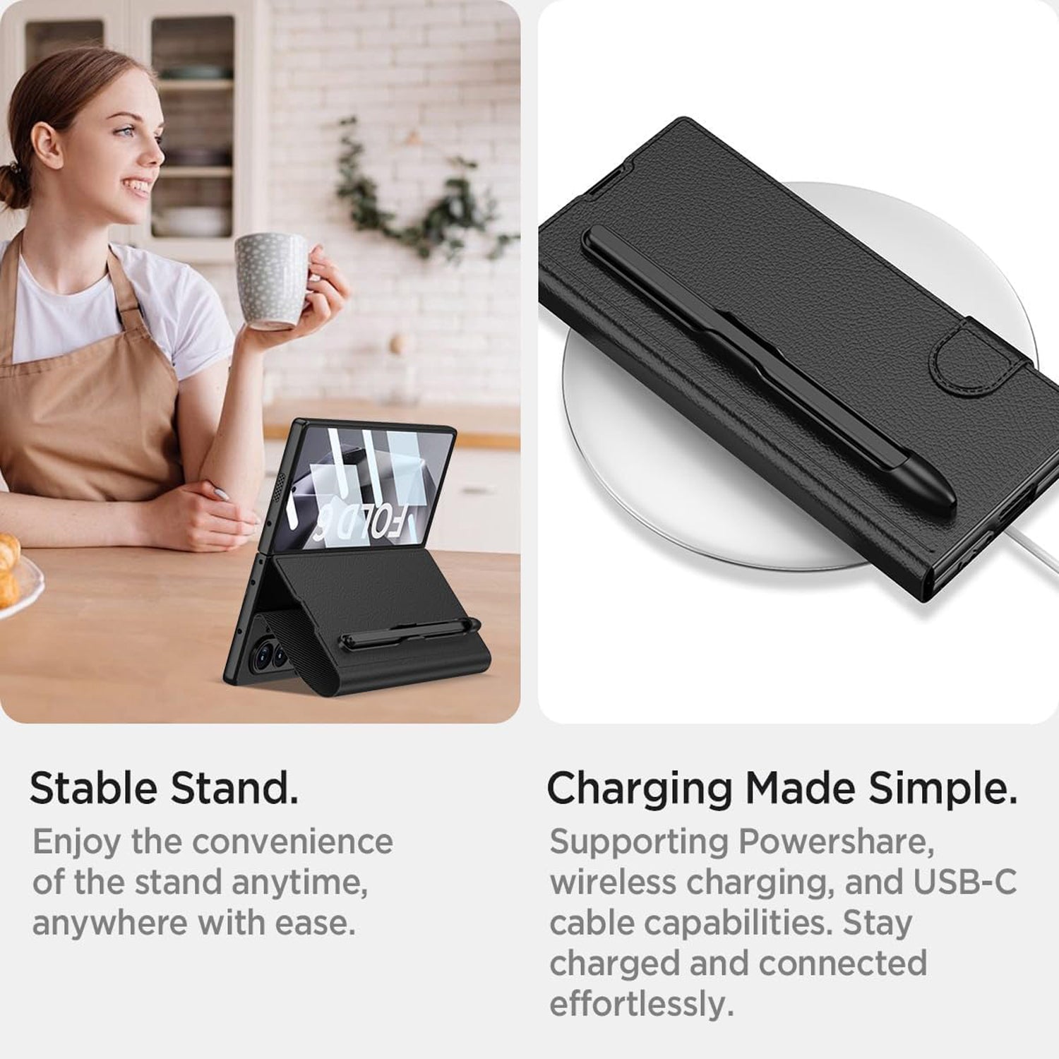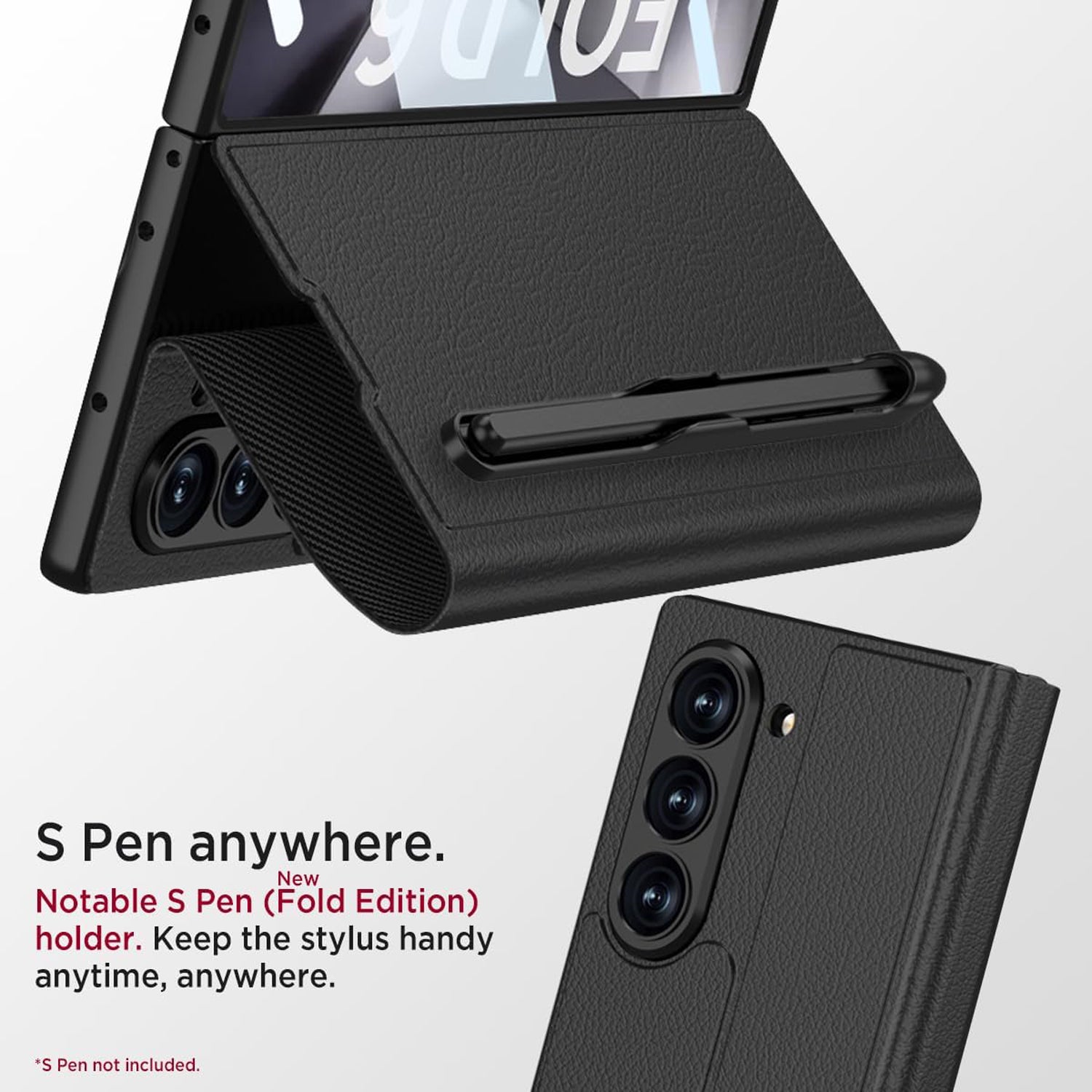 Mobizang Leather Flip Case for Samsung Galaxy Z Fold 6 | Inbuilt Fixed S Pen Holder, Slim Hybrid Stand Protection Flip Cover (Black)