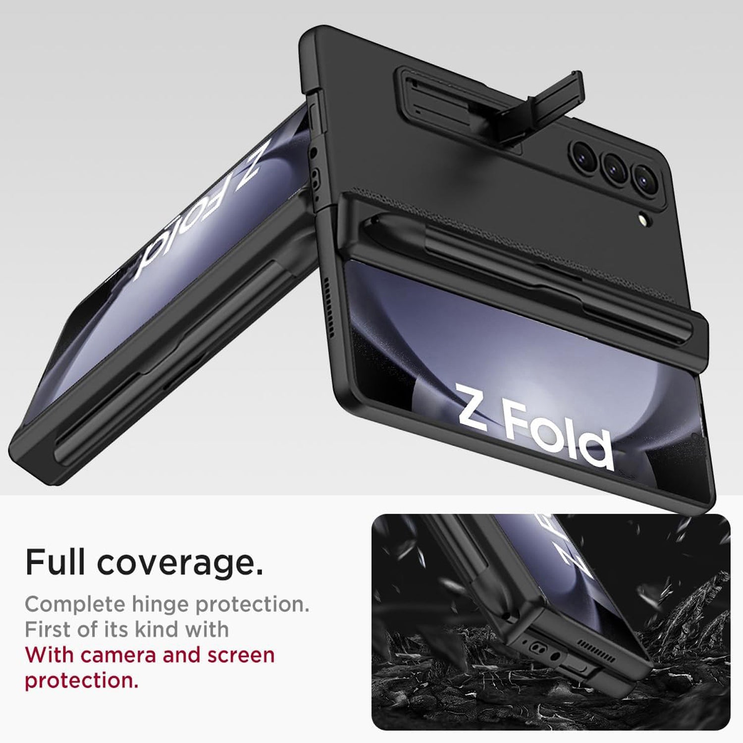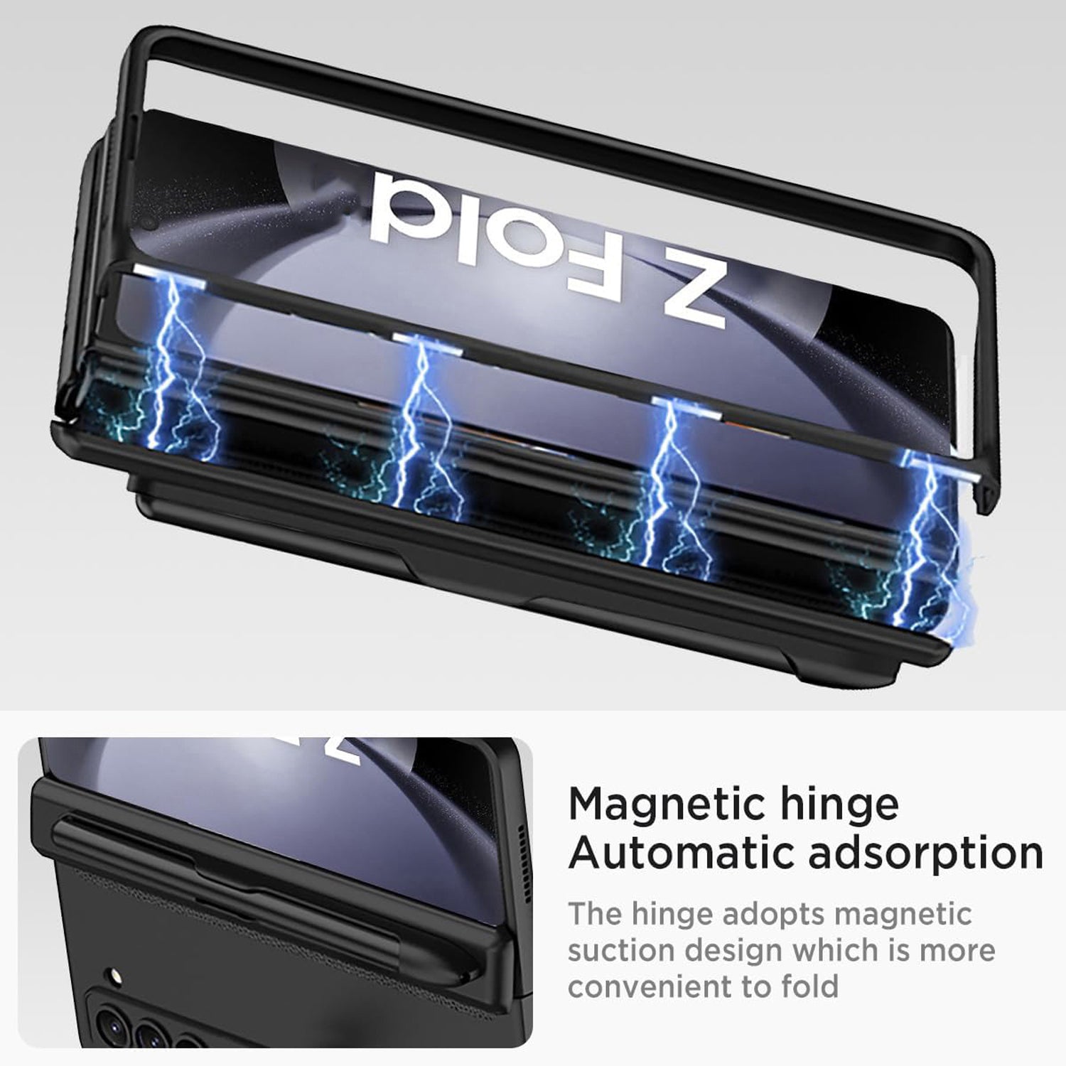**✅【Magnetic Hinge & S Pen Holder】This z fold6 case offers 360° full hinge protection, the hinge and the front cover each have 4 built-in magnets that can be attached together to prevent the hinge from opening when using the front screen. The outside of the hinge contains a pen slot, making it easy to carry the S Pen Fold Edition with you to avoid losing and scratching it. (Only Fits Galaxy Z Fold6 Slim S-pen )