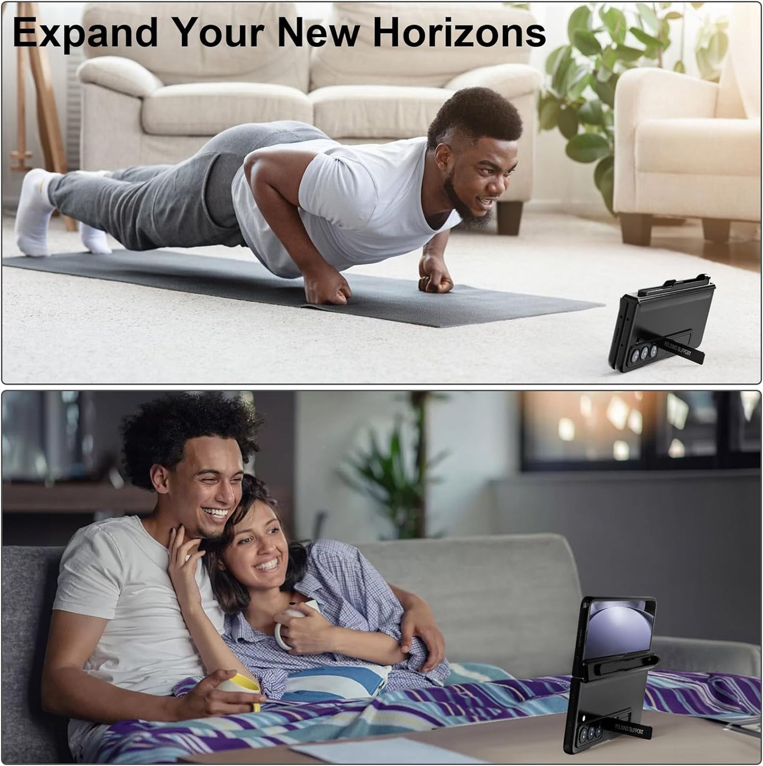 **✅【Adjustable Kickstand】This phone case has a built-in stand that can be adjusted to 3 different angles. You can place your smartphone on desktop and watch videos at a comfortable angle, freeing your hands.