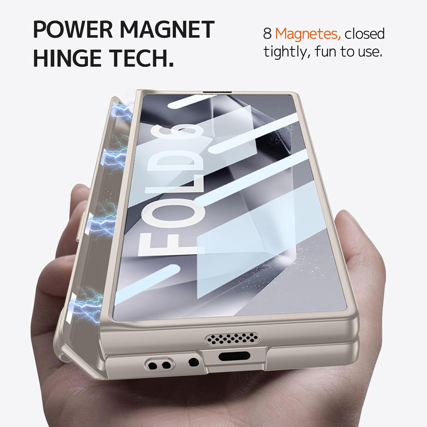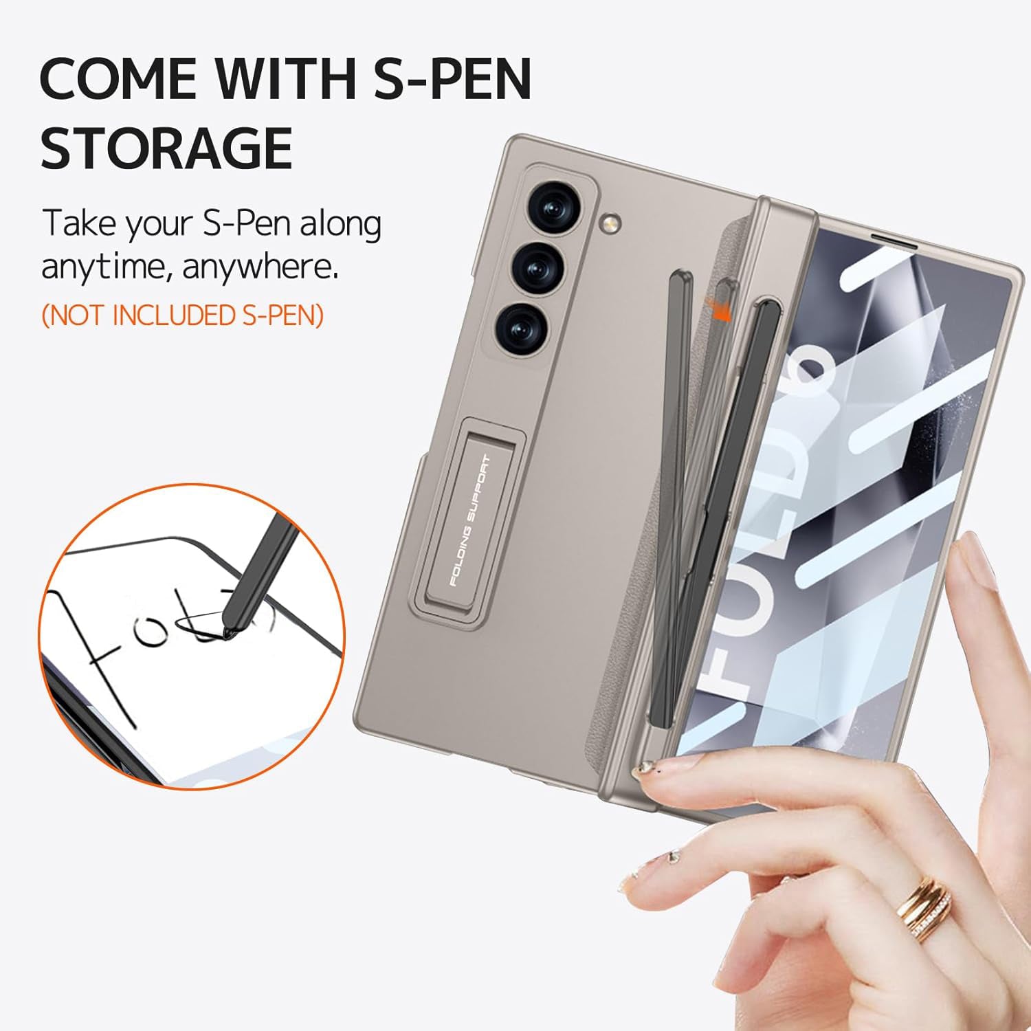 **✅【Magnetic Hinge & S Pen Holder】This z fold6 case offers 360° full hinge protection, the hinge and the front cover each have 4 built-in magnets that can be attached together to prevent the hinge from opening when using the front screen. The outside of the hinge contains a pen slot, making it easy to carry the S Pen Fold Edition with you to avoid losing and scratching it. (Only Fits Galaxy Z Fold6 Slim S-pen )