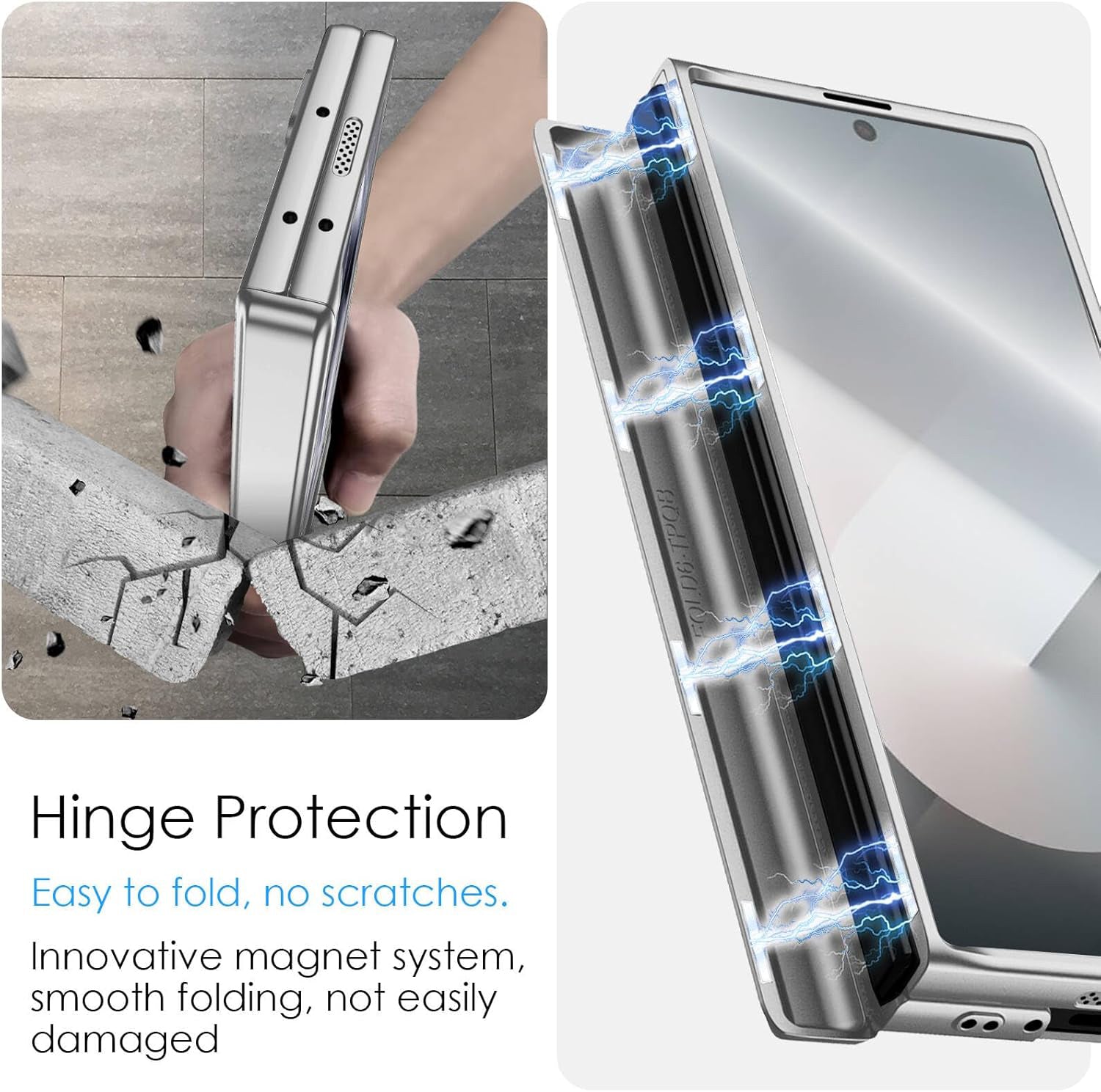 **✅【Magnetic Hinge Protection】This z fold6 case offers 360° full hinge protection, the hinge and the front cover each have 4 built-in magnets that can be attached together to prevent the hinge from opening when using the front screen.