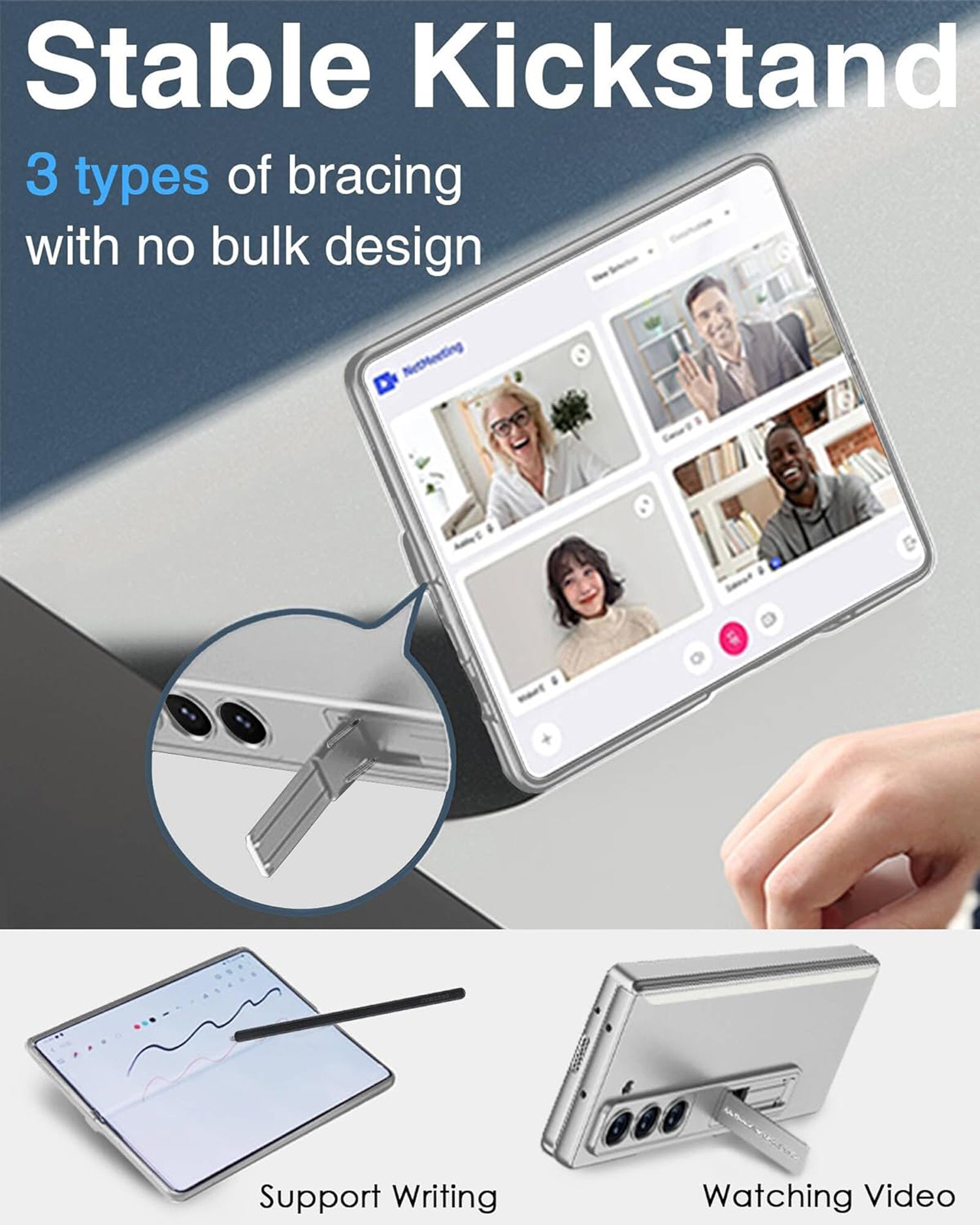 **✅【Adjustable Kickstand】This phone case has a built-in stand that can be adjusted to 3 different angles. You can place your smartphone on desktop and watch videos at a comfortable angle, freeing your hands.