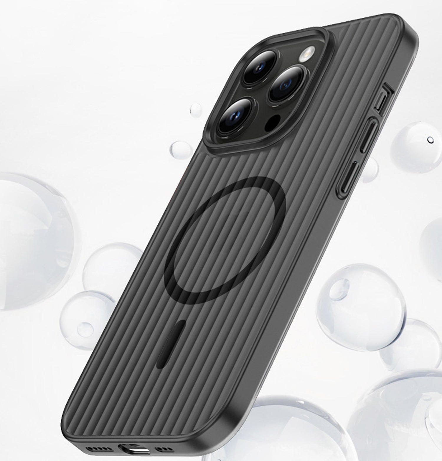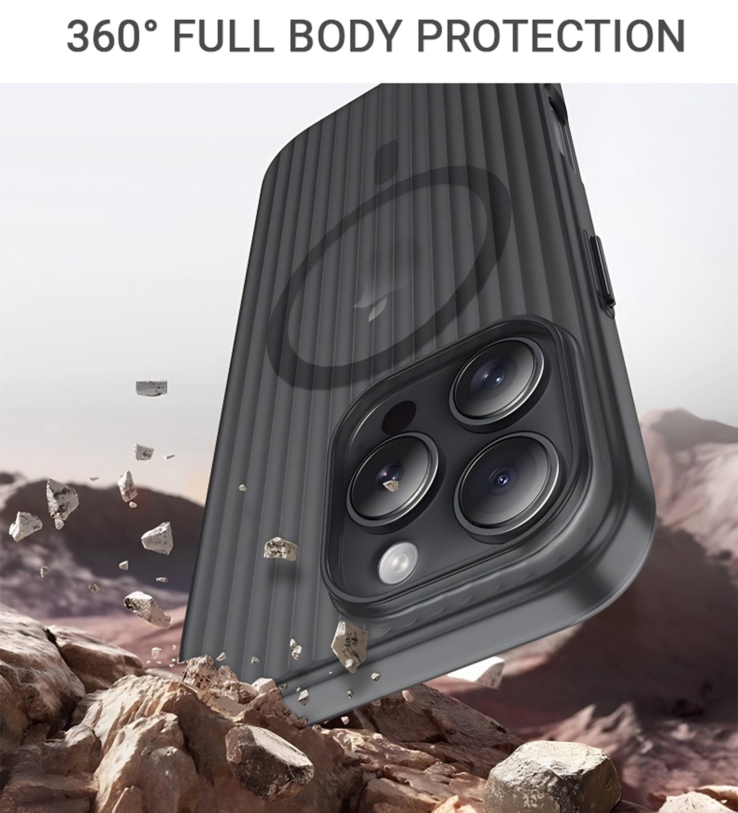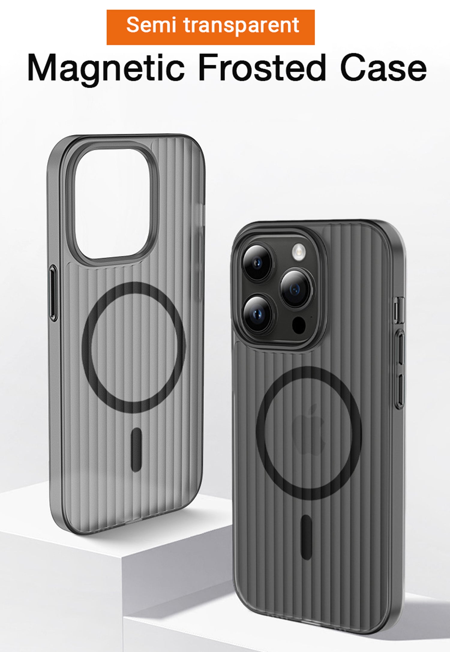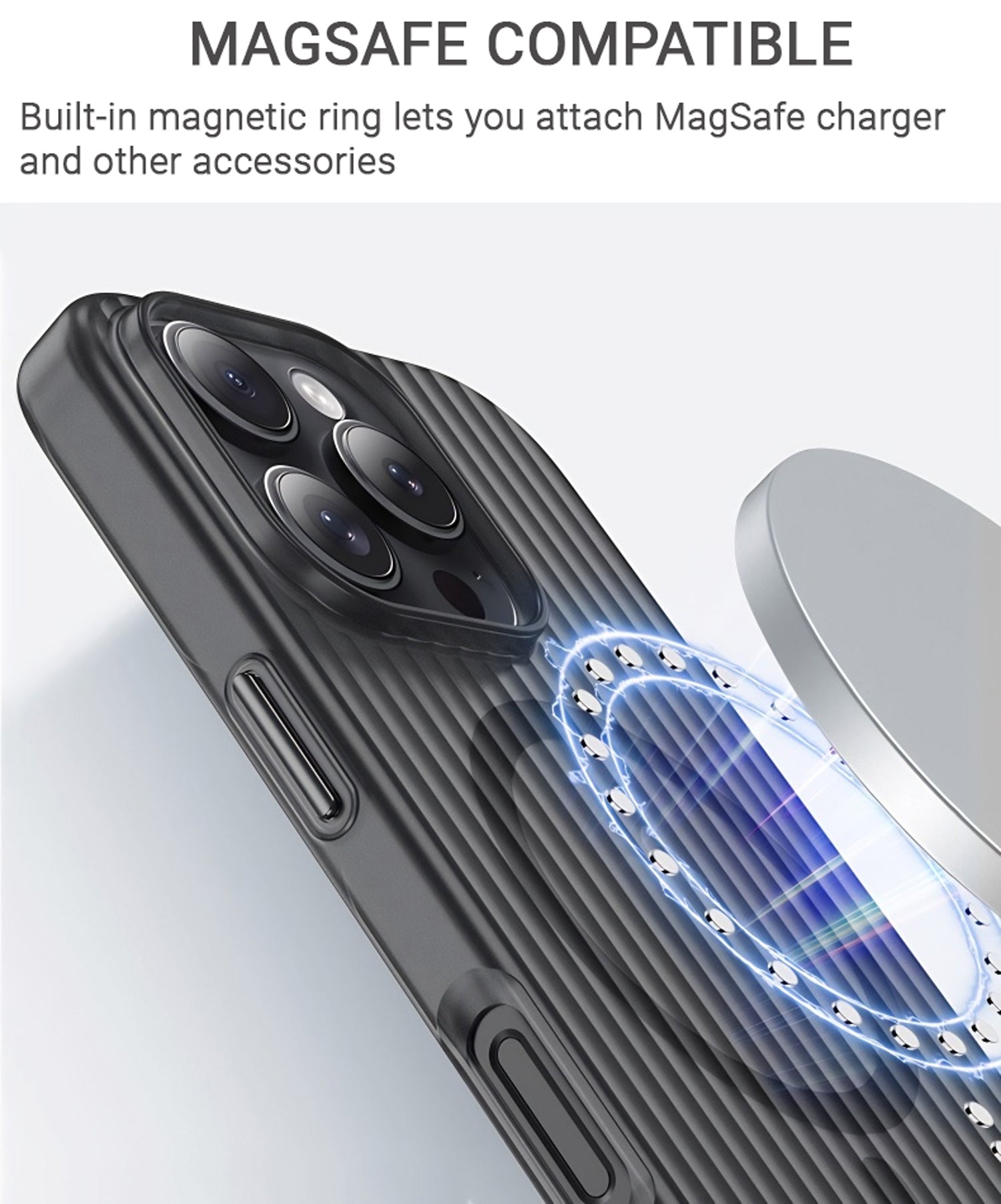 Mobizang Matte Magnetic Wave Grip Back Cover for Apple iPhone 16 Pro | [MagSafe Compatible] Wireless charging, Slim, Metal Buttons, Frosted Back Case (Grey)