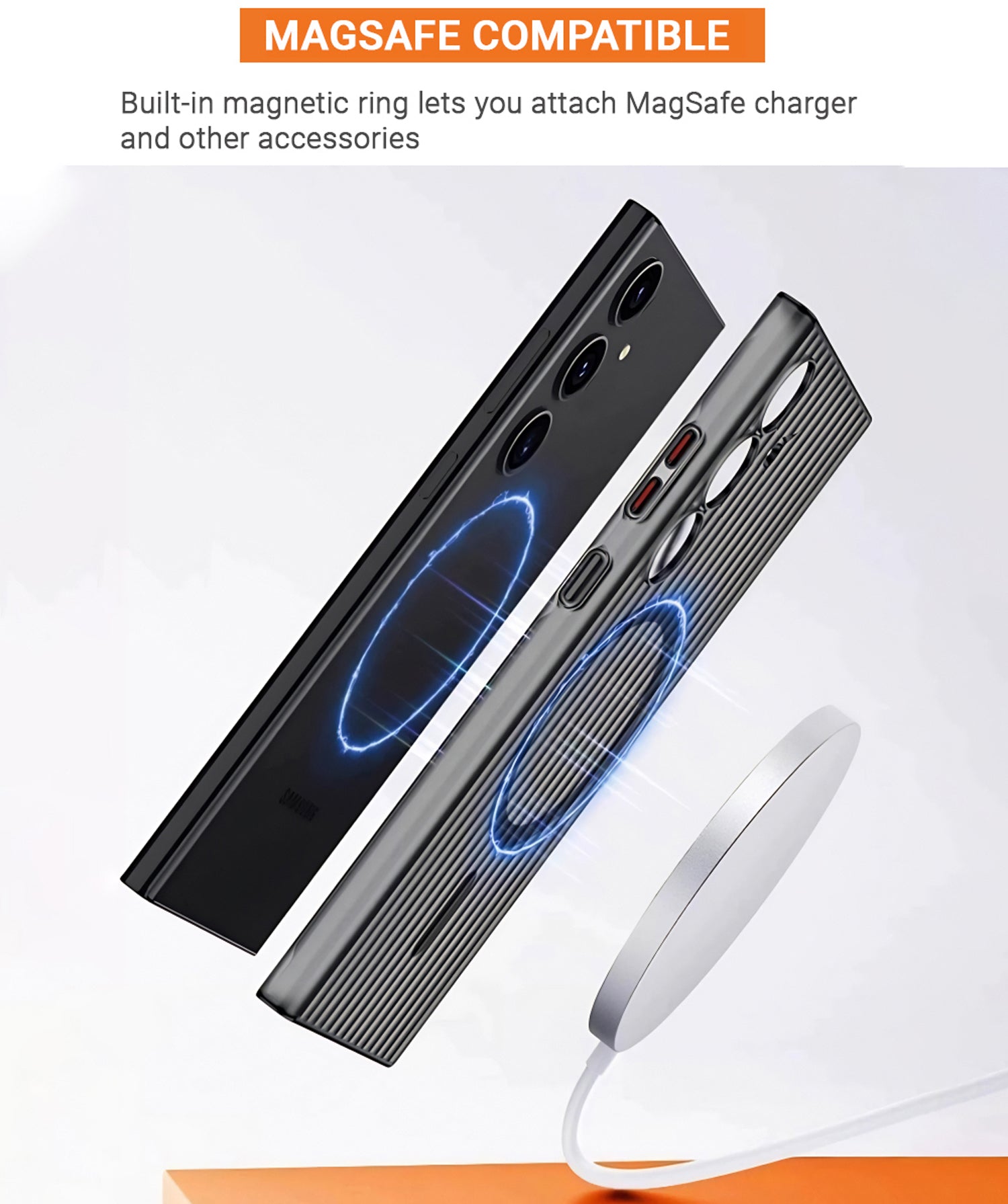 Mobizang Matte Magnetic Wave Grip Back Cover for Samsung Galaxy S24 Ultra | [MagSafe Compatible] Wireless charging, Slim, Metal Buttons, Frosted Back Case (Grey)