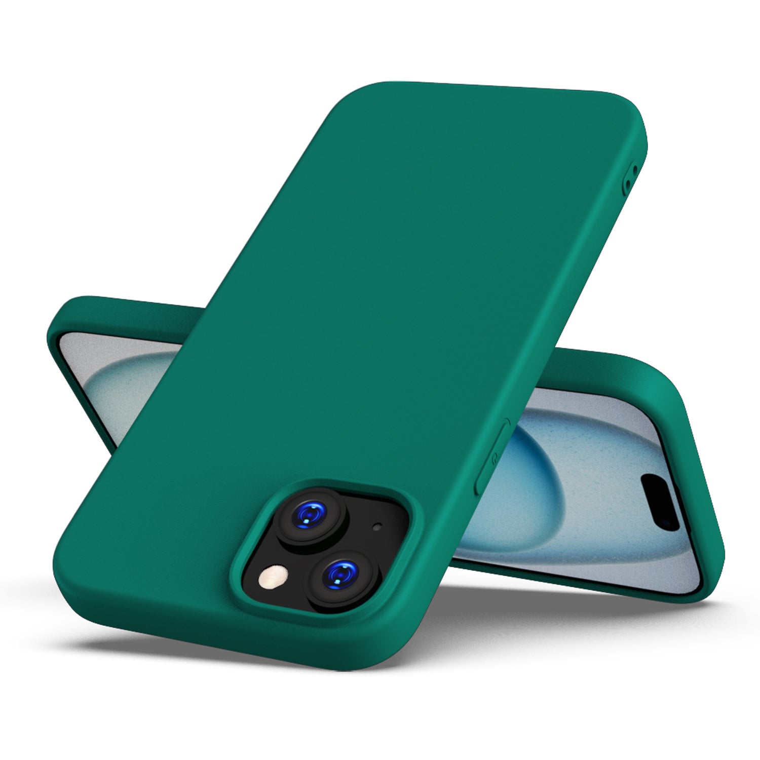 Mobizang Matte Protective Lens Flexible Back Cover for Apple iPhone 15 Plus | Slim Silicone with Soft Lining Shockproof Full Body Bumper Case (Green)