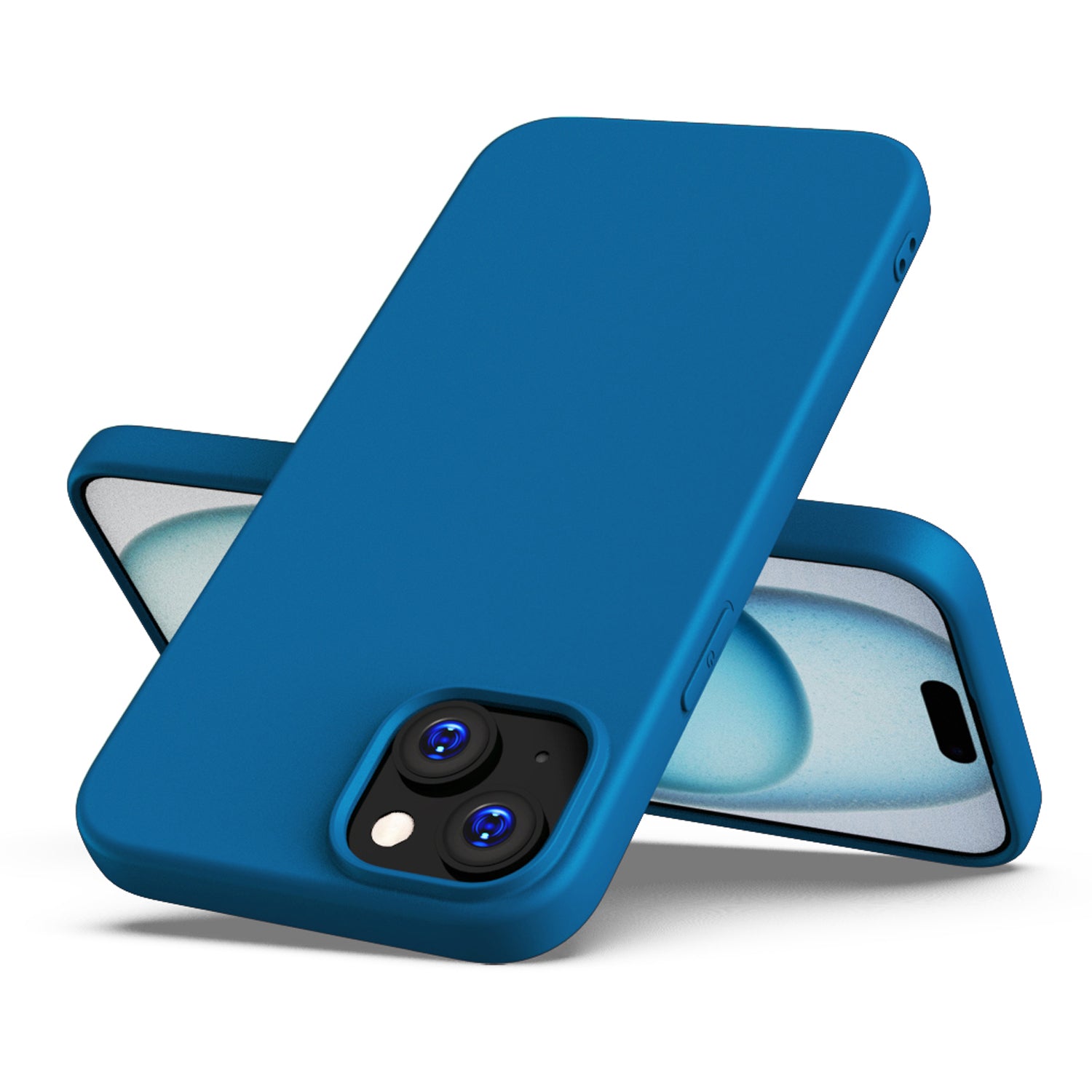 Mobizang Matte Protective Lens Flexible Back Cover for Apple iPhone 15 | Slim Silicone with Soft Lining Shockproof Full Body Bumper Case (Blue)