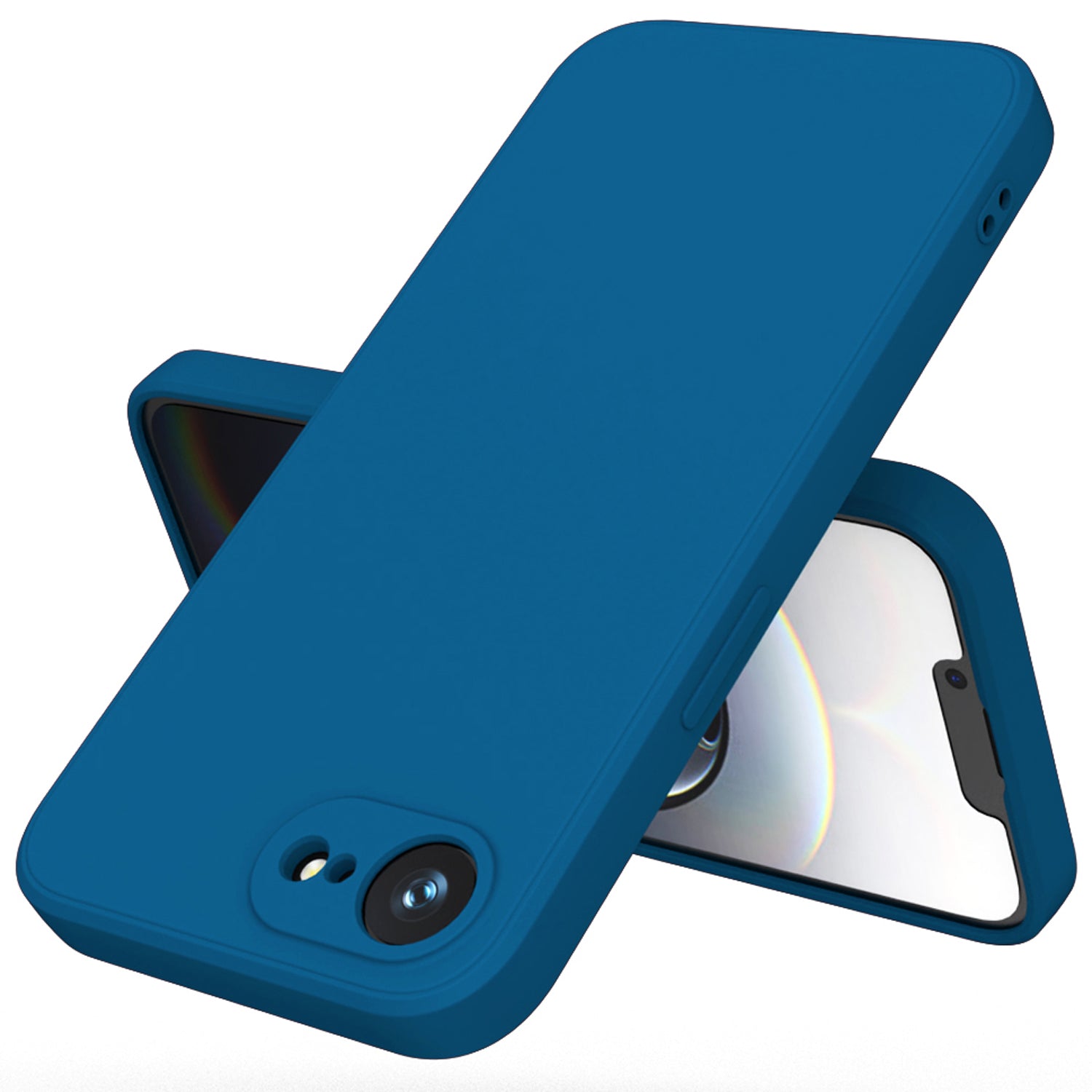 Mobizang Matte Protective Lens Flexible Back Cover for Apple iPhone 16E | Slim Silicone with Soft Lining Shockproof Full Body Bumper Case (Blue)