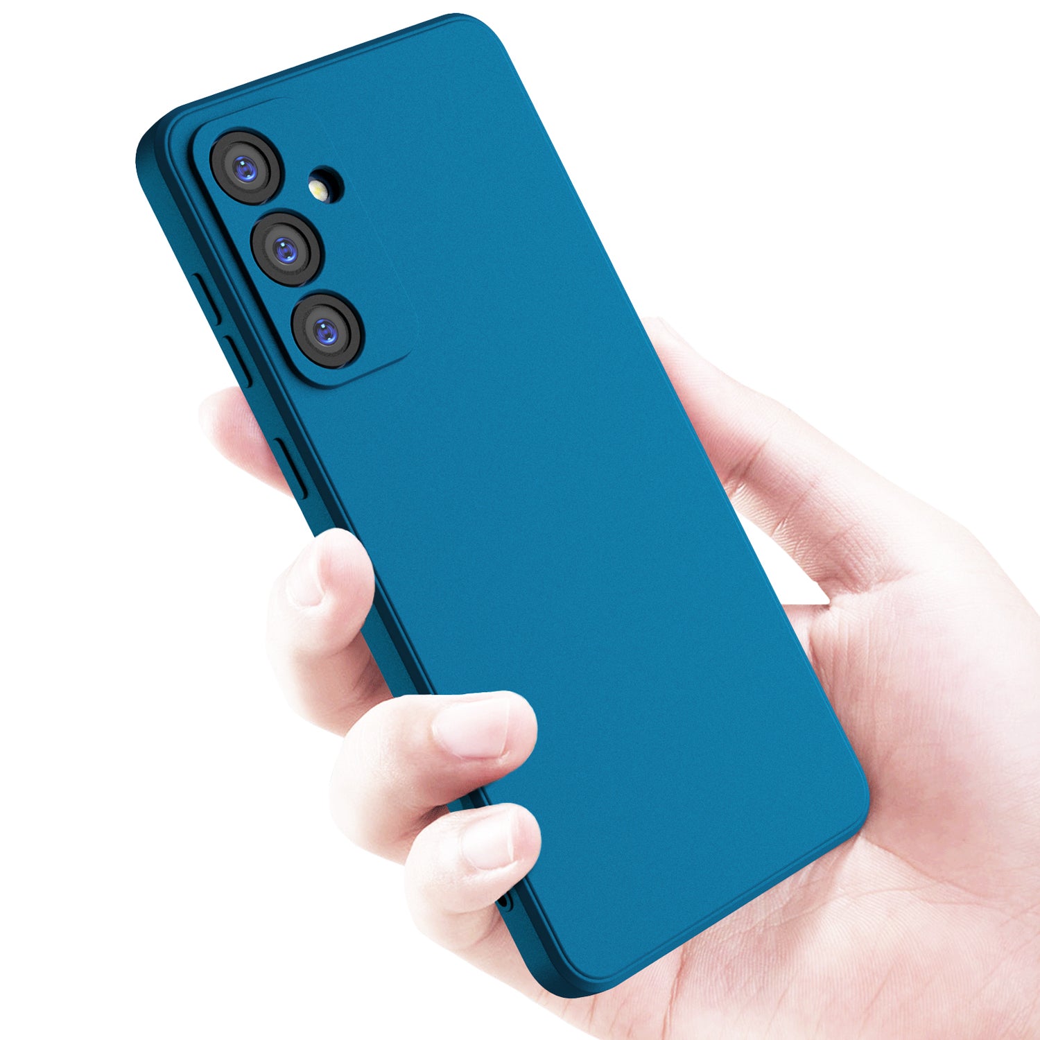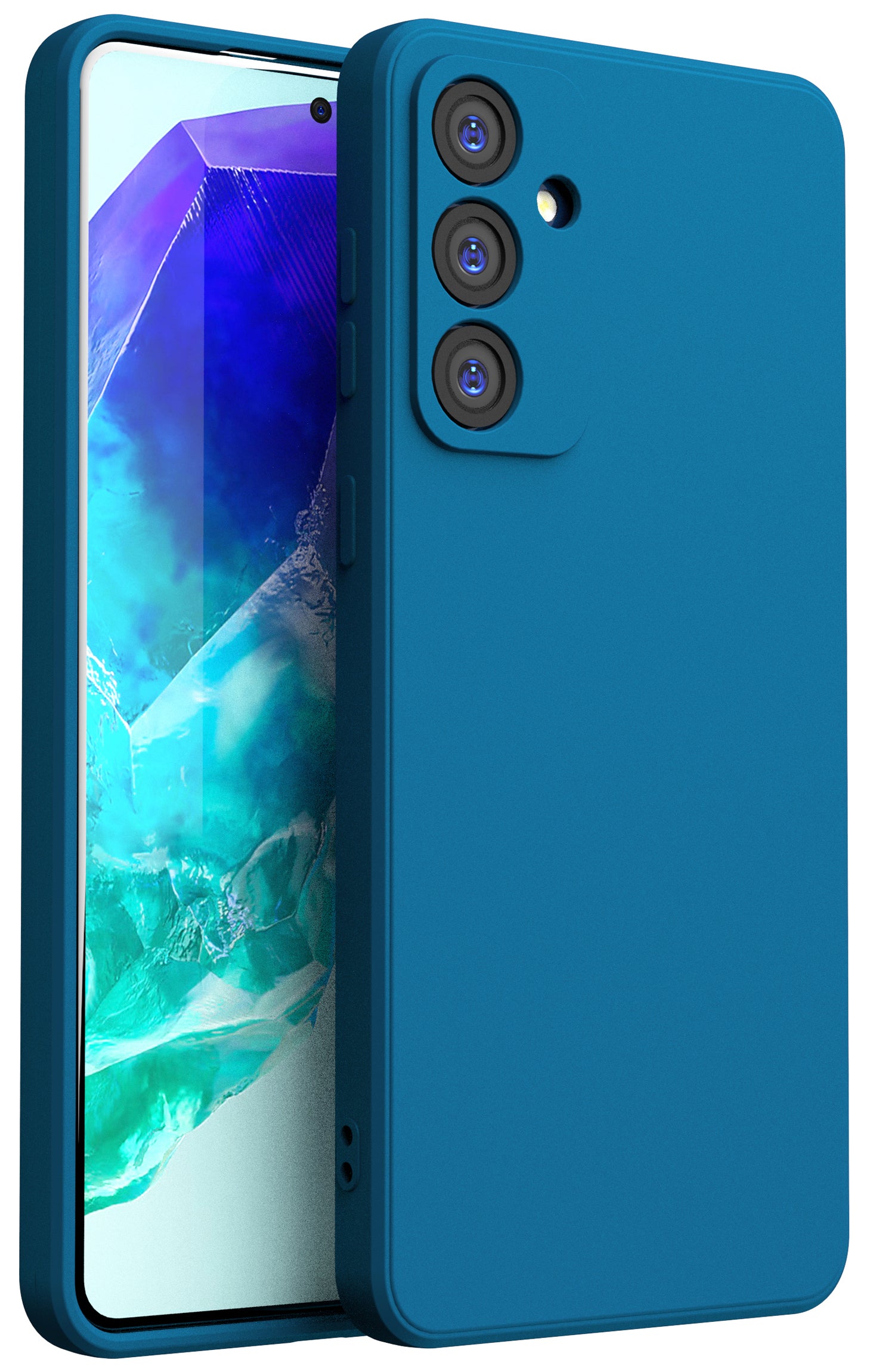 Mobizang Matte Protective Lens Flexible Back Cover for Samsung Galaxy M55 / F55 | Slim Silicone with Soft Lining Shockproof Full Body Bumper Case (Blue)