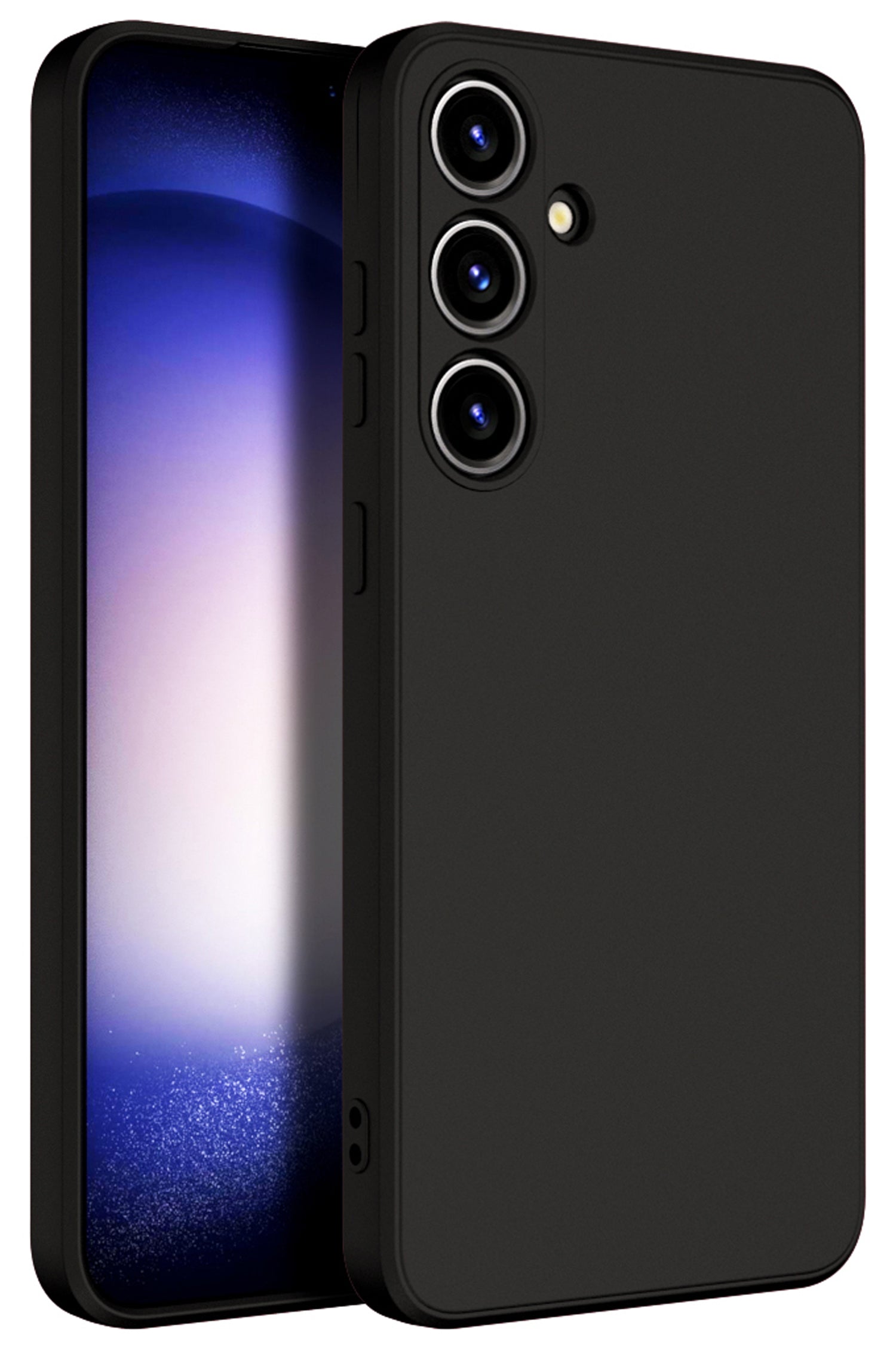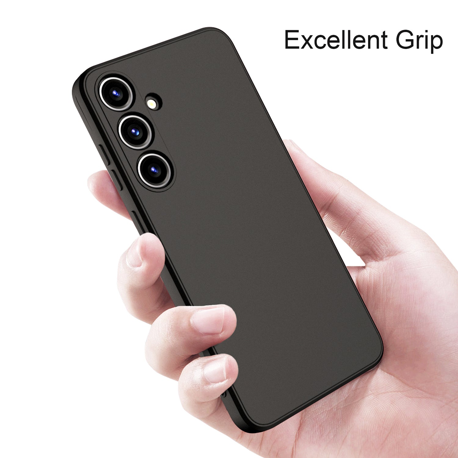 Mobizang Matte Protective Lens Flexible Back Cover for Samsung Galaxy S24 Plus | Slim Silicone with Soft Lining Shockproof Full Body Bumper Case (Black)