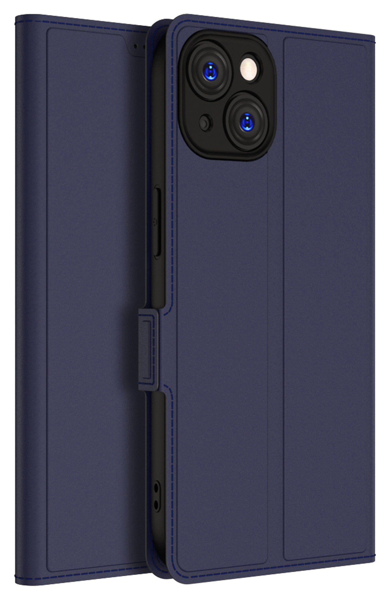 Mobizang Noble Slim Magnetic Leather Flip Case Cover for Apple iPhone 15 PLUS | Card Holder Stand Leather Flip Wallet Case (Blue)
