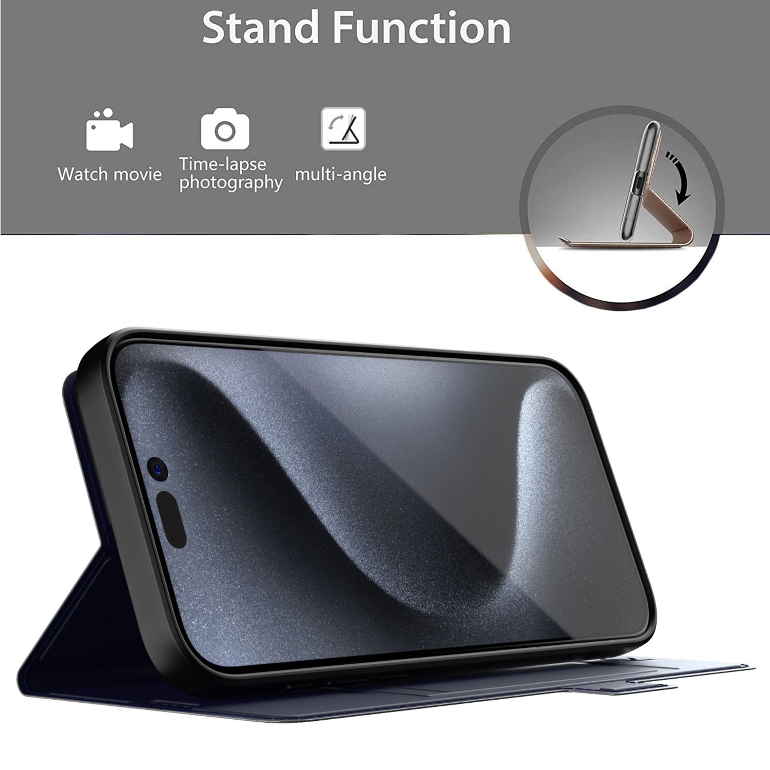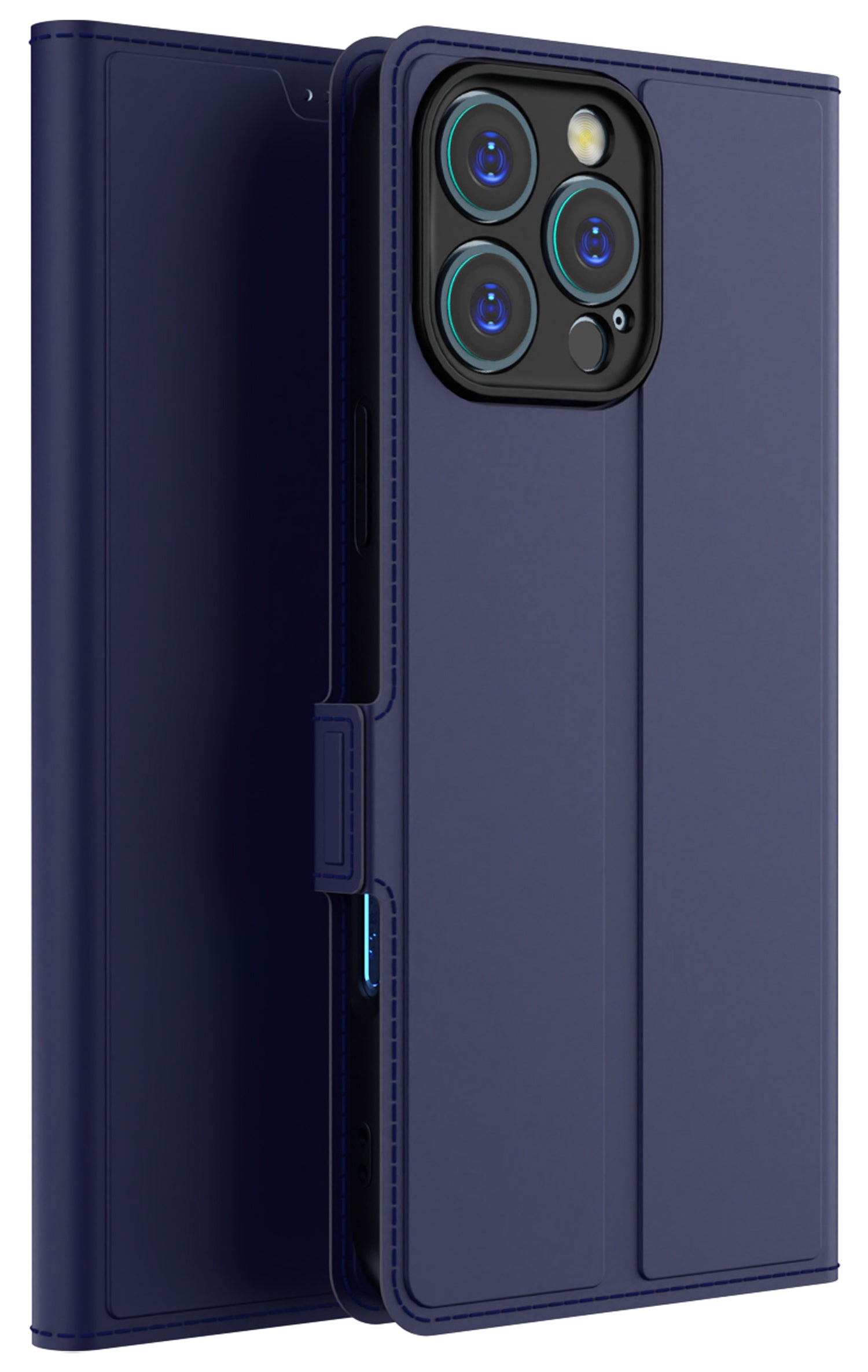 Mobizang Noble Slim Magnetic Leather Flip Case Cover for Apple iPhone 16 Pro Max | Card Holder Stand Flip Wallet Case (Blue)