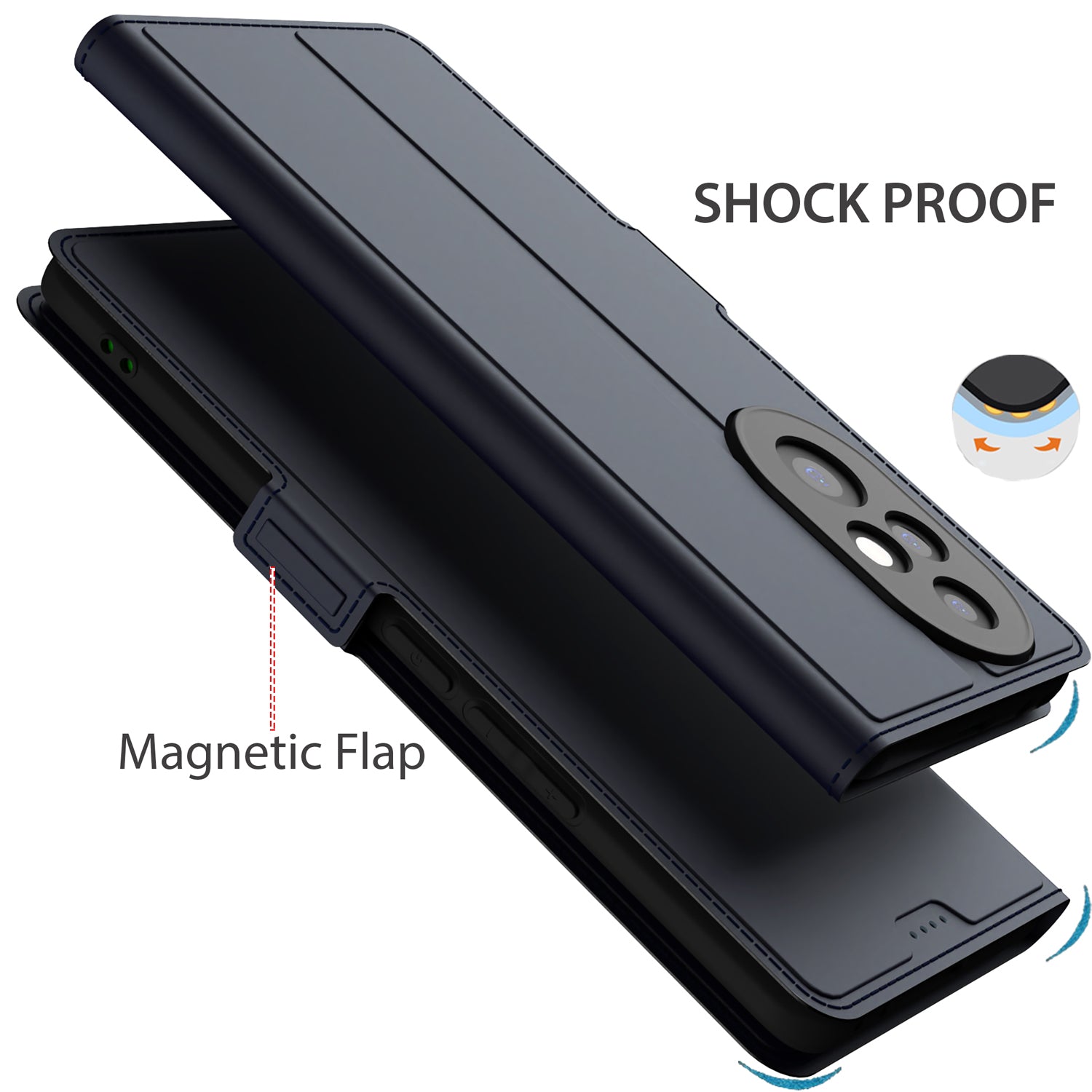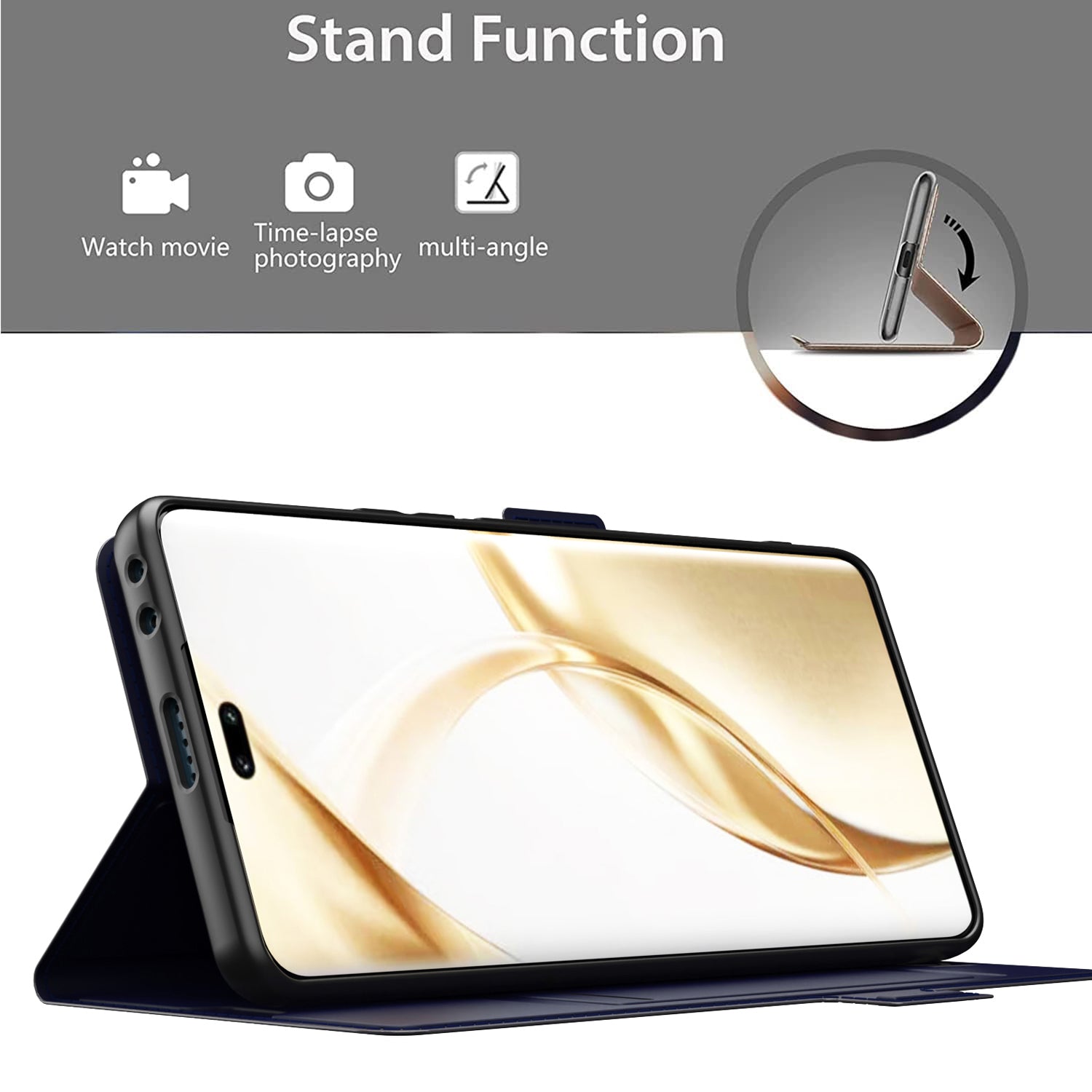Mobizang Noble Slim Magnetic Leather Flip Case Cover for Honor 200 Pro (5G) | Card Holder Stand Flip Wallet Case (Blue)