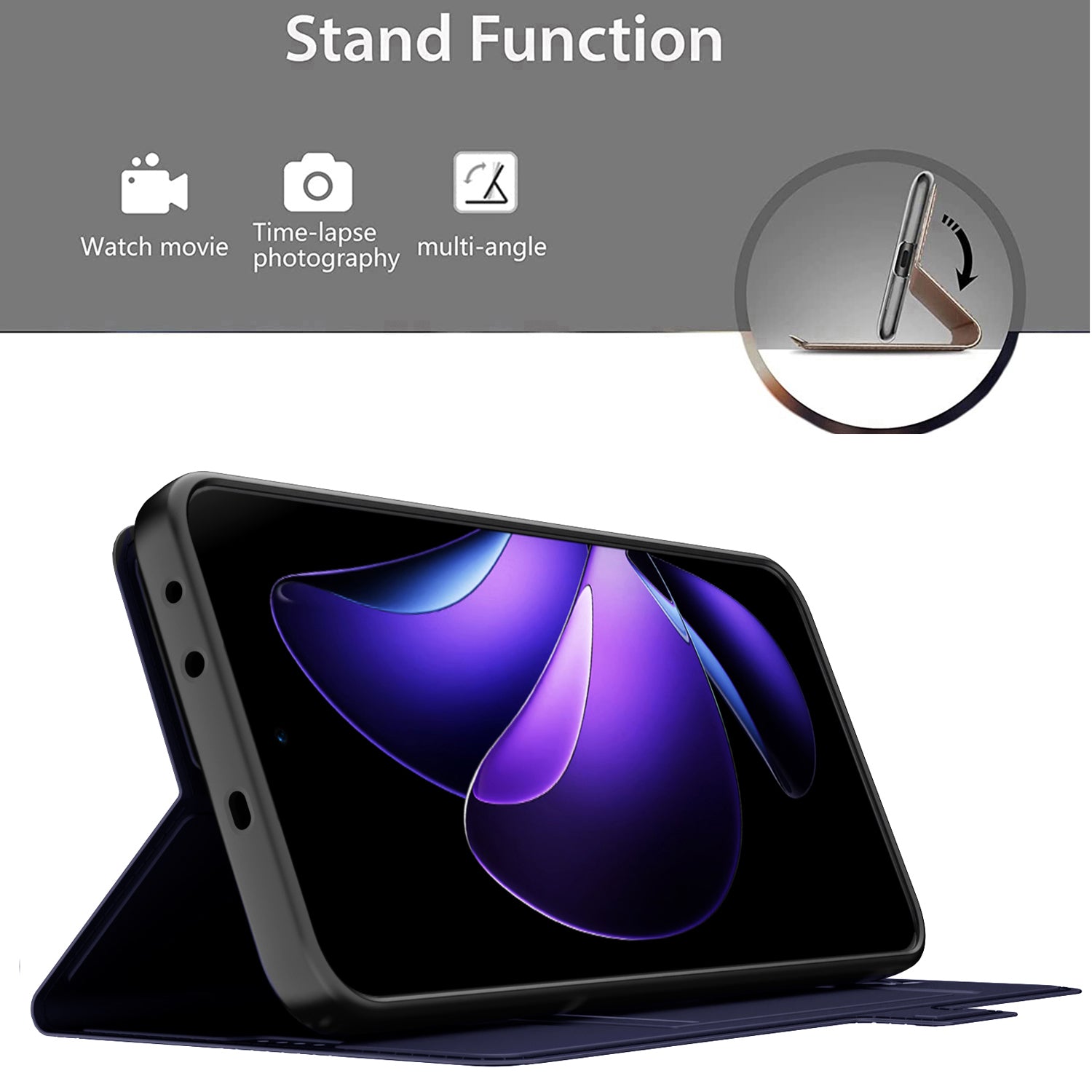 Mobizang Noble Slim Magnetic Leather Flip Case Cover for Oppo Reno 13 Pro | Card Holder Stand Flip Wallet Case (Blue)