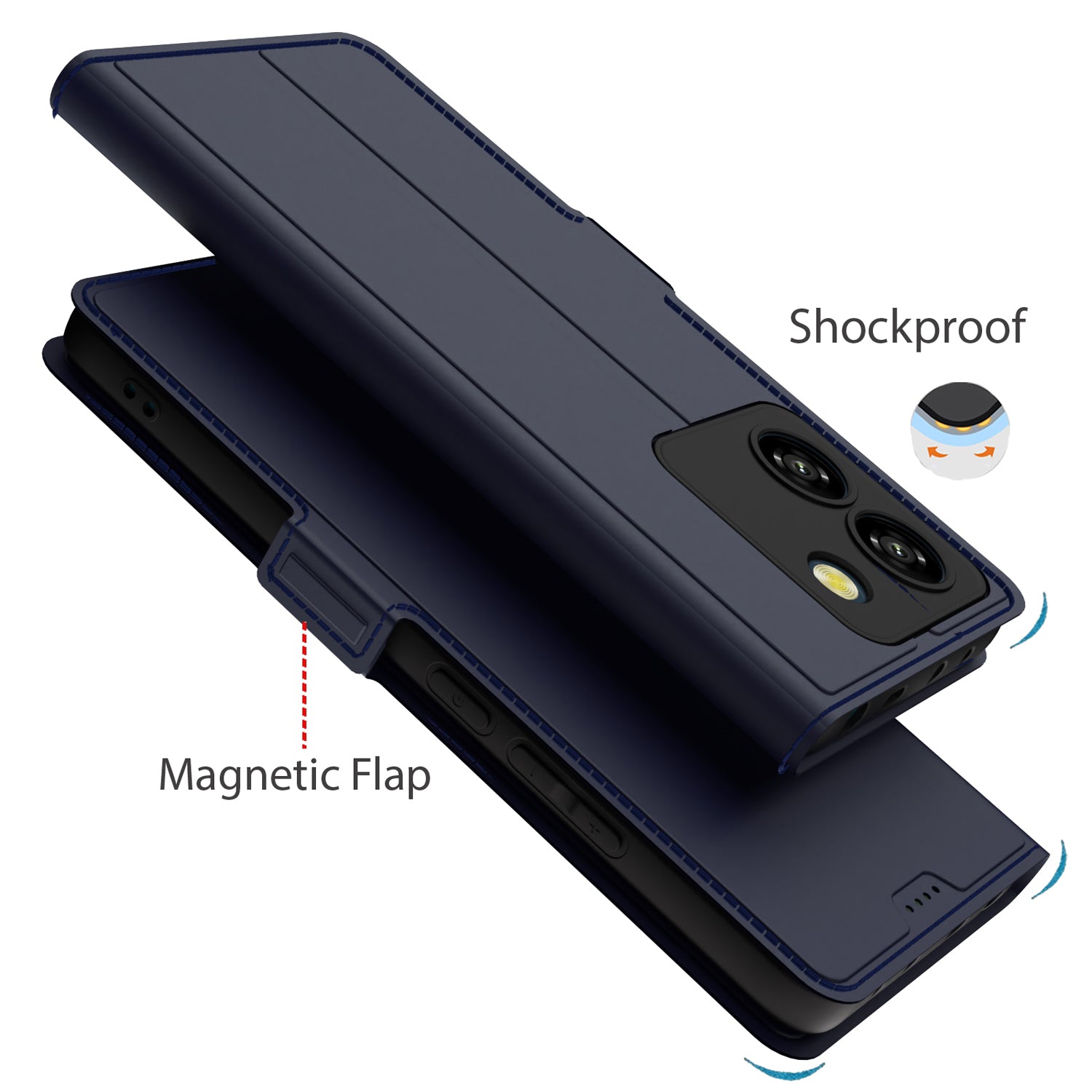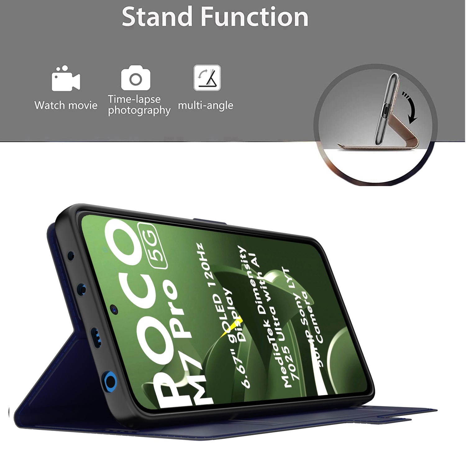 Mobizang Noble Slim Magnetic Leather Flip Case Cover for Poco M7 Pro | Card Holder Stand Flip Wallet Case (Blue)