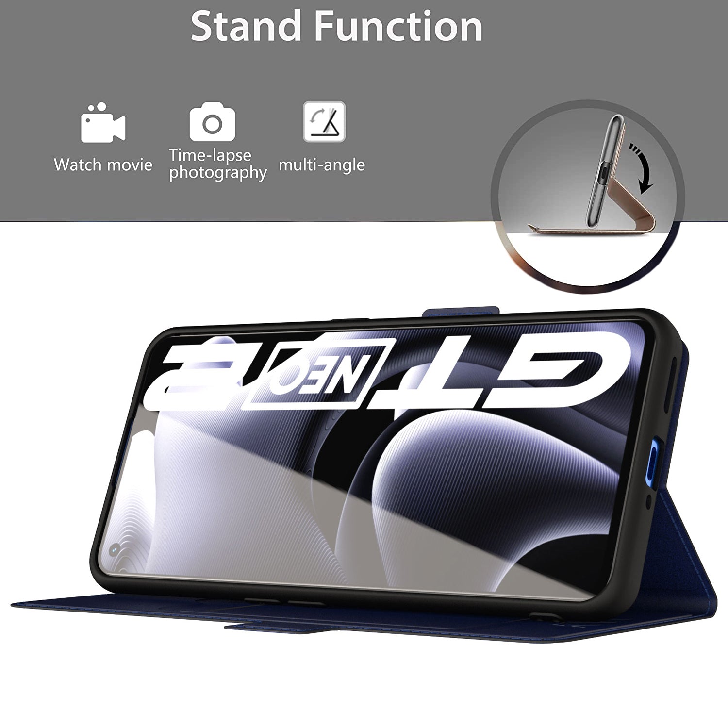 Mobizang Noble Slim Magnetic Leather Flip Case Cover for Realme GT NEO 3T , Magnetic and Card Holder Stand Leather Flip Wallet Case (Blue)