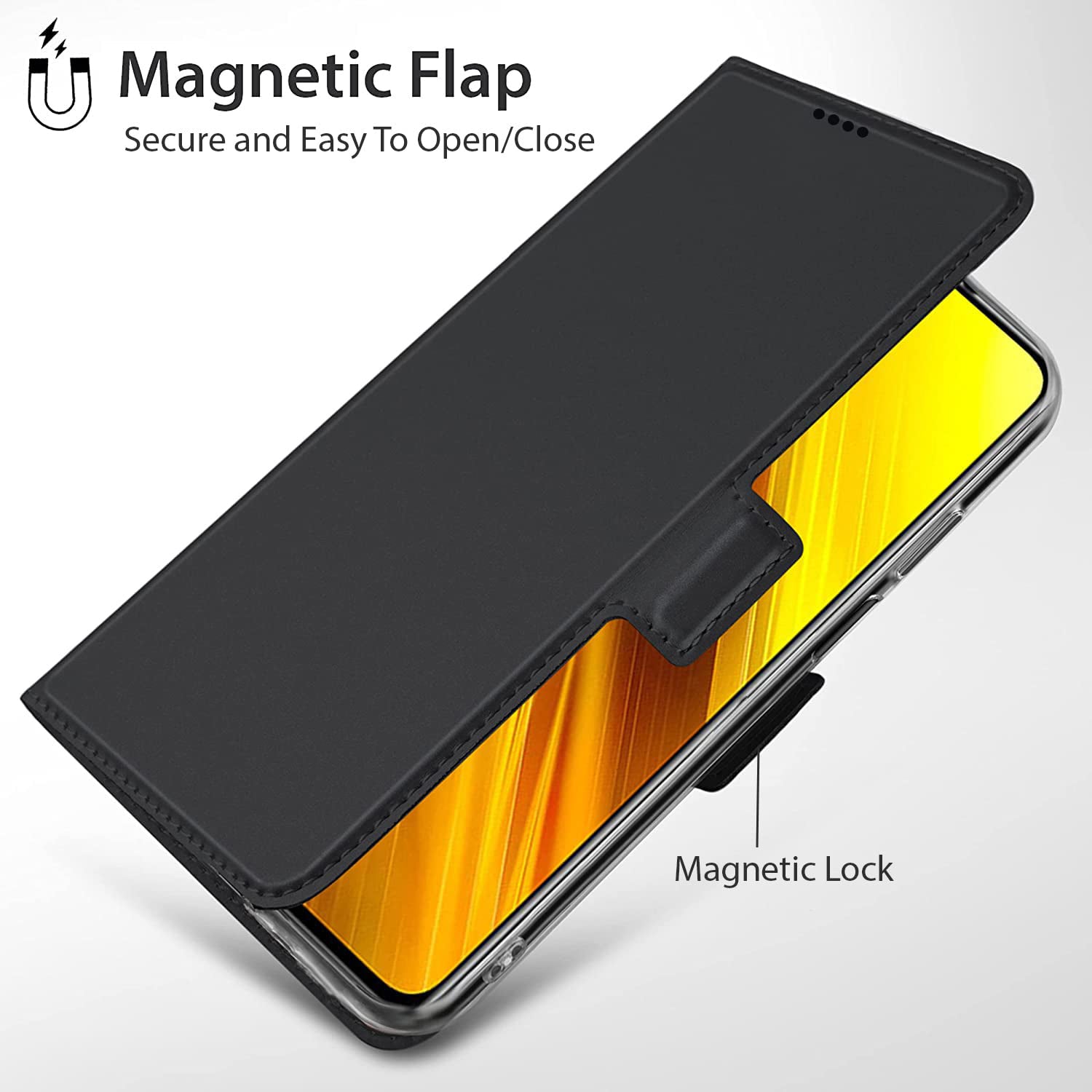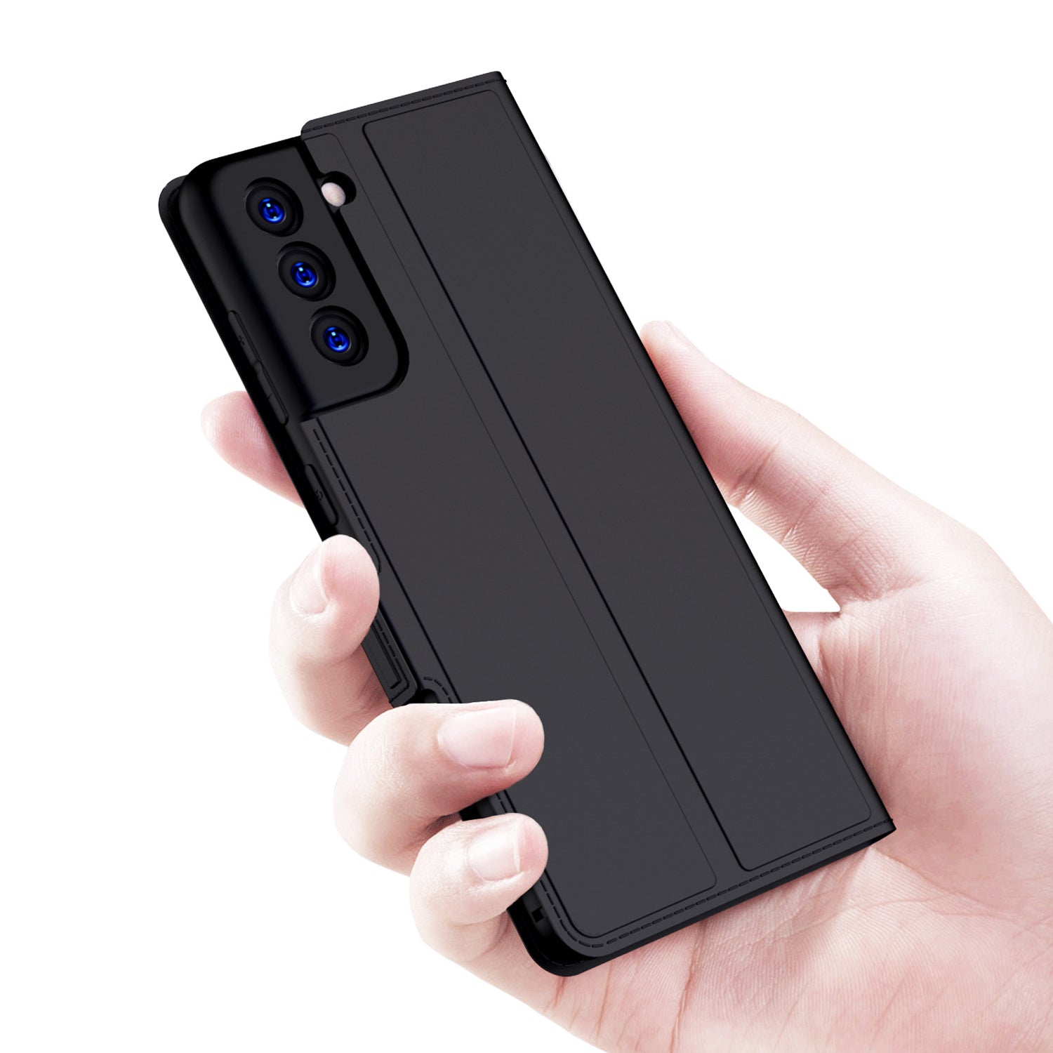 Mobizang Noble Slim Magnetic Leather Flip Case Cover for Samsung Galaxy S21 FE (Black)