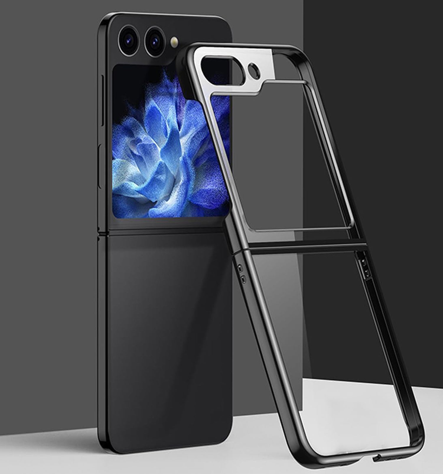 Mobizang Phantom Ultra Thin Back Case for Samsung Galaxy Z Flip 5 with Front Tempered Glass | Electroplated Edges Full Body Protection Back Cover (Black)