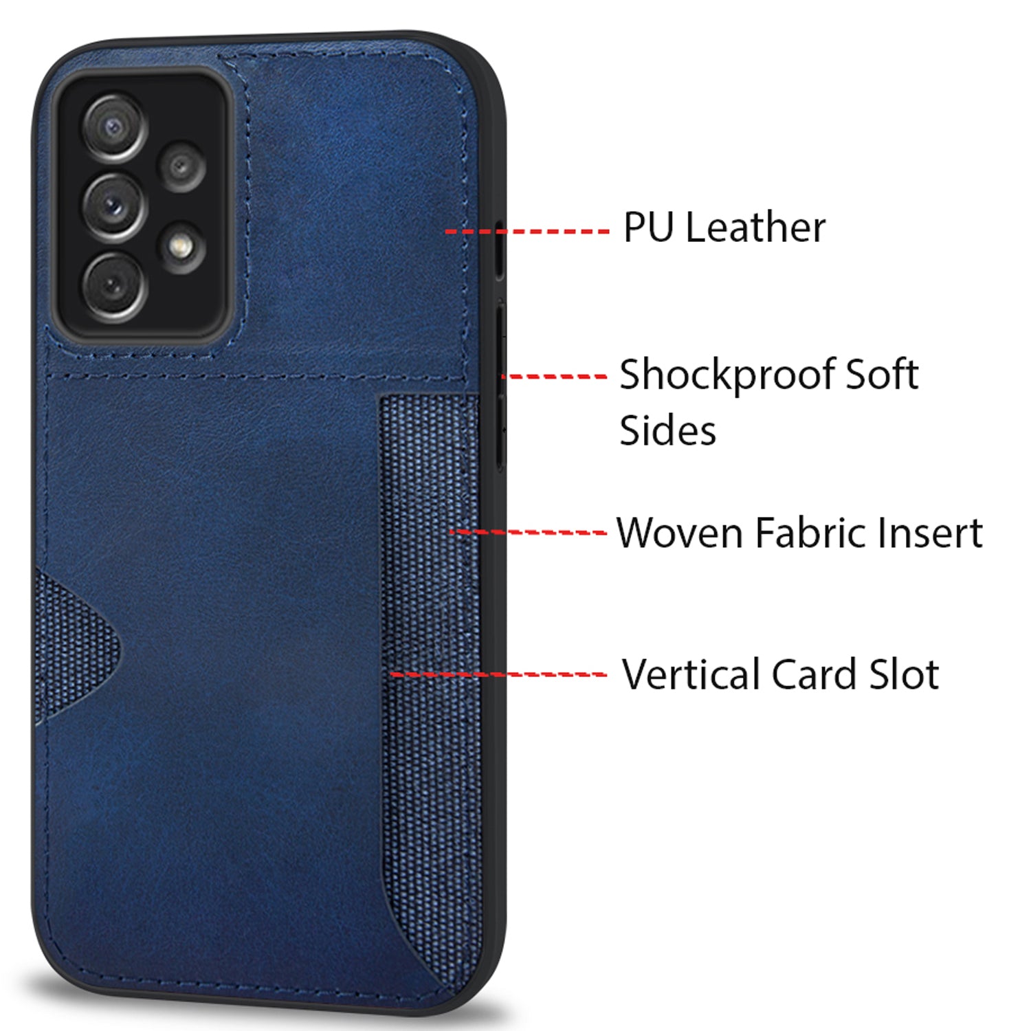 Mobizang Razor Wallet Back Case for Samsung Galaxy A73 (5G) | Slim PU Leather & Fabric Cover with Inbuilt Card Pocket (Blue)