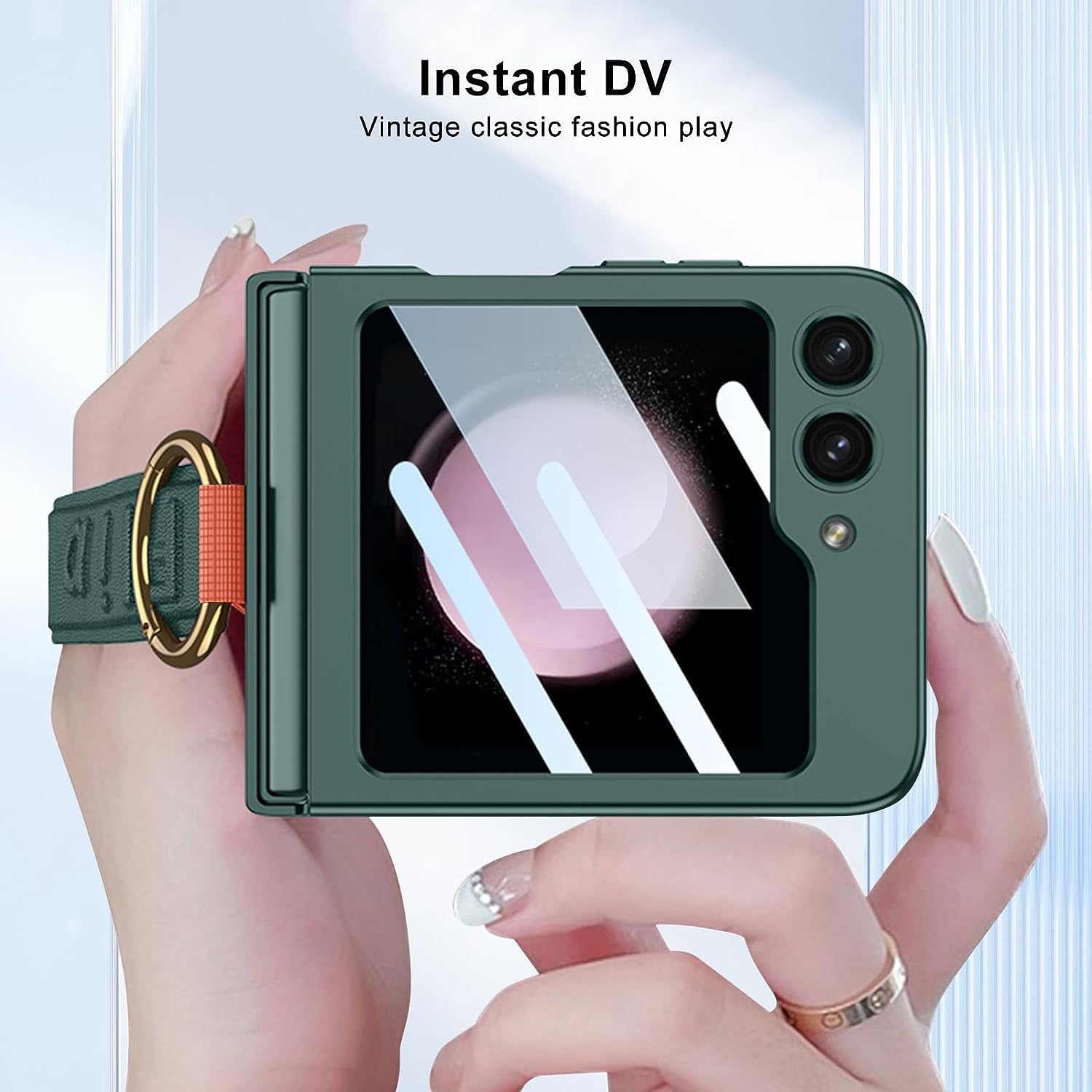 **【Premium Material】The for Samsung Z Flip 5 case is made from premium matte hard PC material, leather wrist strap, metal ring holder kickstand and with tempered glass back screen protector. It has matte appearance and comfortable hand touch feeling. Mobizang case for Galaxy Z flip 5 protect your phone thoroughly.