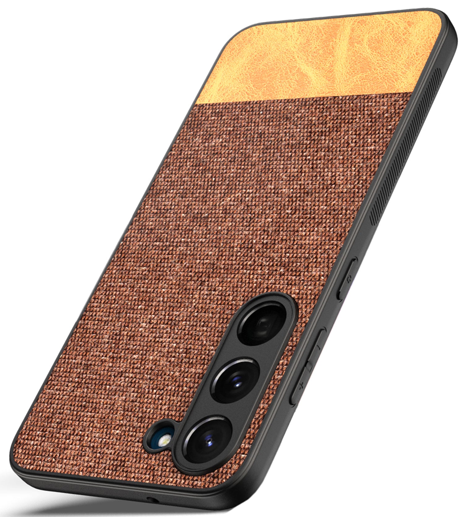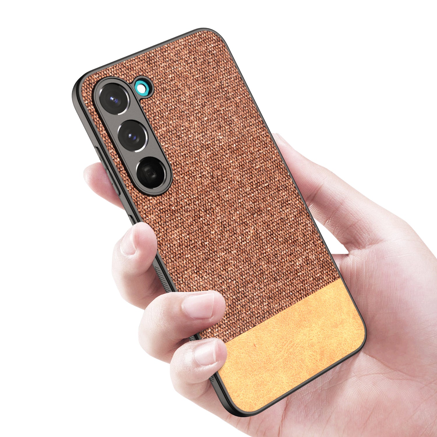 Mobizang Soft Fabric & Leather Hybrid for Samsung Galaxy S23 Plus Back Cover | Shockproof Hybrid Slim Hard Anti Slip Back Case (Brown)